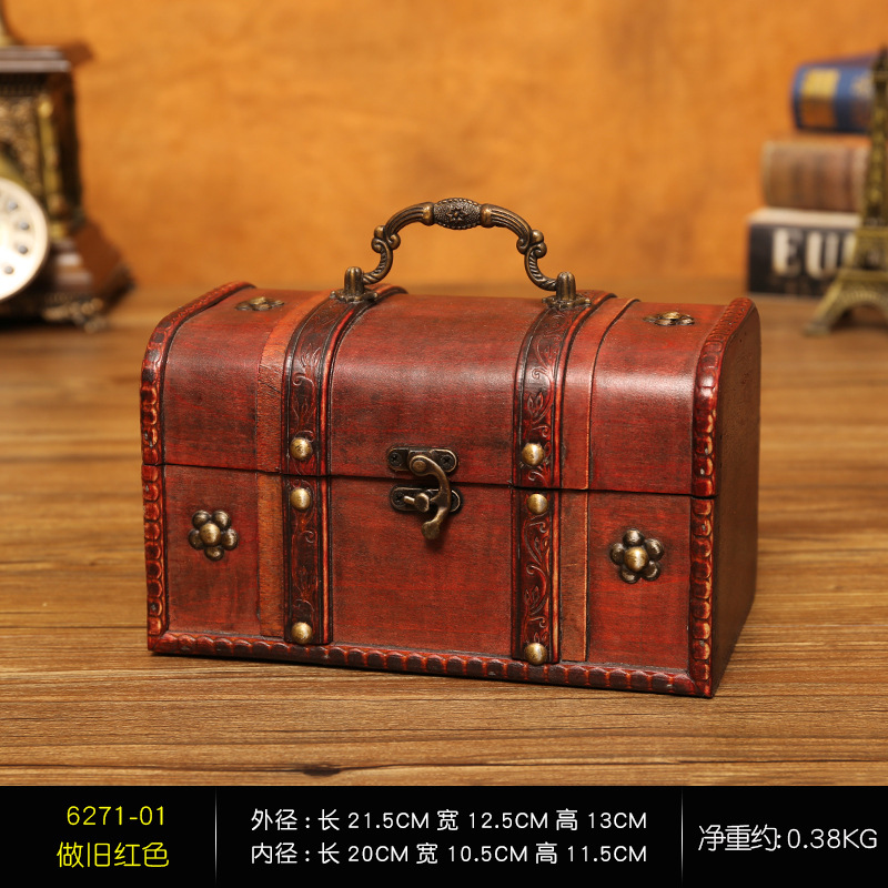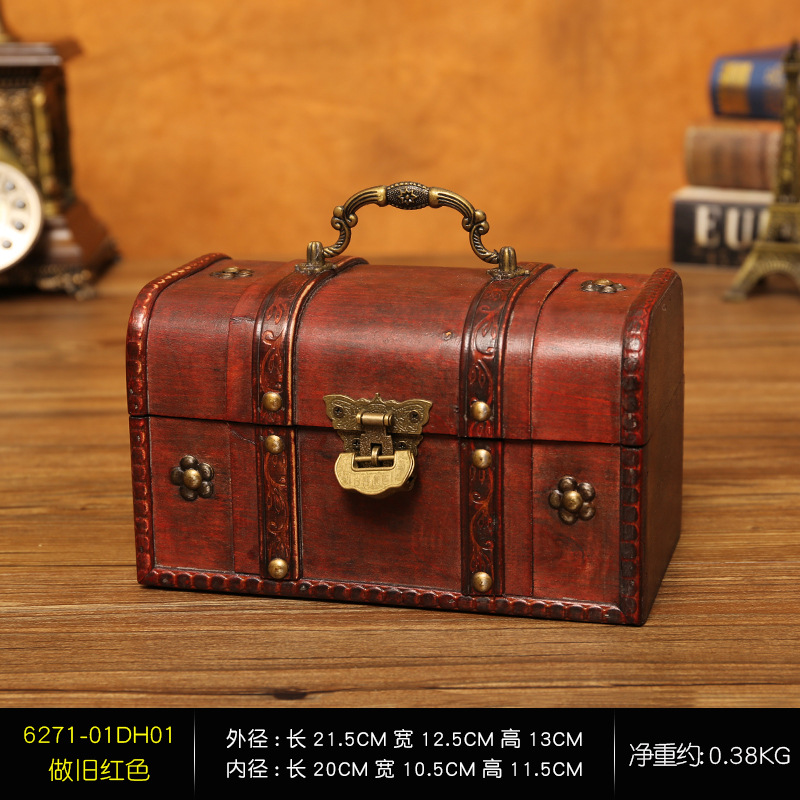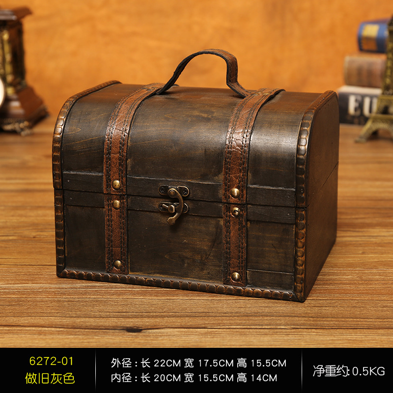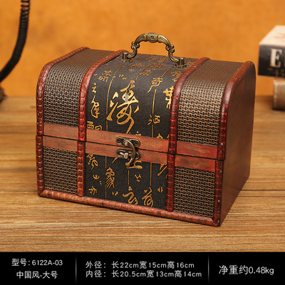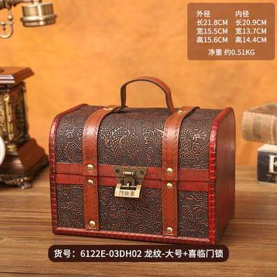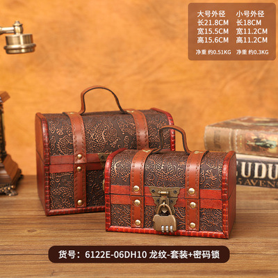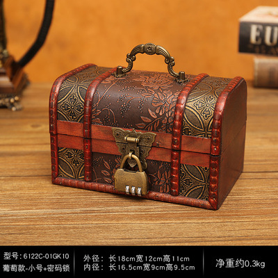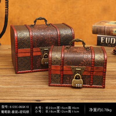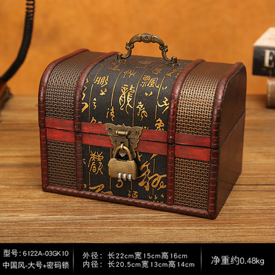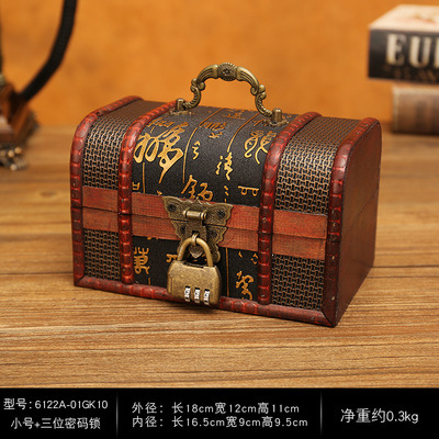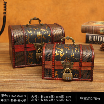 复古木盒带锁密码收纳盒ins风木质首饰盒子儿童藏宝小百宝箱木箱