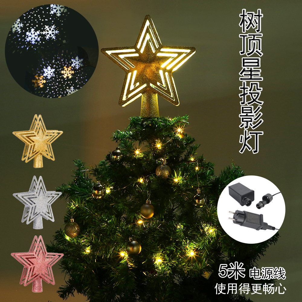 跨境新品树顶星LED灯3D旋转暴风雪五角星圣诞树装饰雪花投影灯