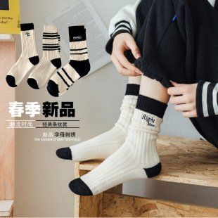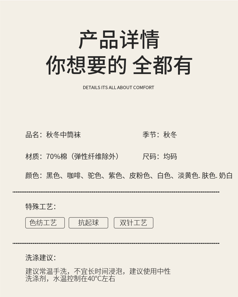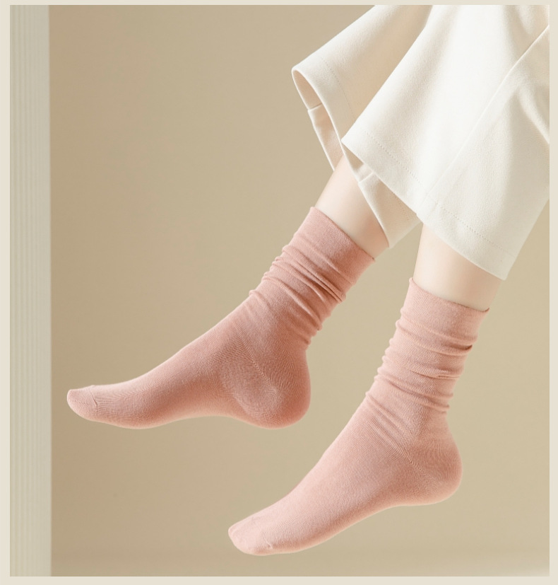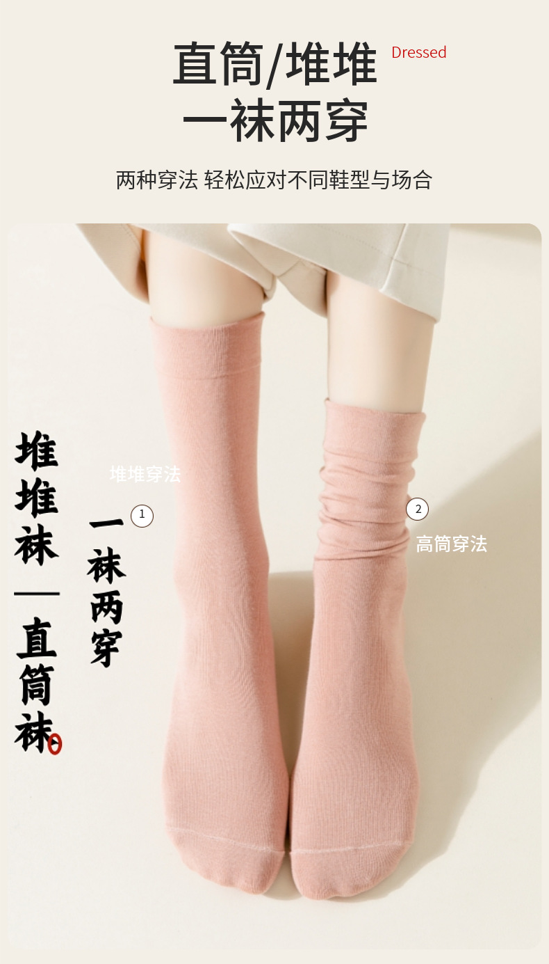 诸暨袜子女春秋堆堆袜全棉中筒袜松口月子女袜日系百搭无骨长筒袜