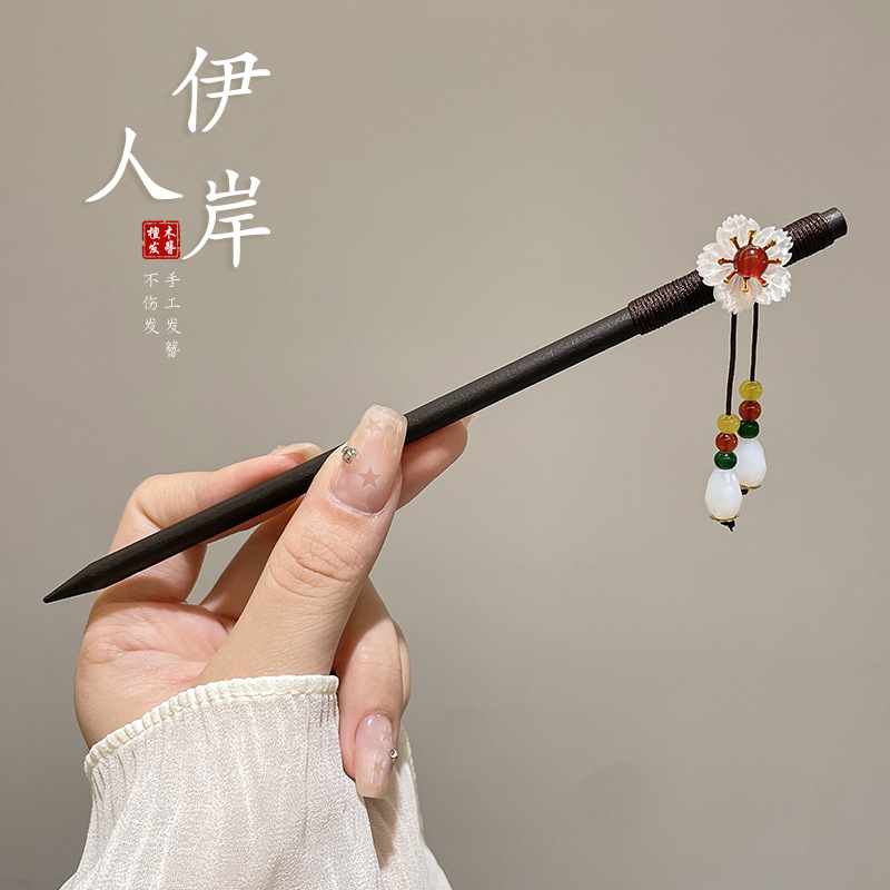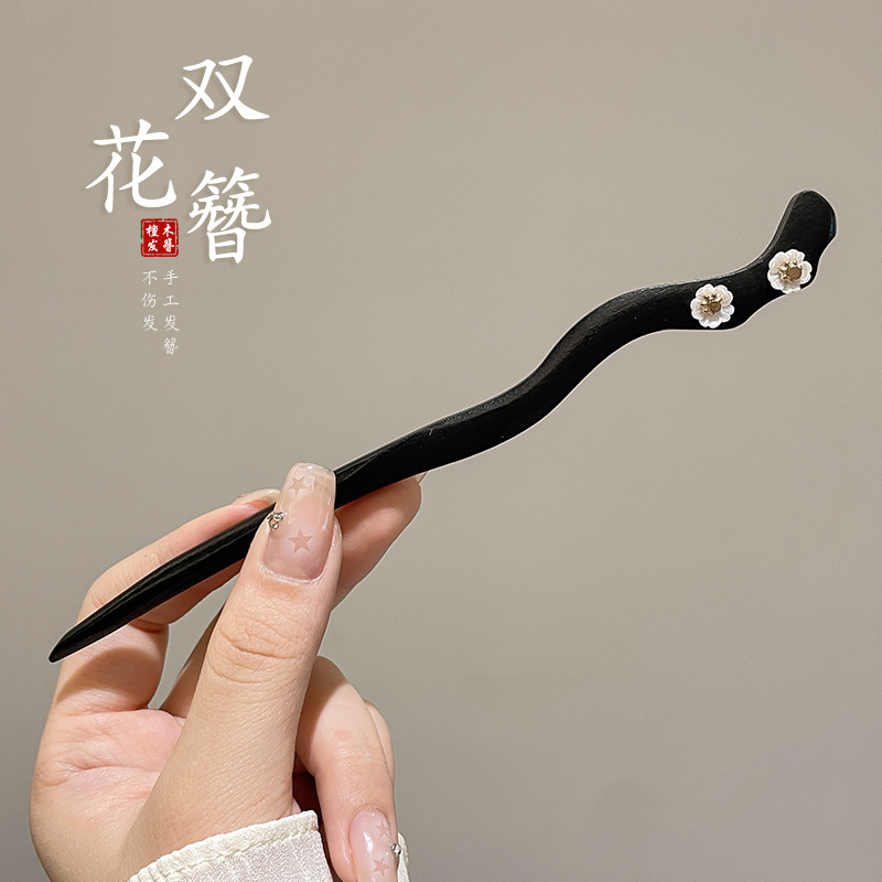 发簪新中式古风高级感黑檀木盘发钗子气质汉服旗袍簪子步摇发饰女