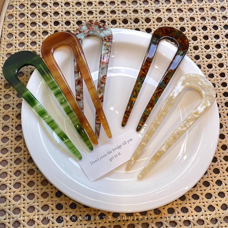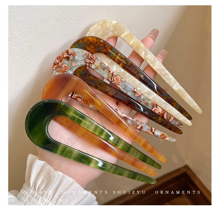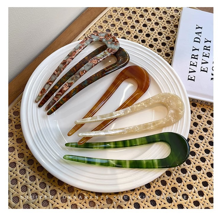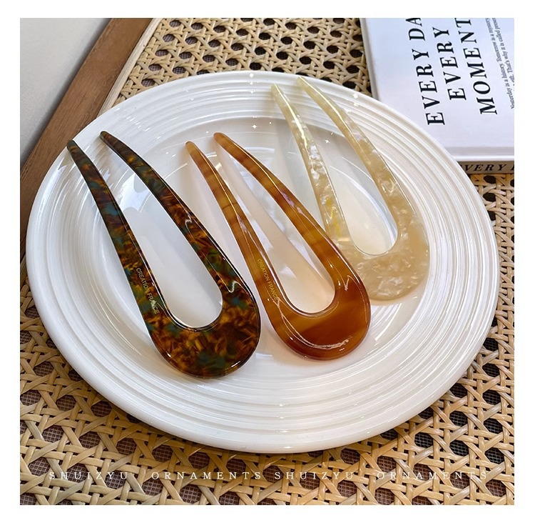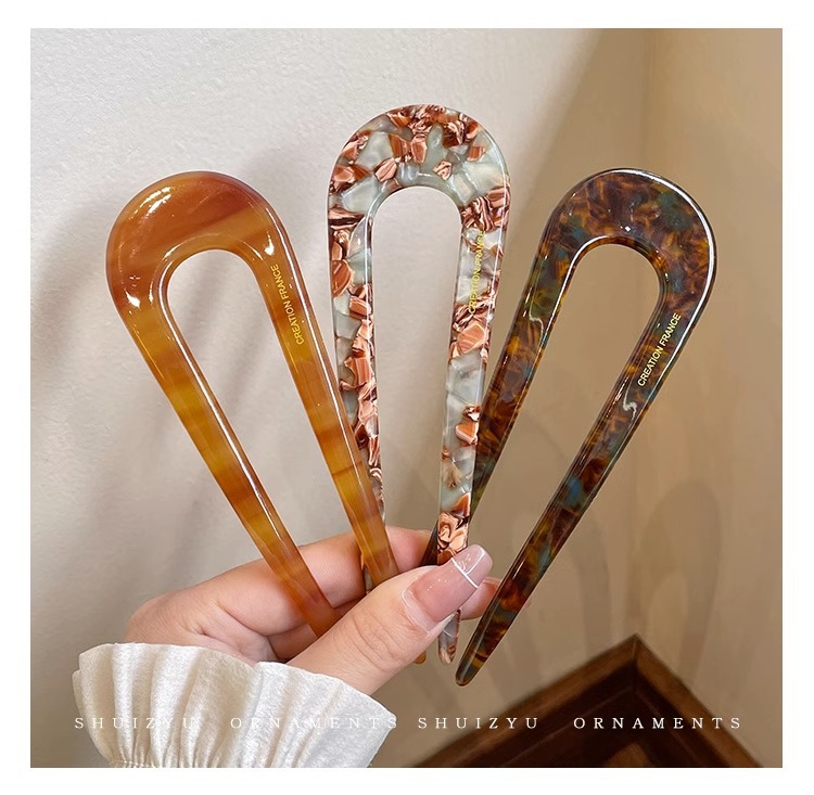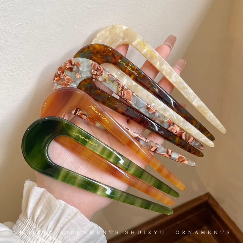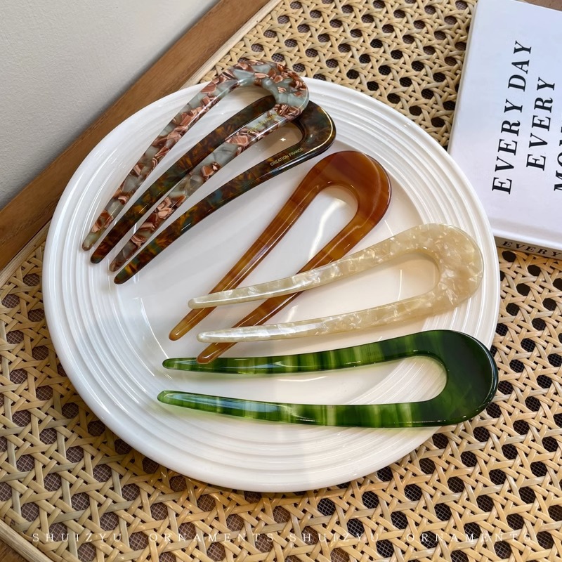 韩系高级感丸子头盘发簪子U型发钗简约现代古风时尚头饰百搭发簪