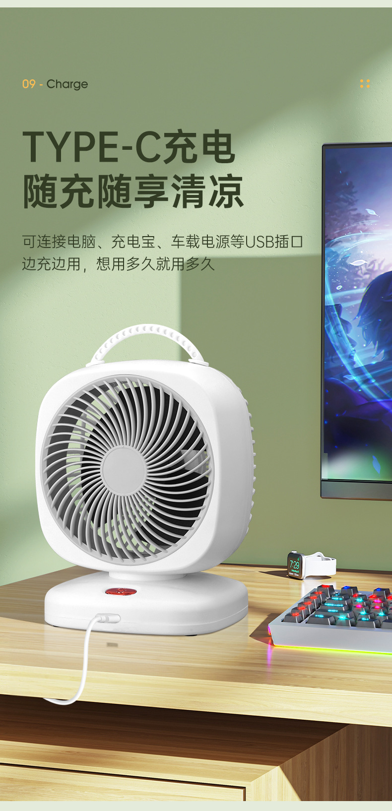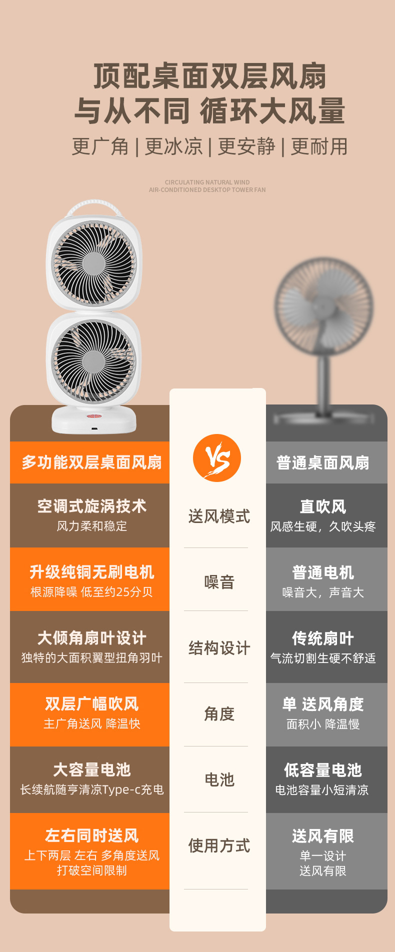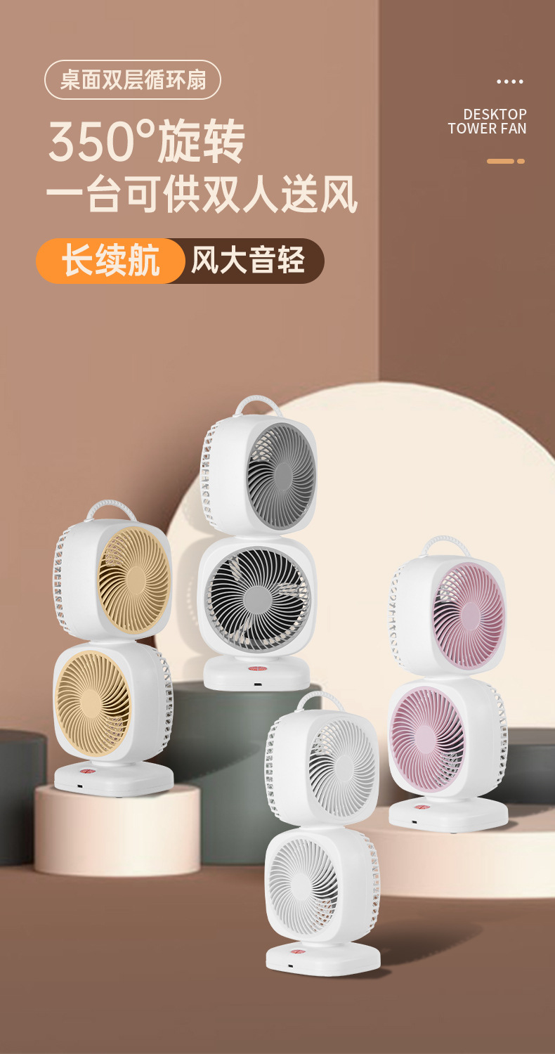 新款桌面风扇家用空气循环扇台式双头风扇户外无线电风扇跨境批发