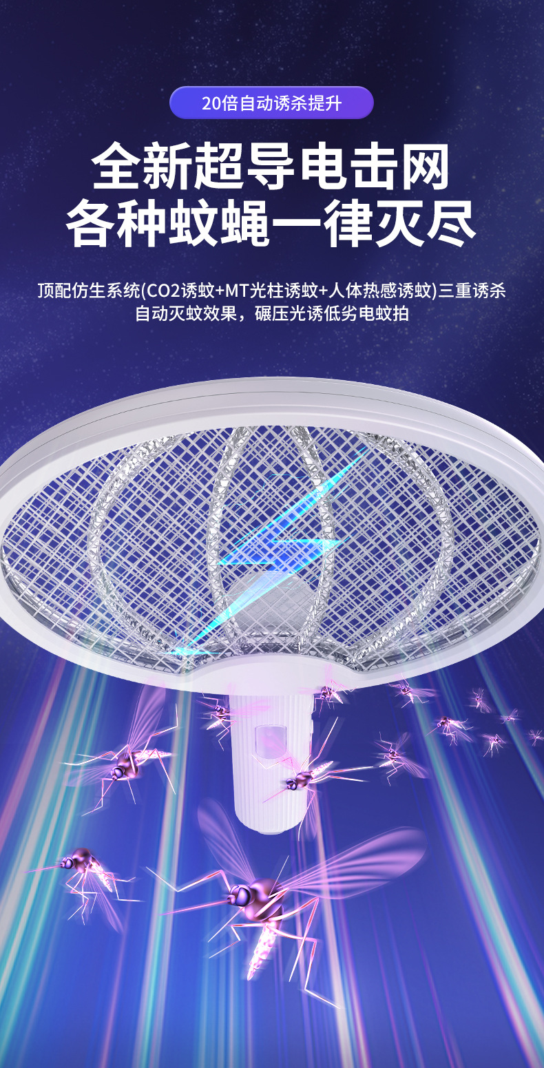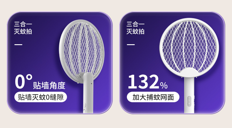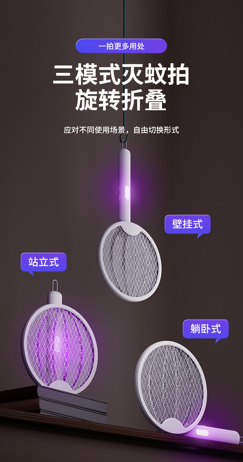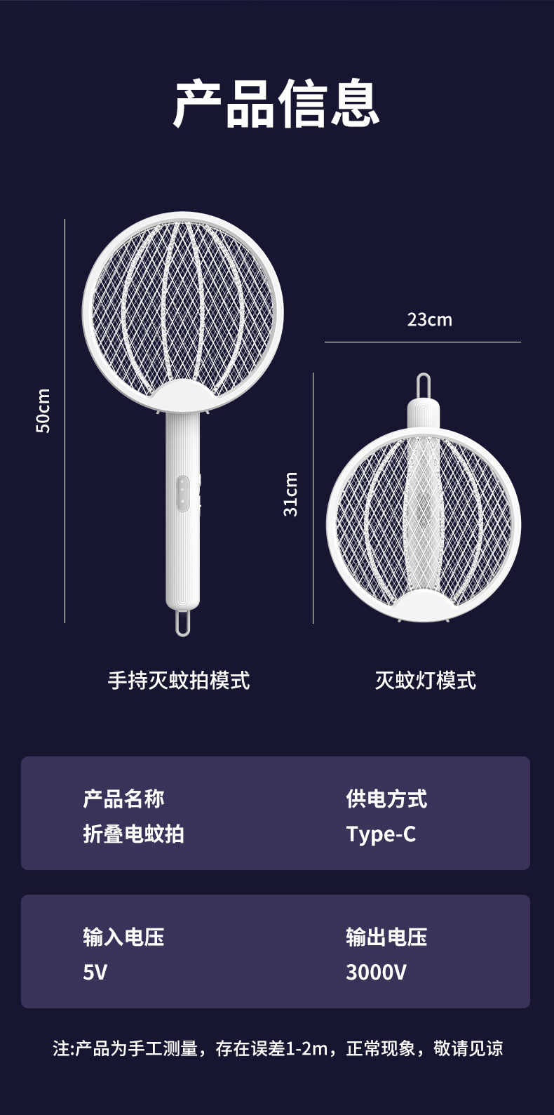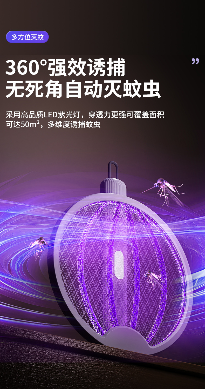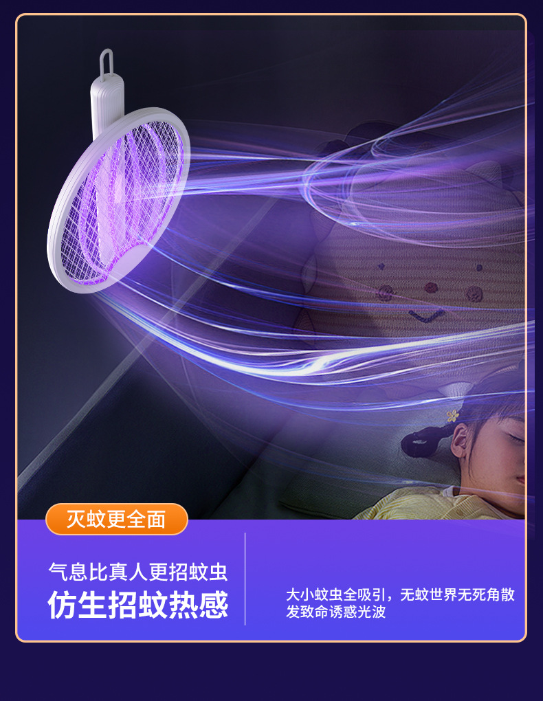 新款家用折叠电蚊怕灭蚊灯二合一USB充电式驱蚊灯宿舍电机灭蚊拍