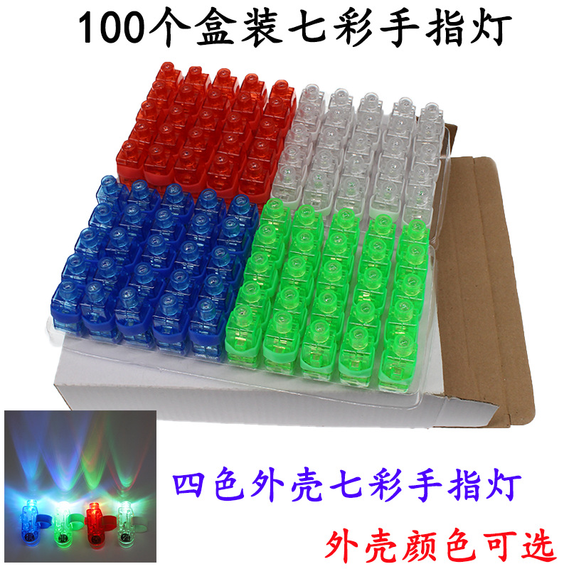 跨境销售盒装七彩发光手指灯投影戒指 赠送 演唱会亚马逊货源