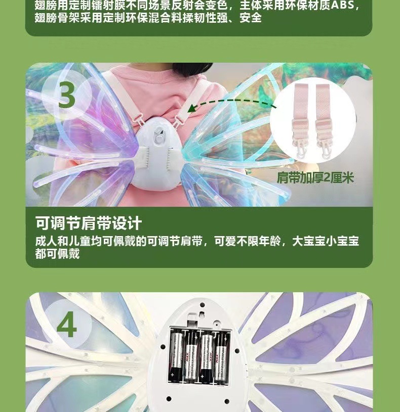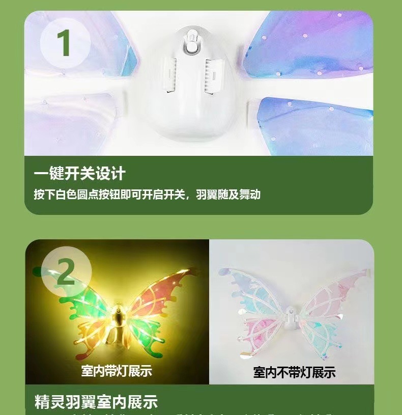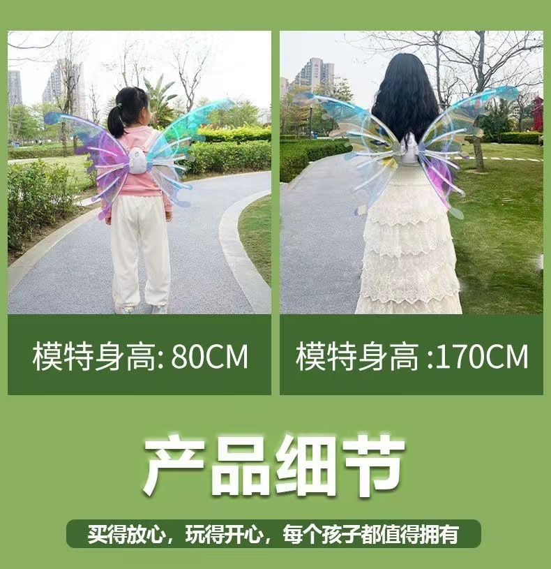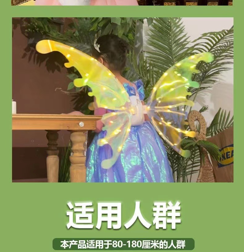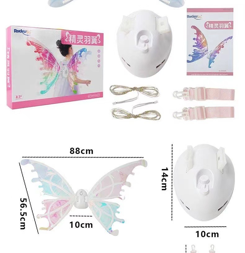 跨境新款精灵羽翼电动发光翅膀花仙子天使户外蝴蝶玩具可背带批发