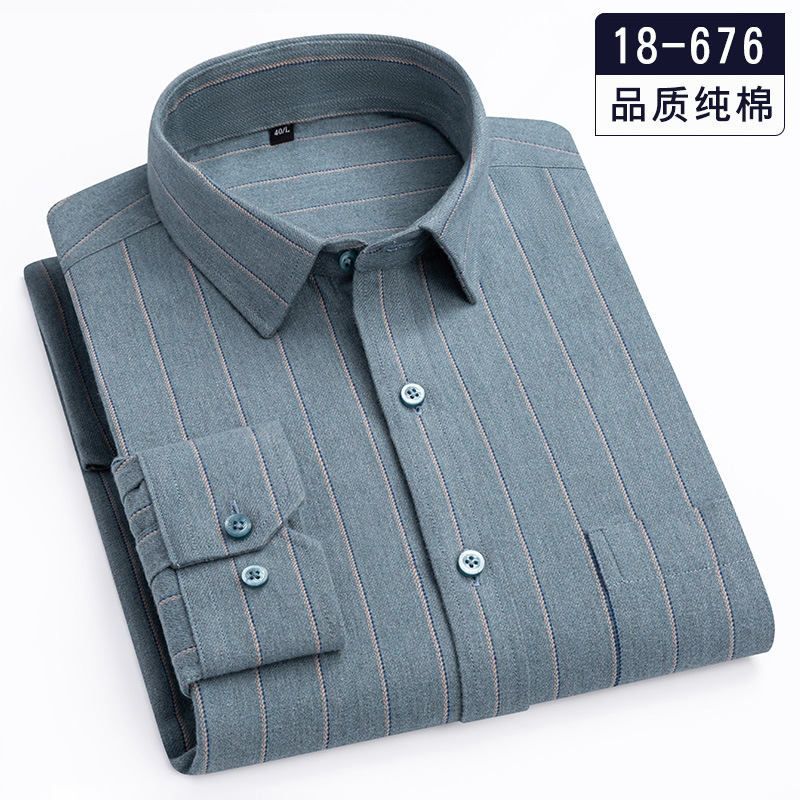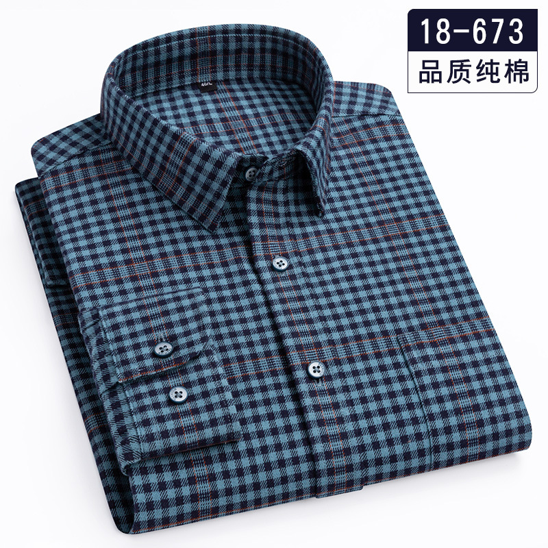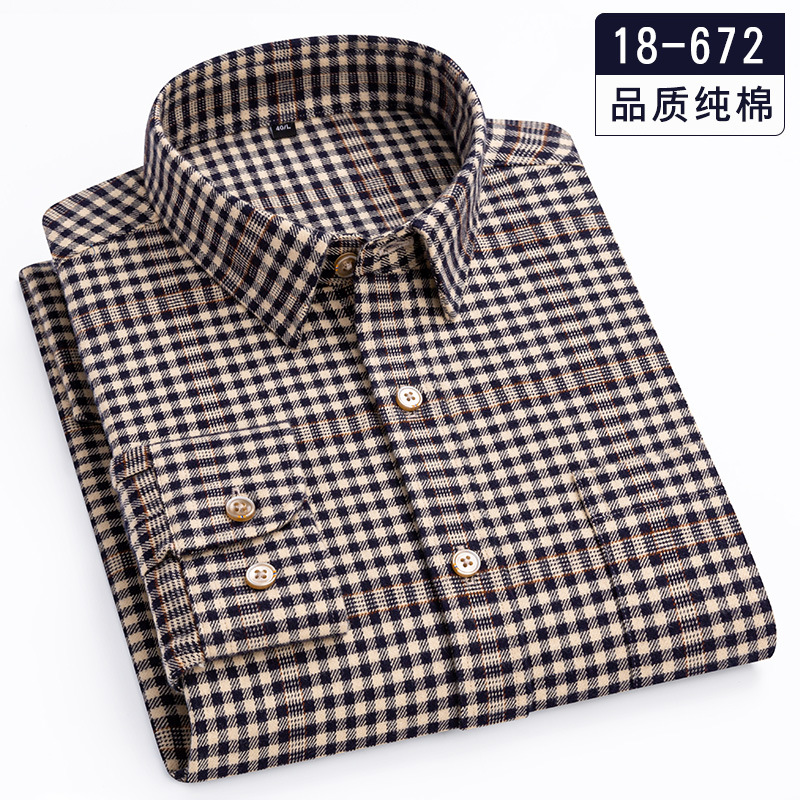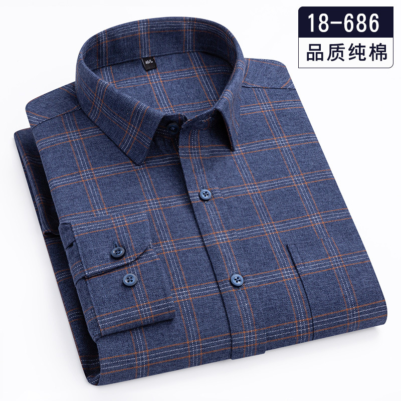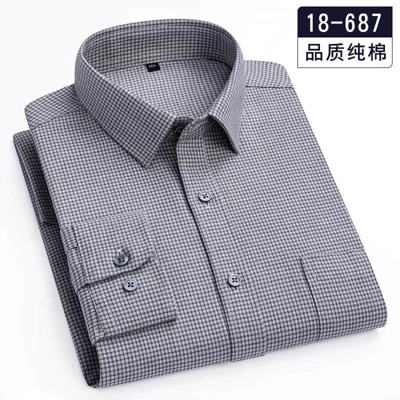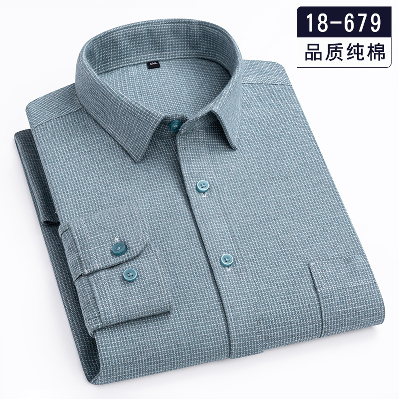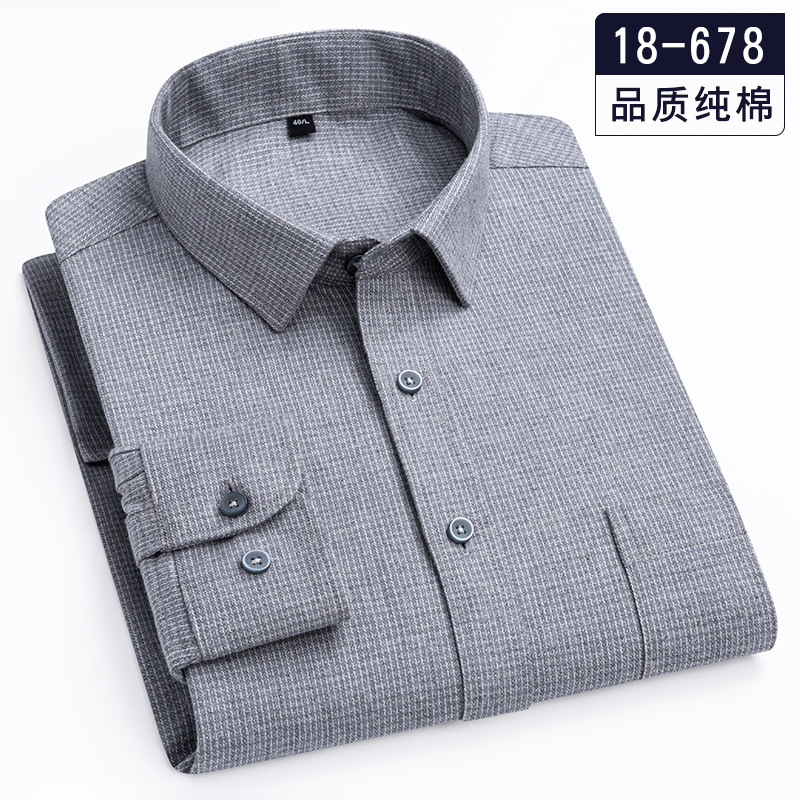 2024年衬衫长袖春装上午中年男士春秋季净色款商务磨毛格子全棉