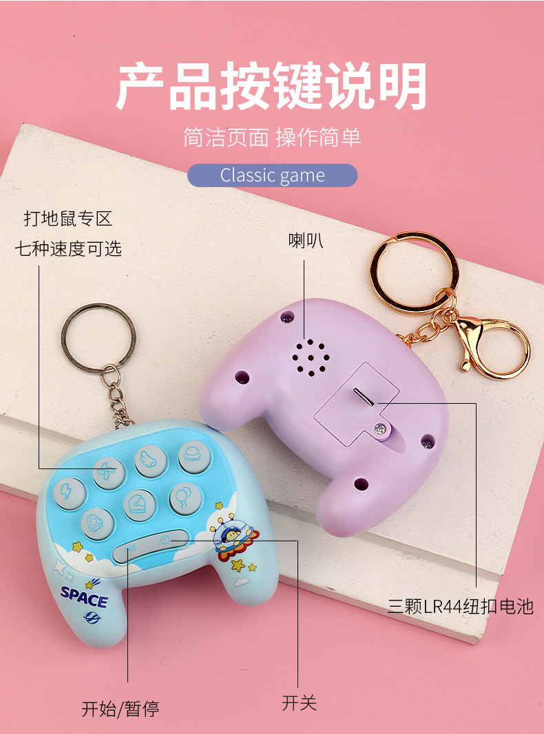 手持掌上游戏机卡通手柄打地鼠电子发光玩具小挂饰钥匙扣批发跨境
