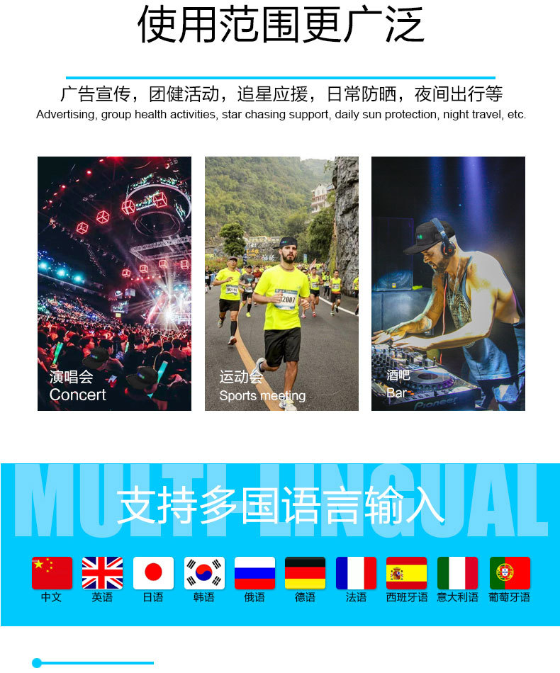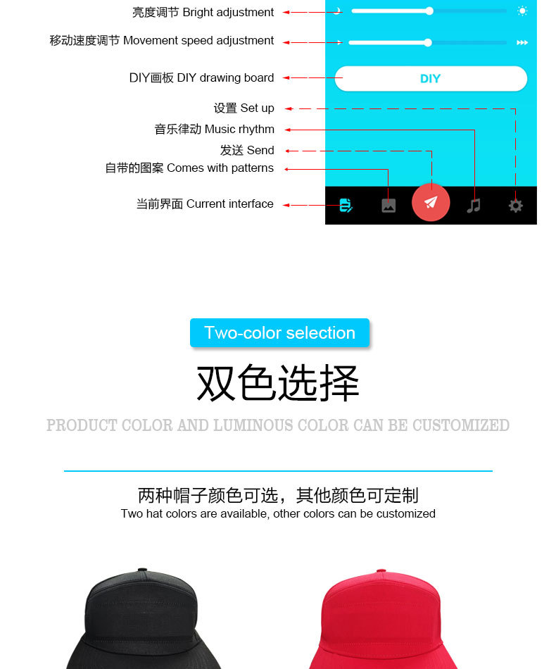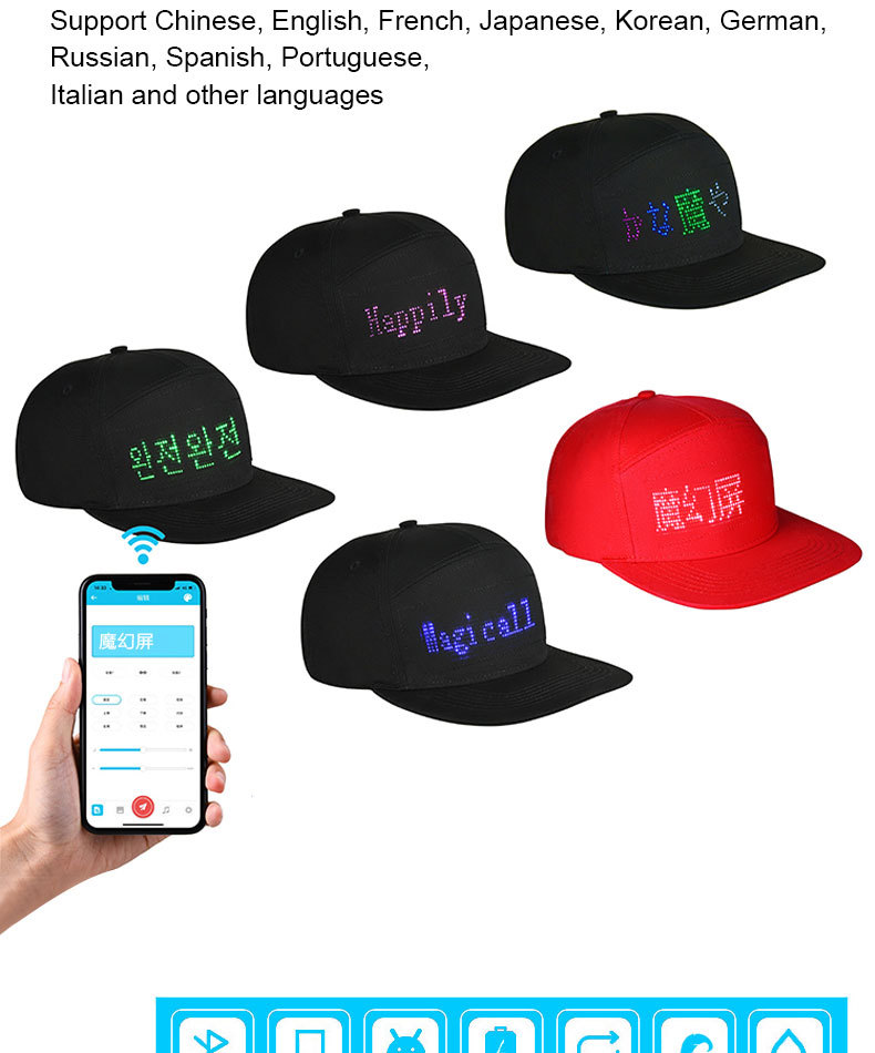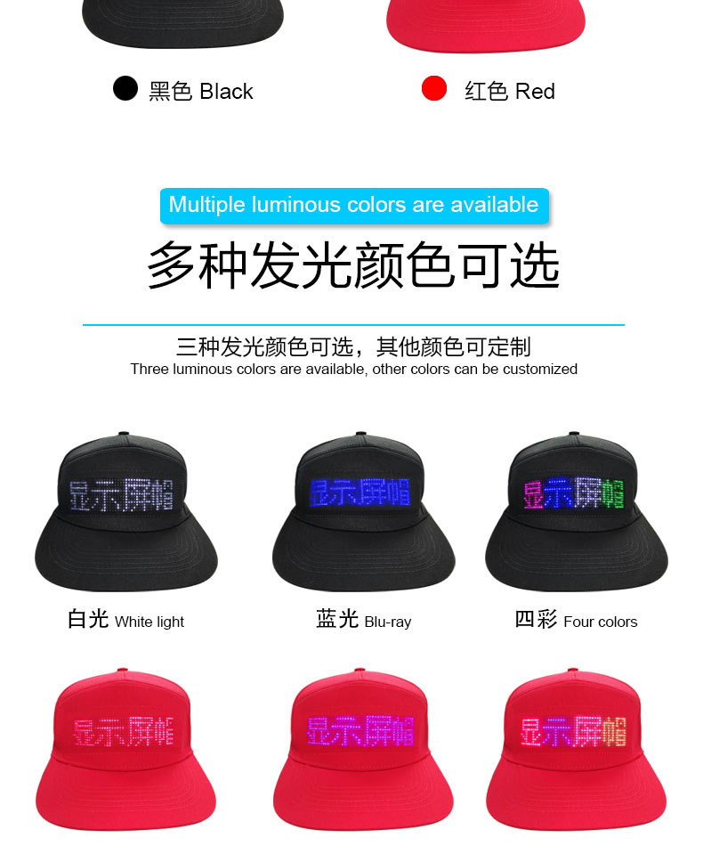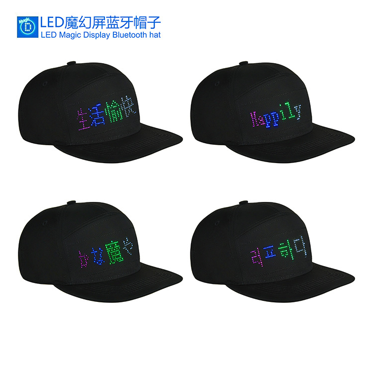 厂家APP蓝牙显示屏帽子节庆表演发光帽手机编程改字LED广告帽定制