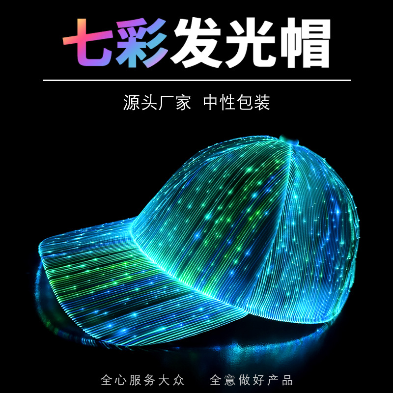 LED光纤发光帽子发光棒球帽七彩发光帽夜间骑行帽子情侣黑白帽子