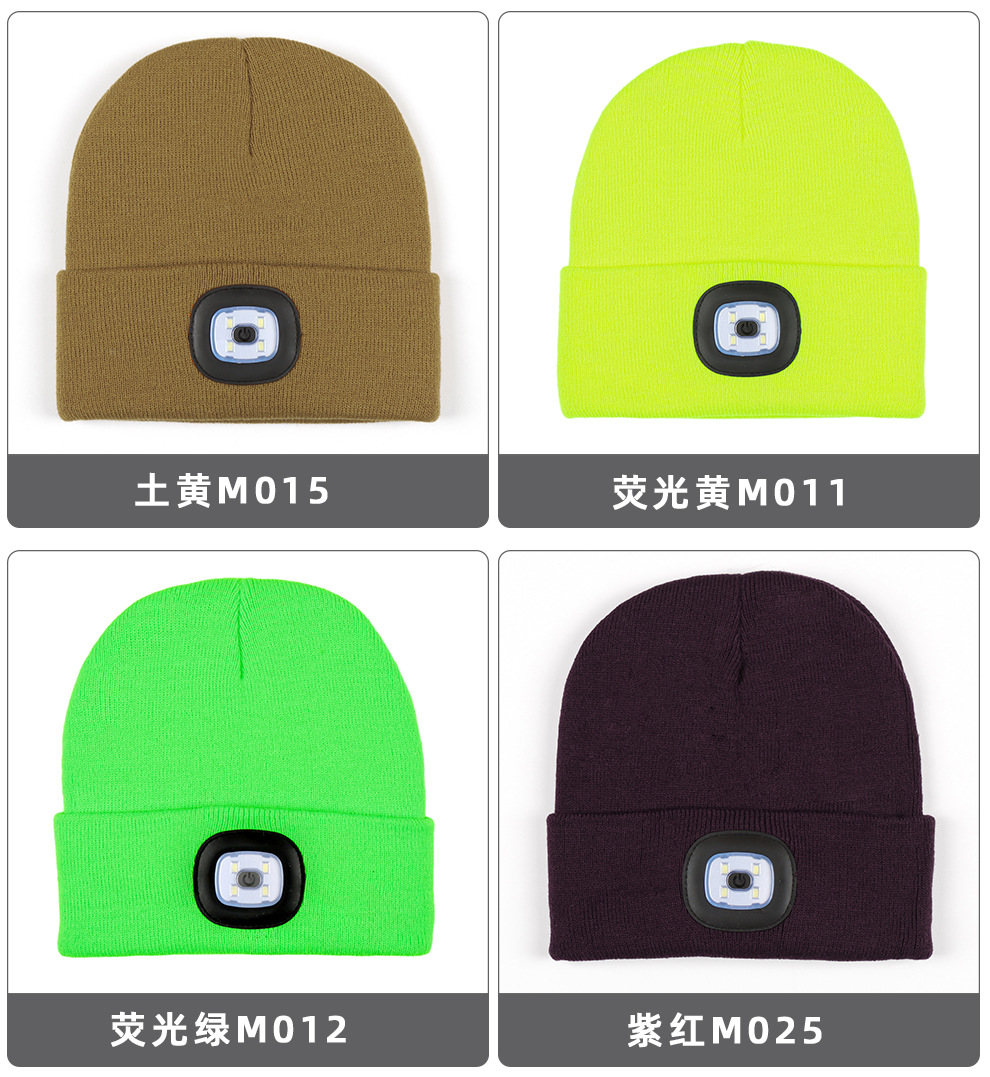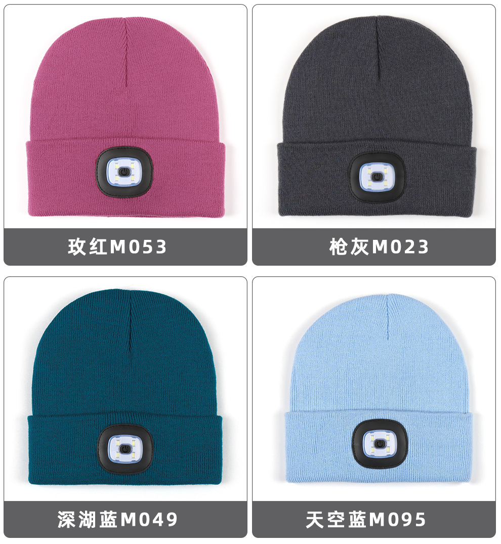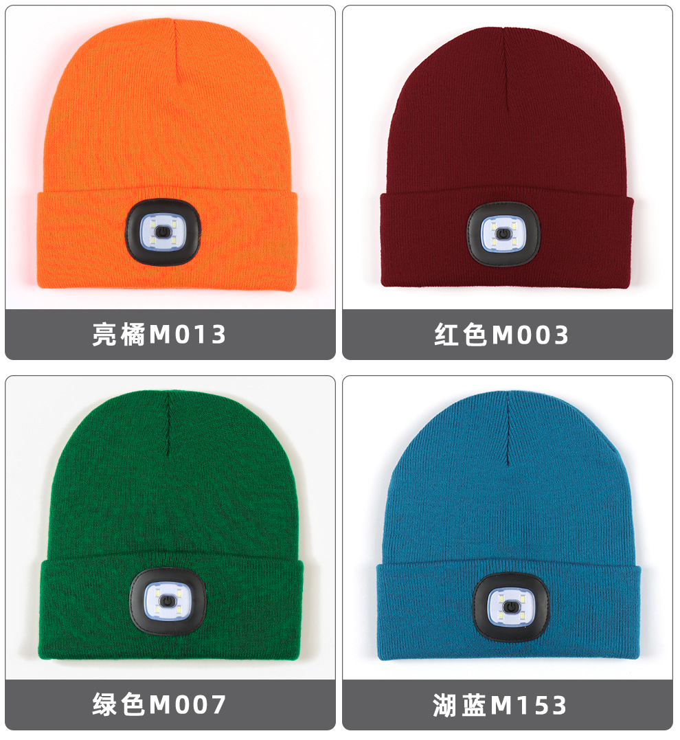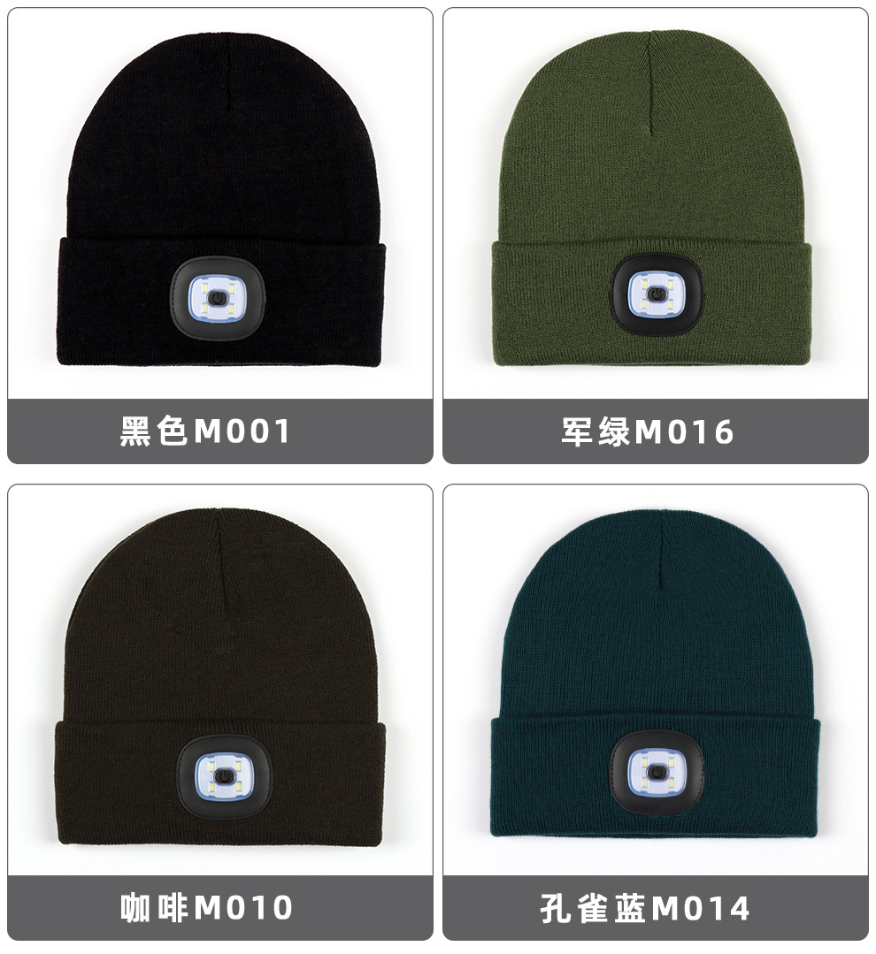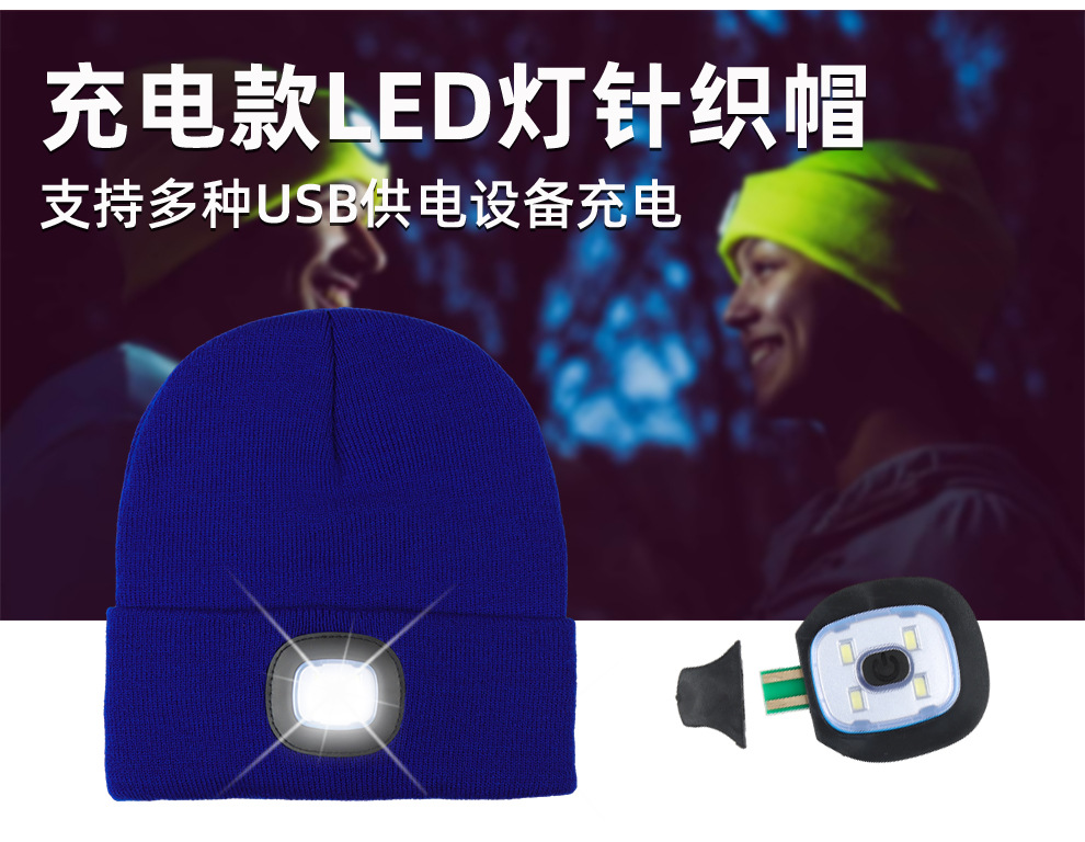 USB充电款LED毛线帽子 LED灯针织帽 秋冬季夜跑带灯发光帽子跨境