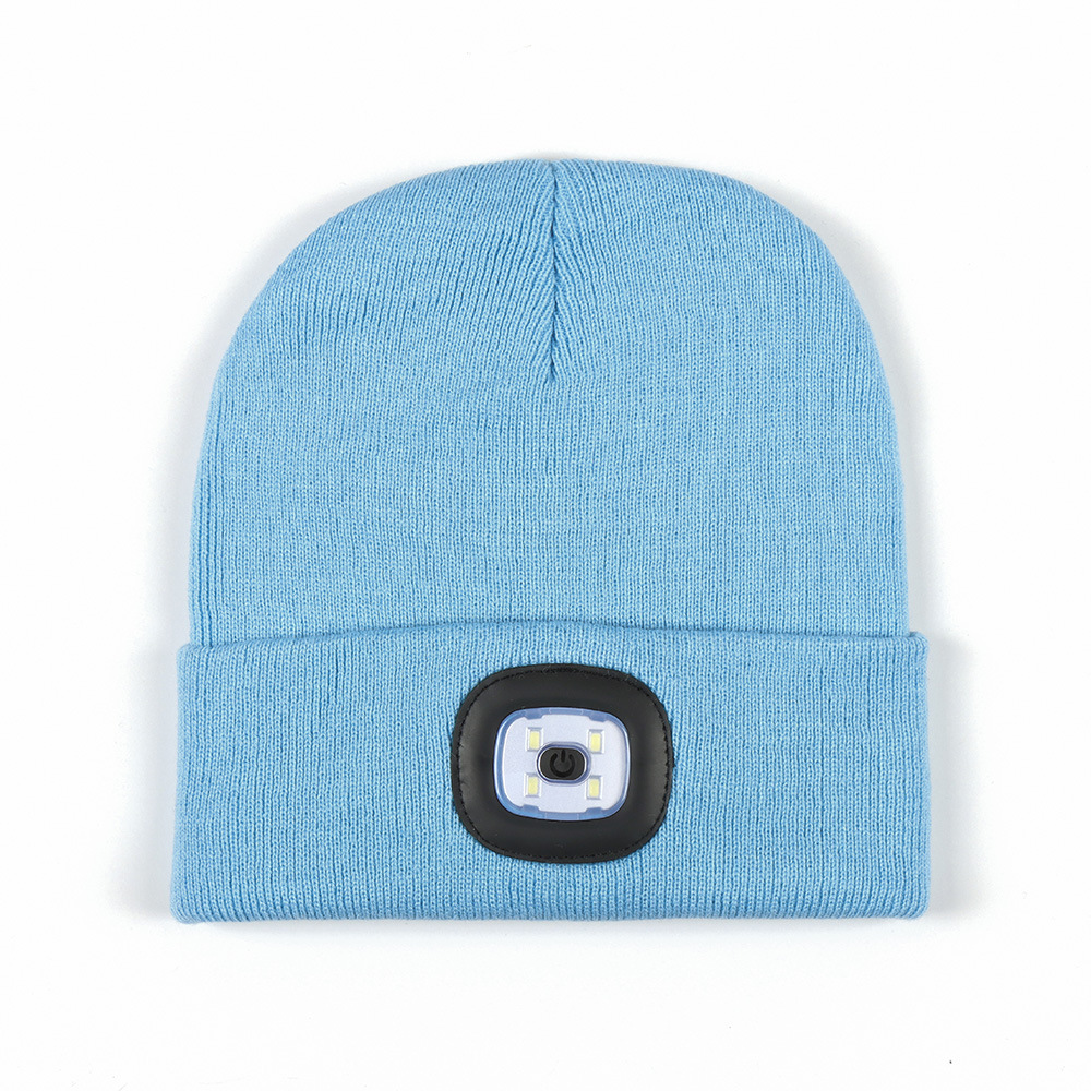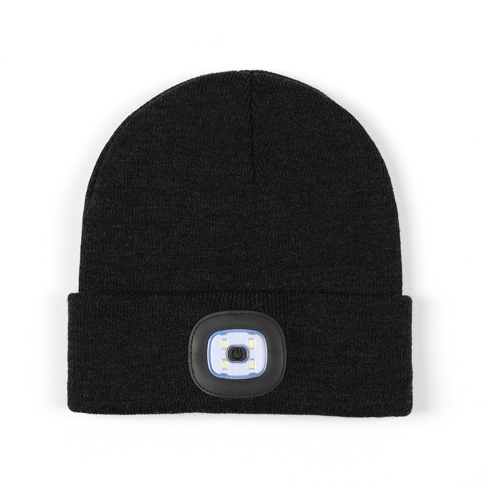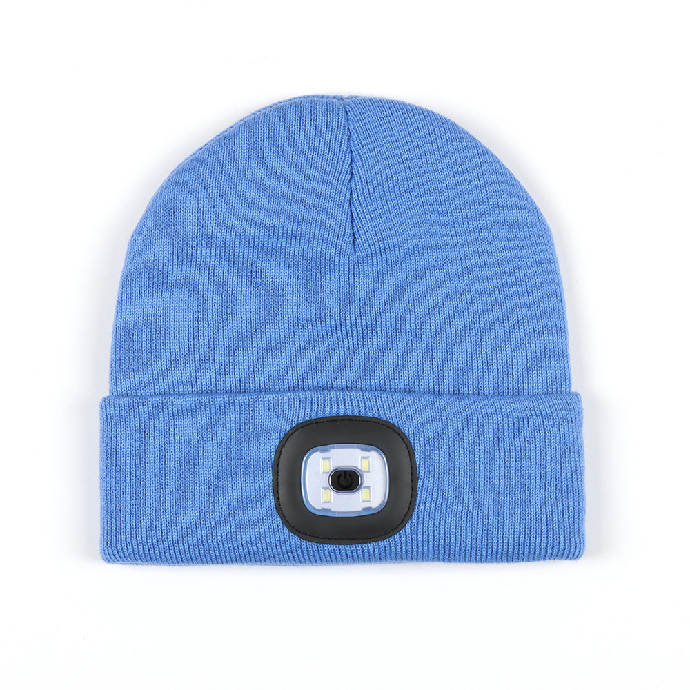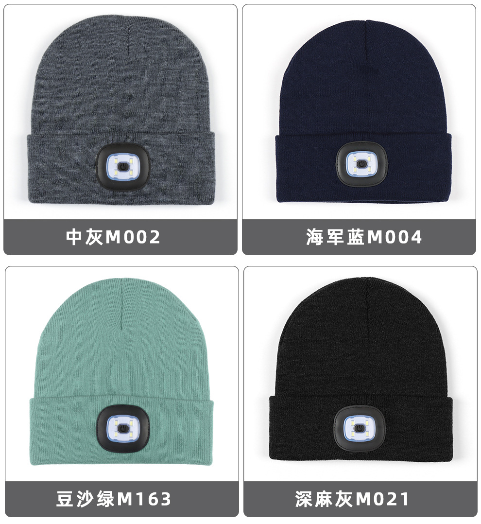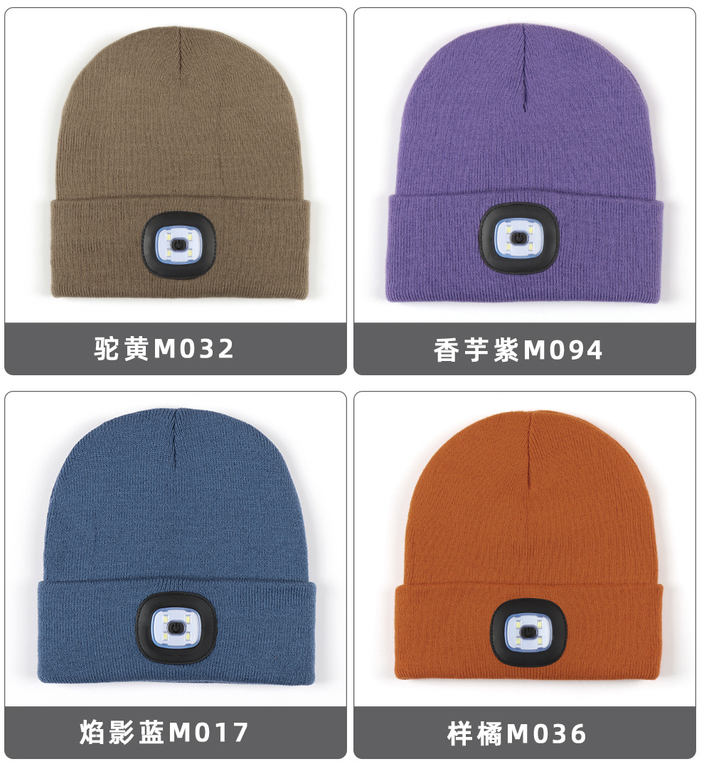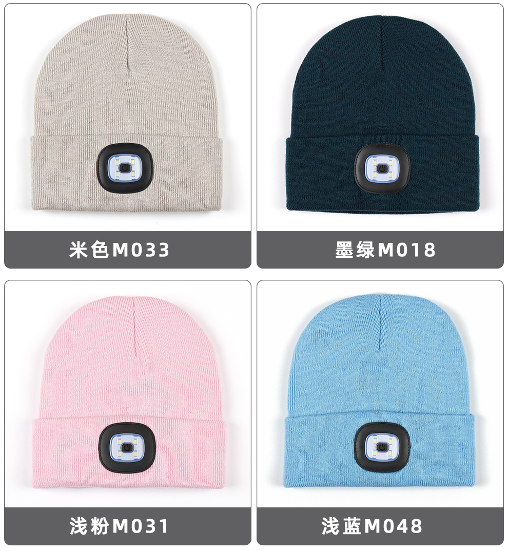 USB充电款LED毛线帽子 LED灯针织帽 秋冬季夜跑带灯发光帽子跨境