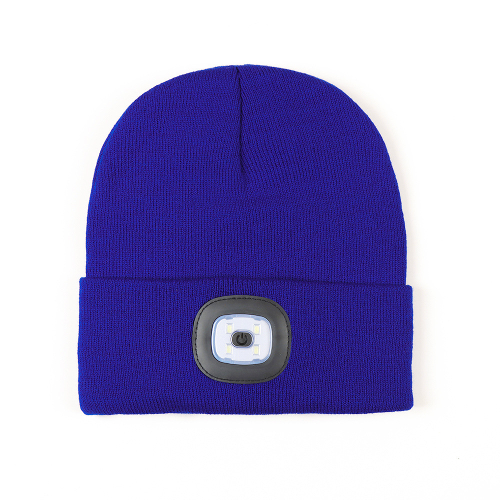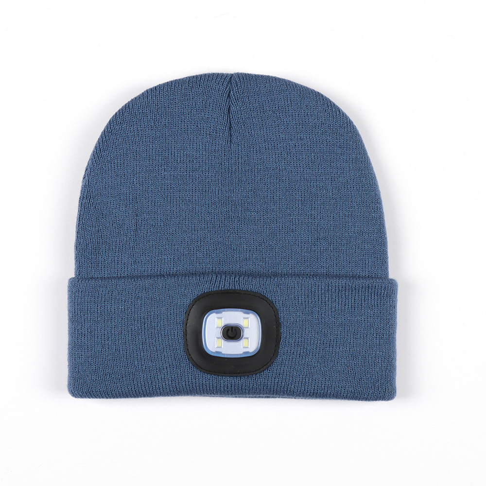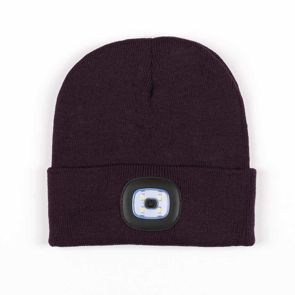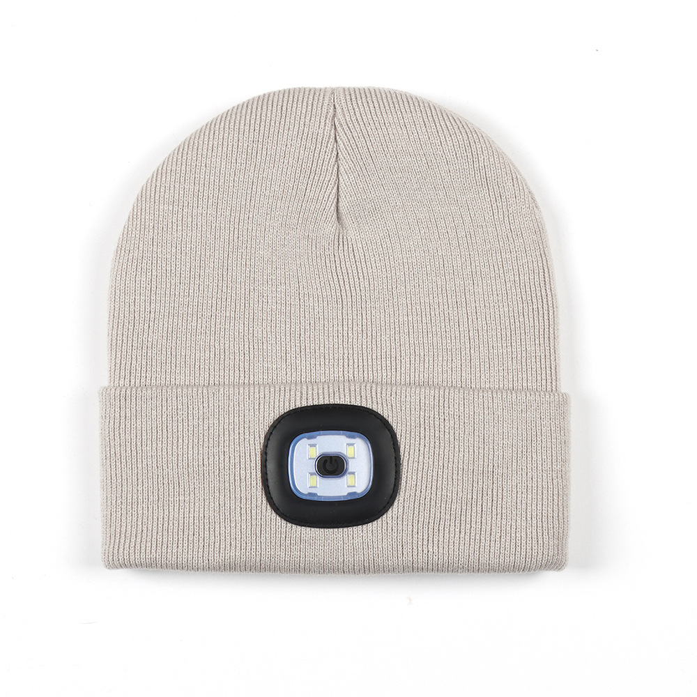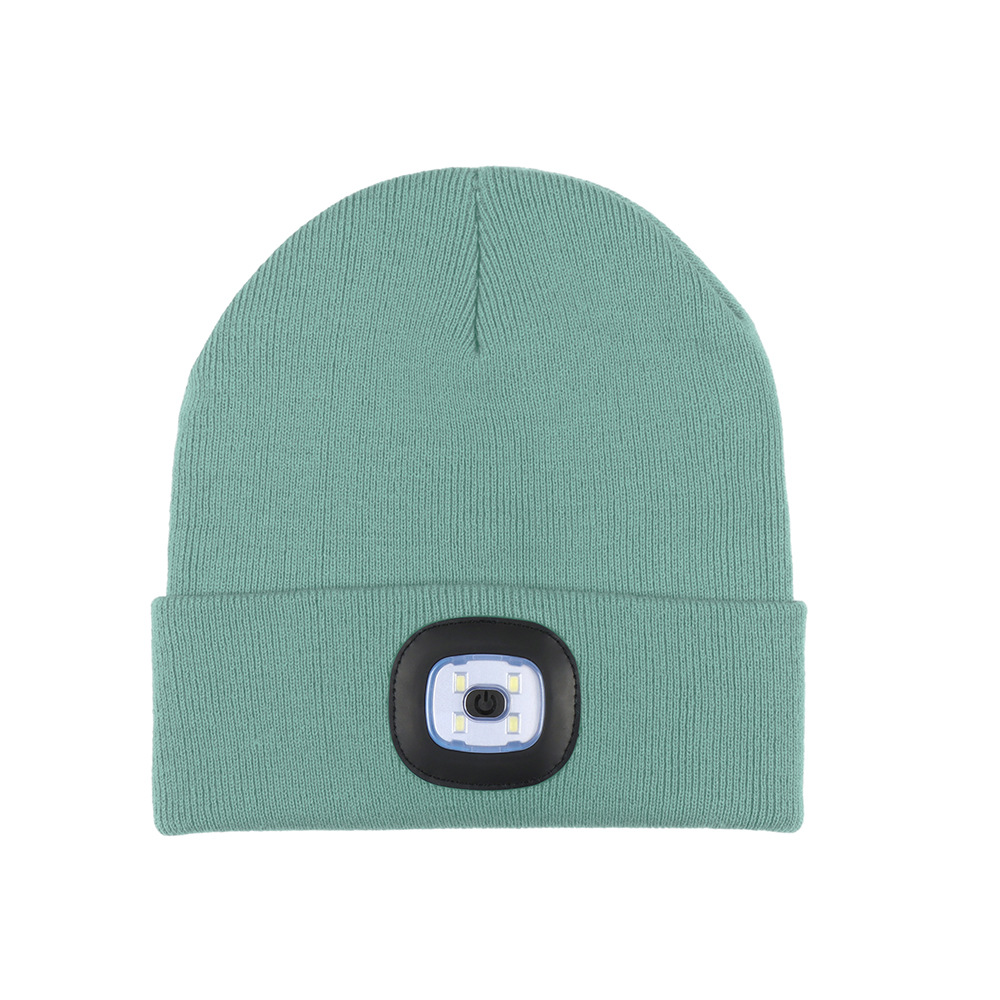 USB充电款LED毛线帽子 LED灯针织帽 秋冬季夜跑带灯发光帽子跨境