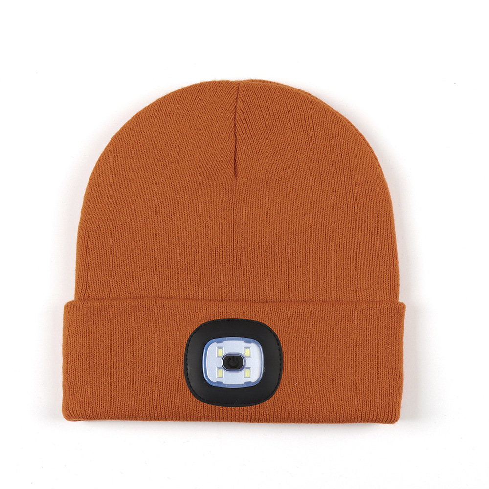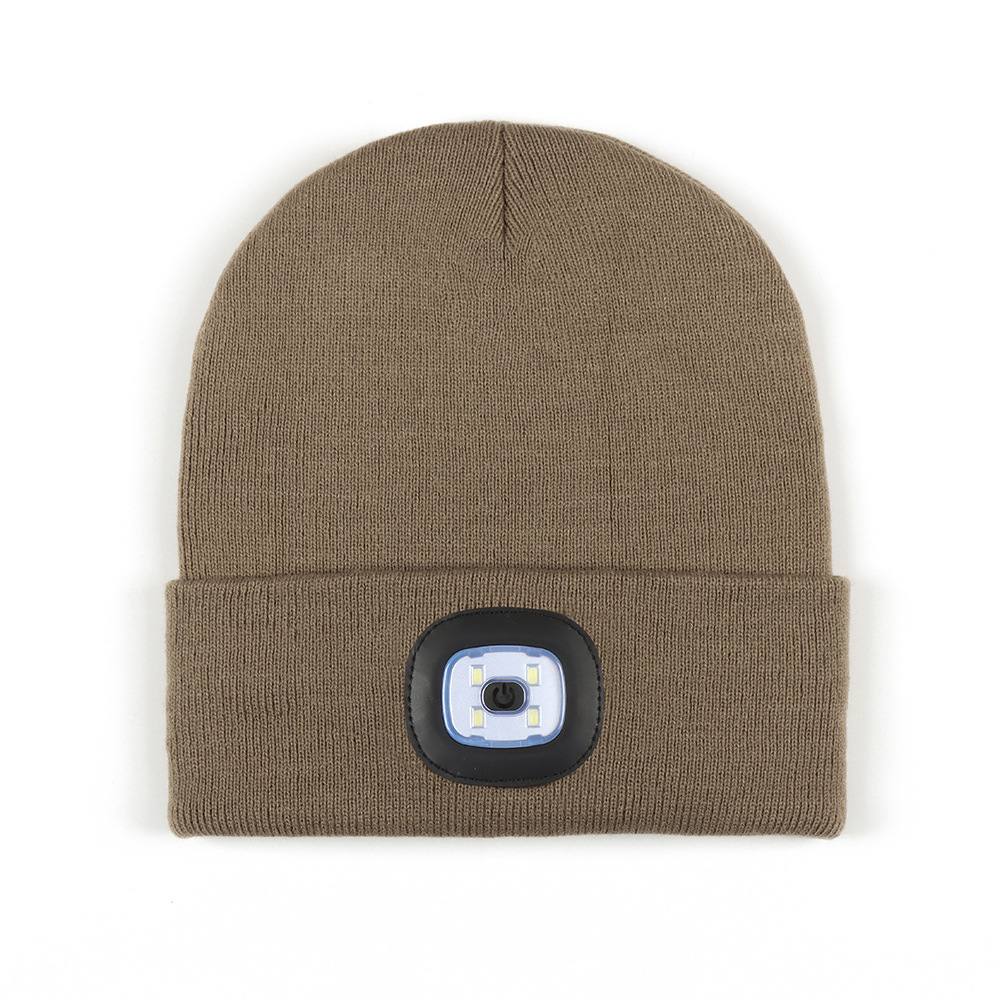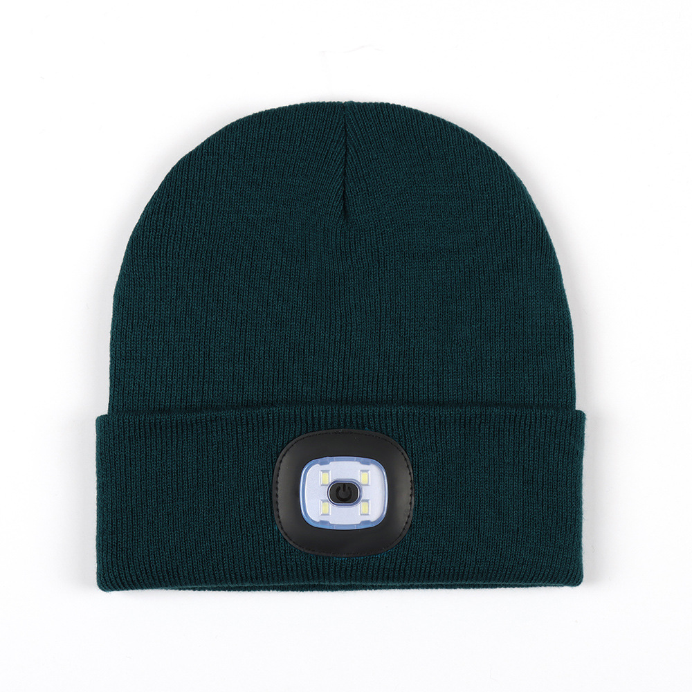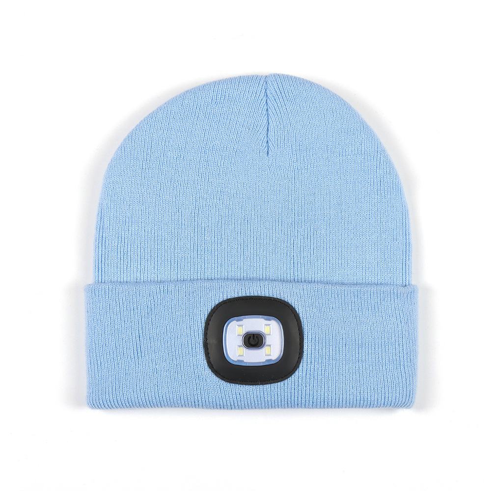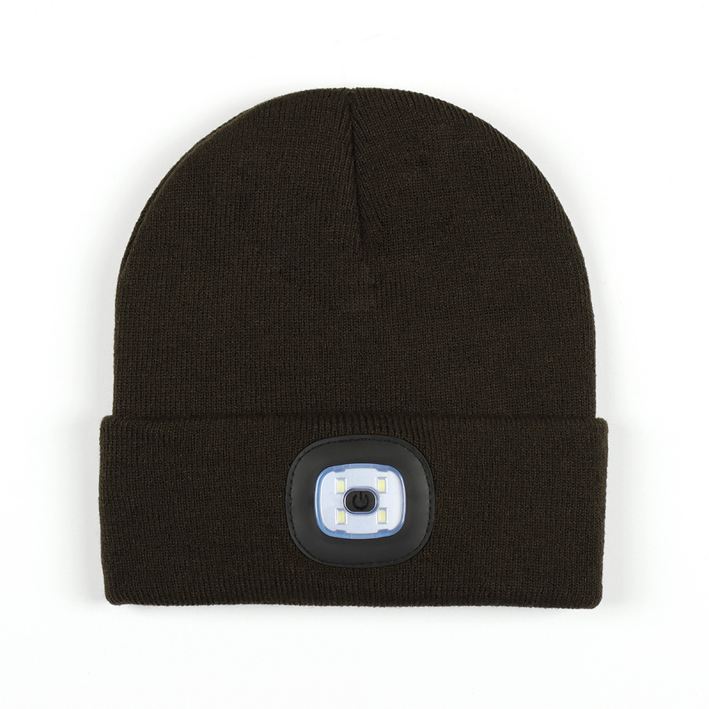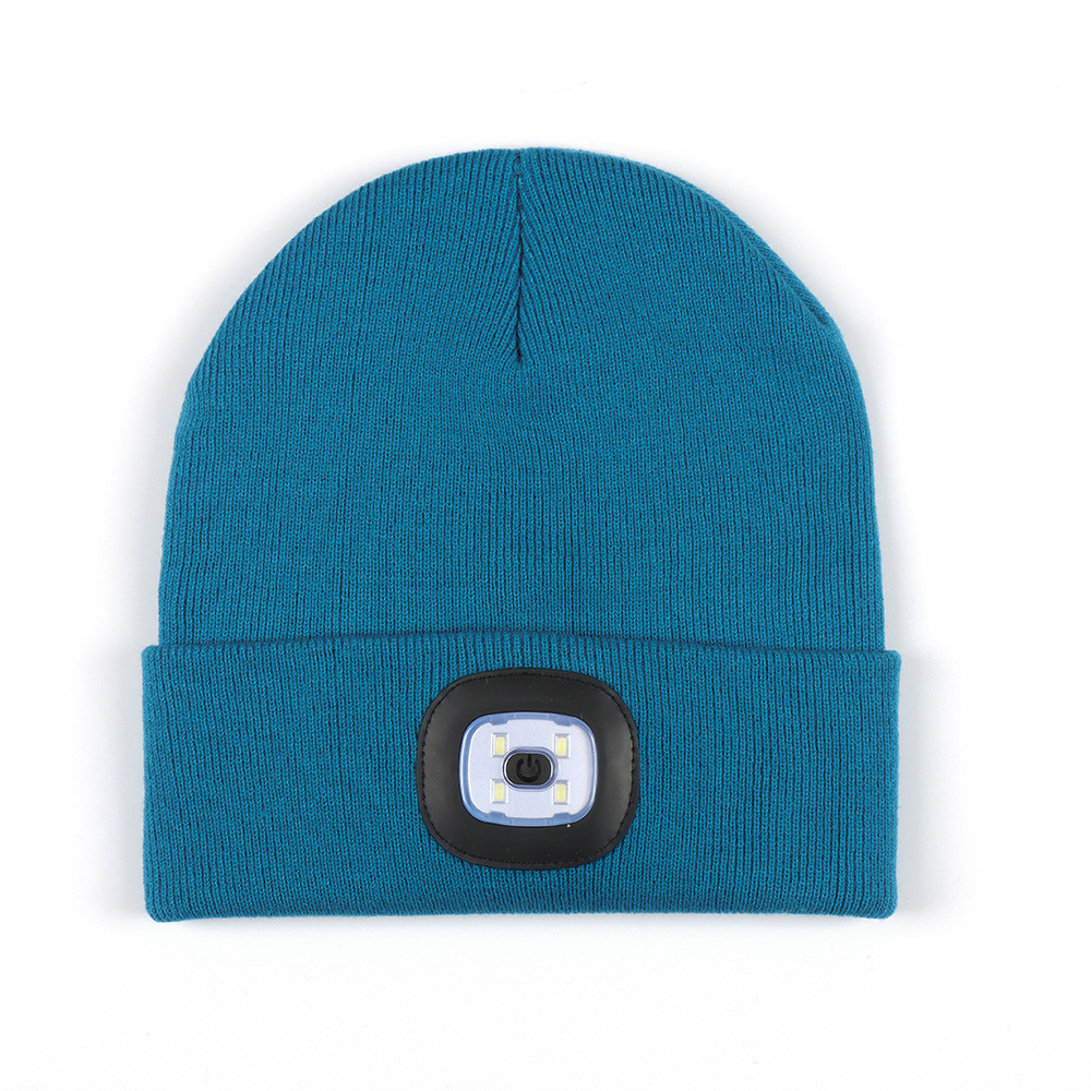 USB充电款LED毛线帽子 LED灯针织帽 秋冬季夜跑带灯发光帽子跨境