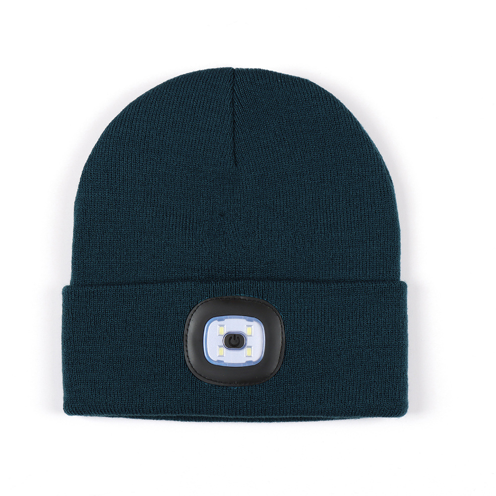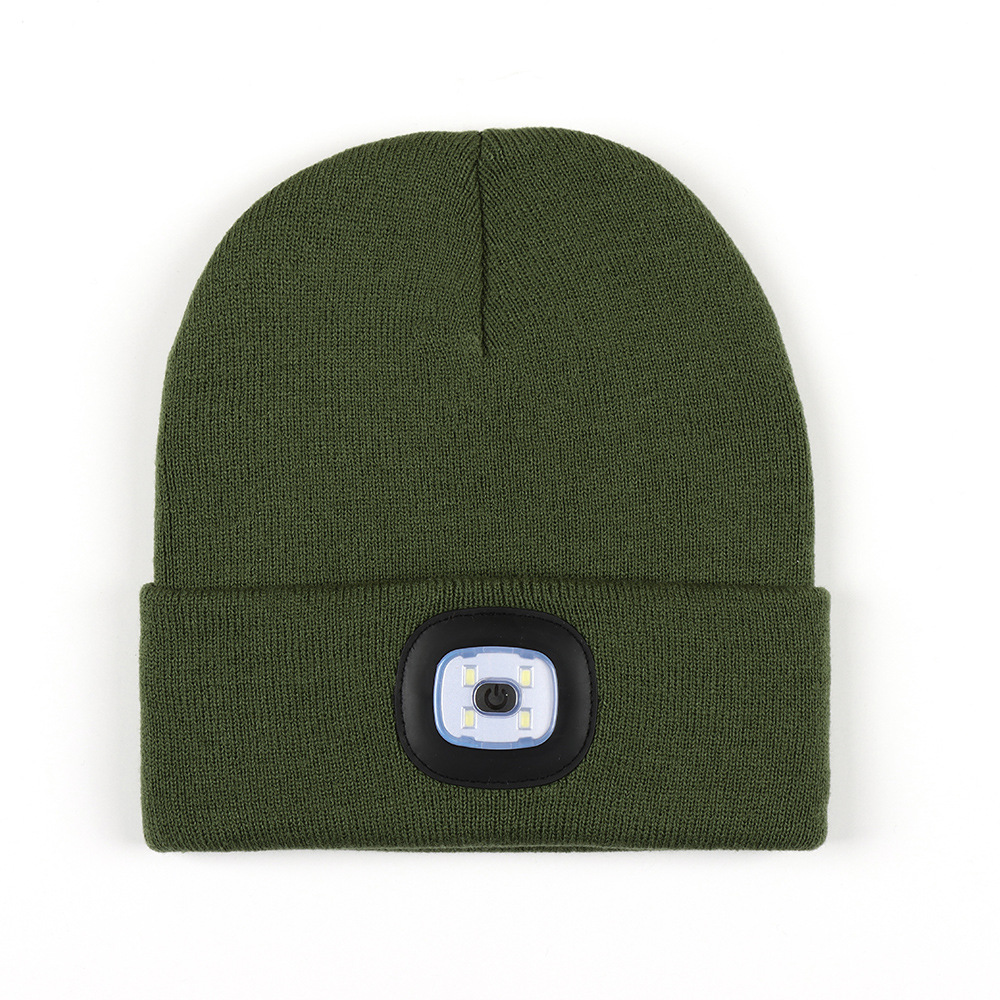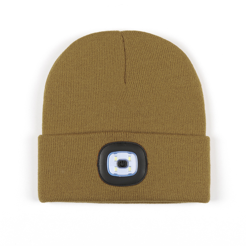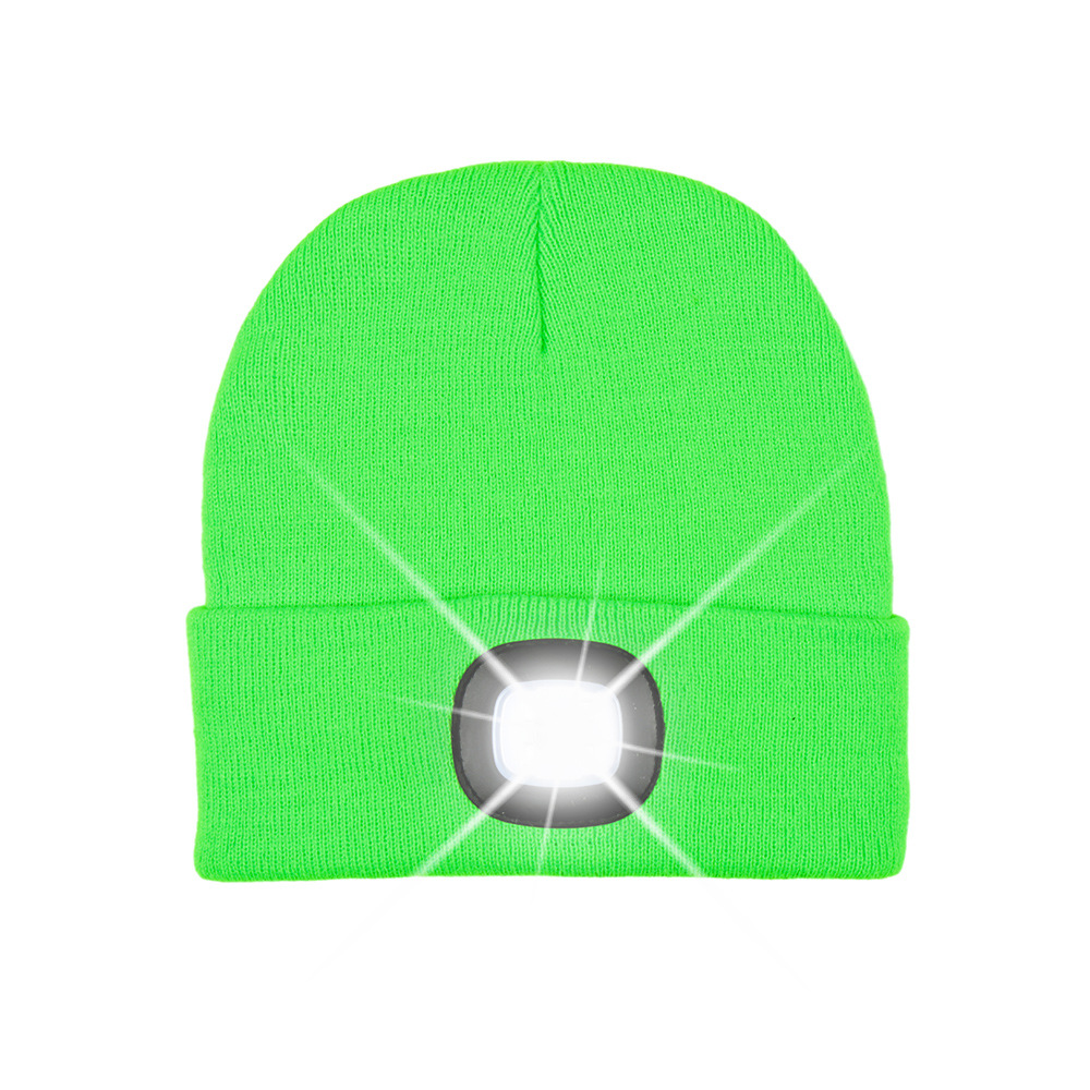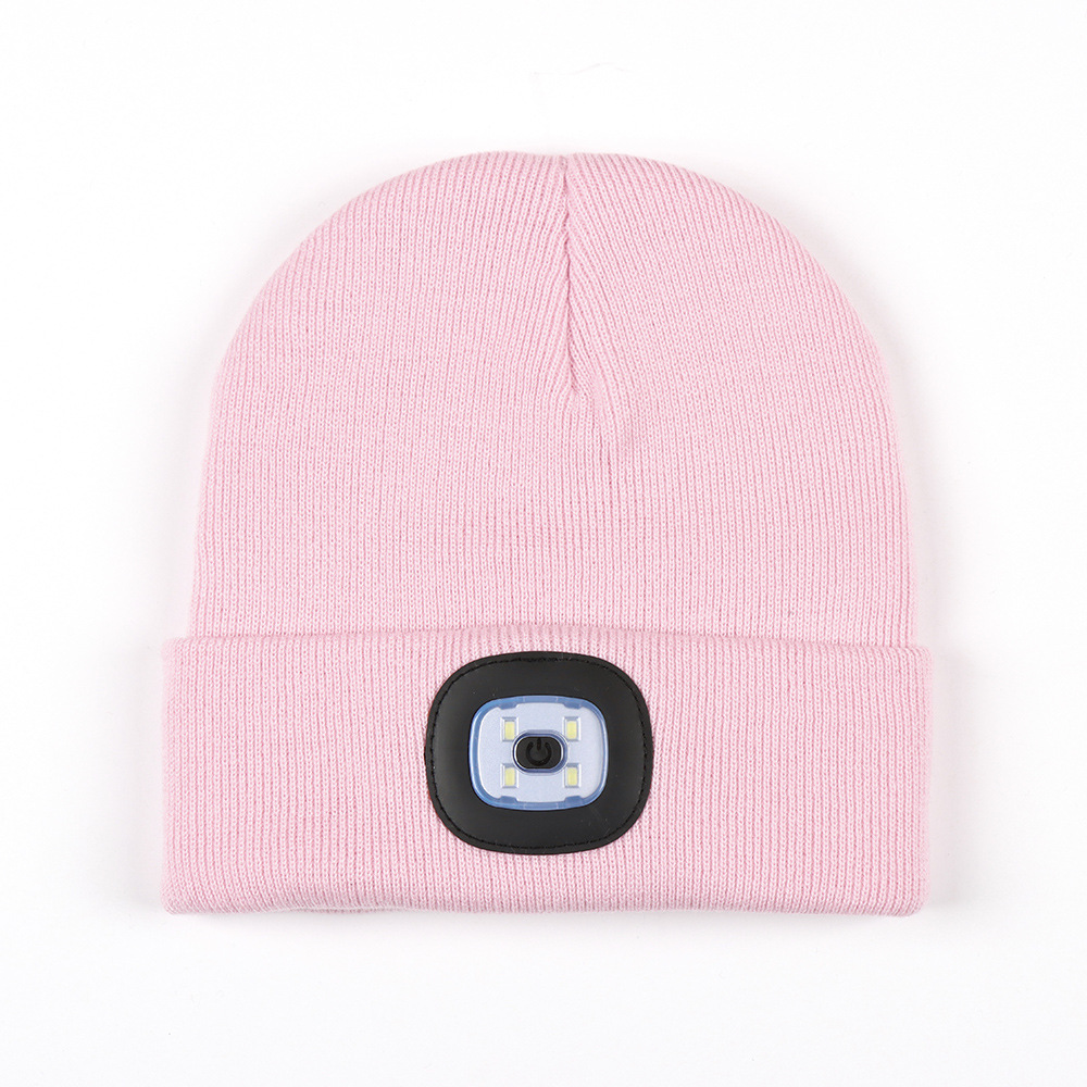 USB充电款LED毛线帽子 LED灯针织帽 秋冬季夜跑带灯发光帽子跨境