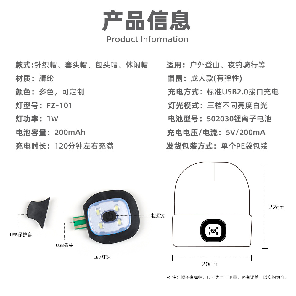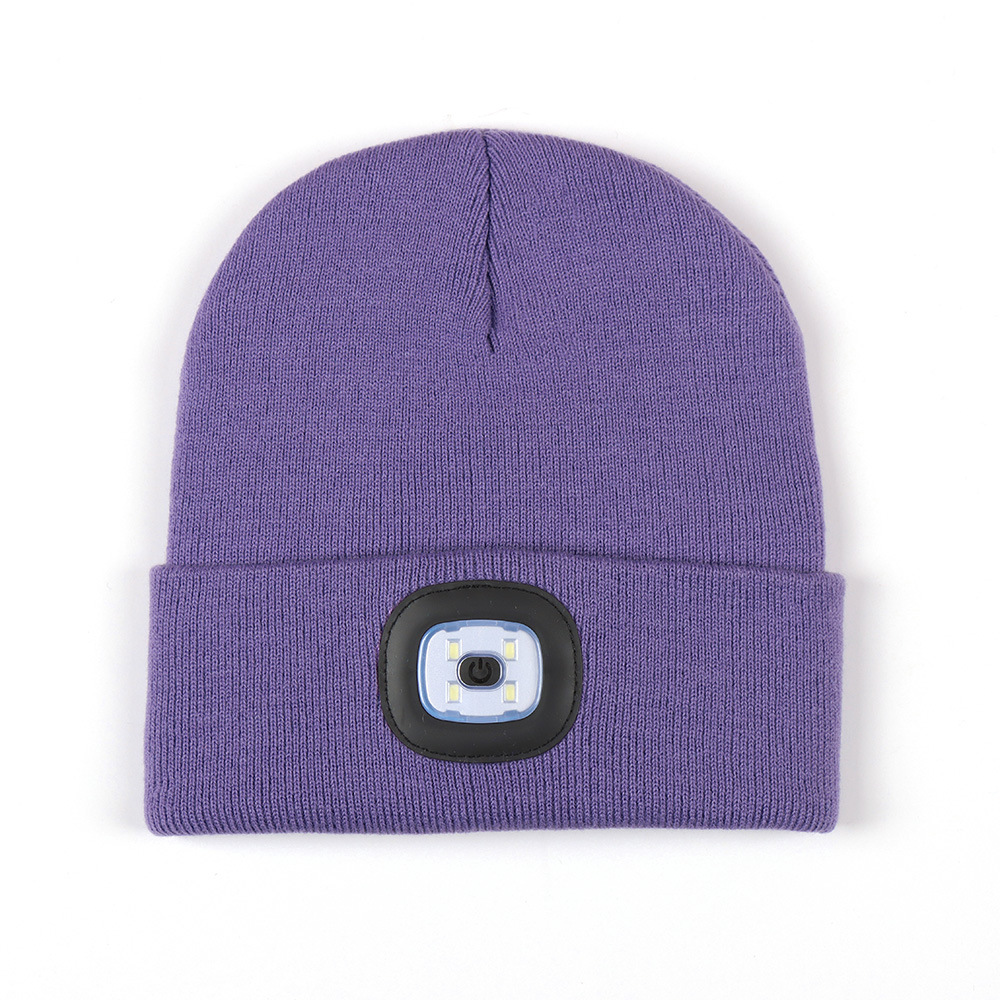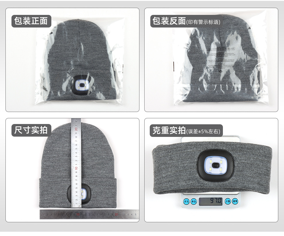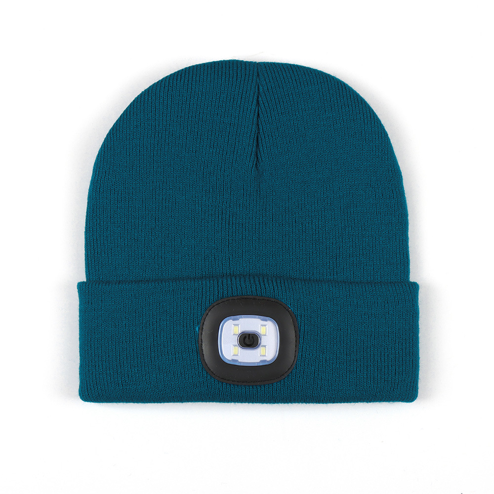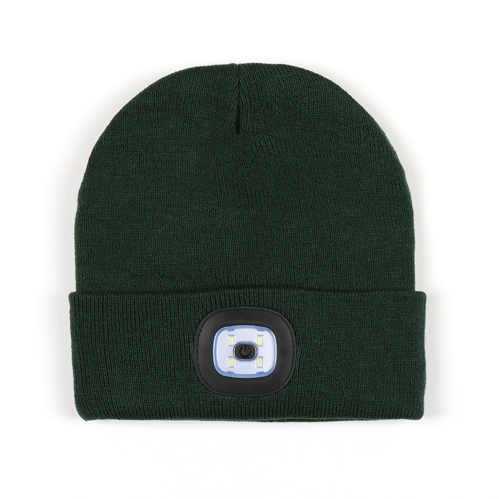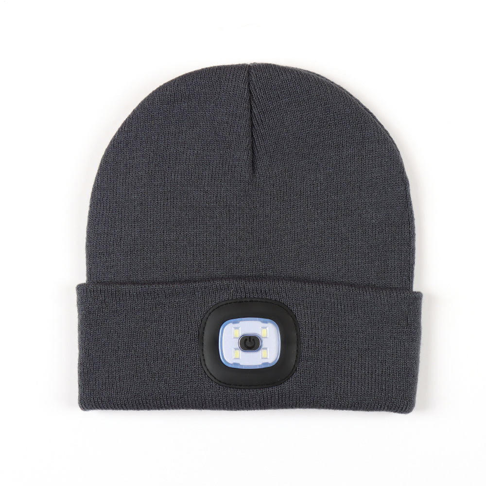 USB充电款LED毛线帽子 LED灯针织帽 秋冬季夜跑带灯发光帽子跨境