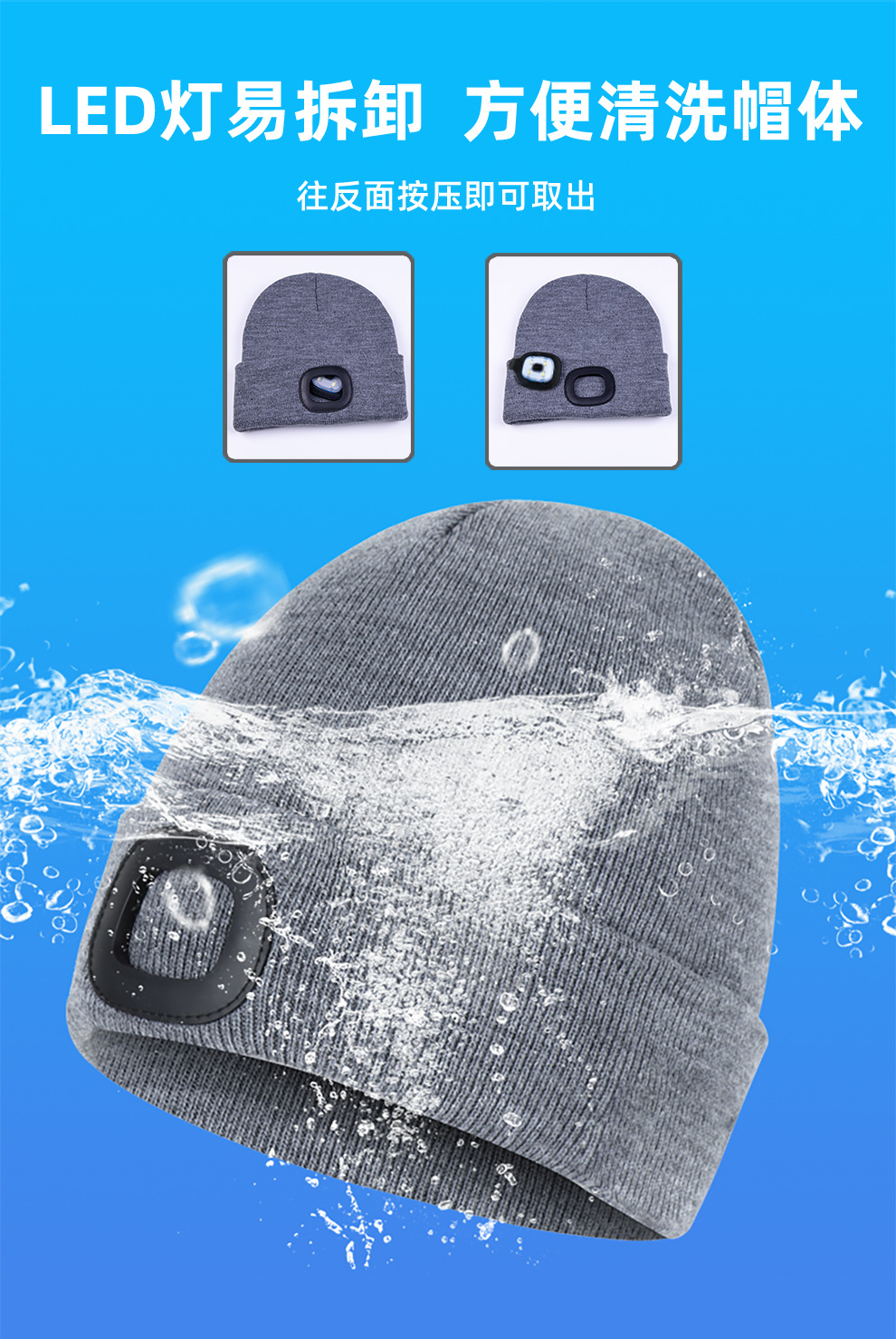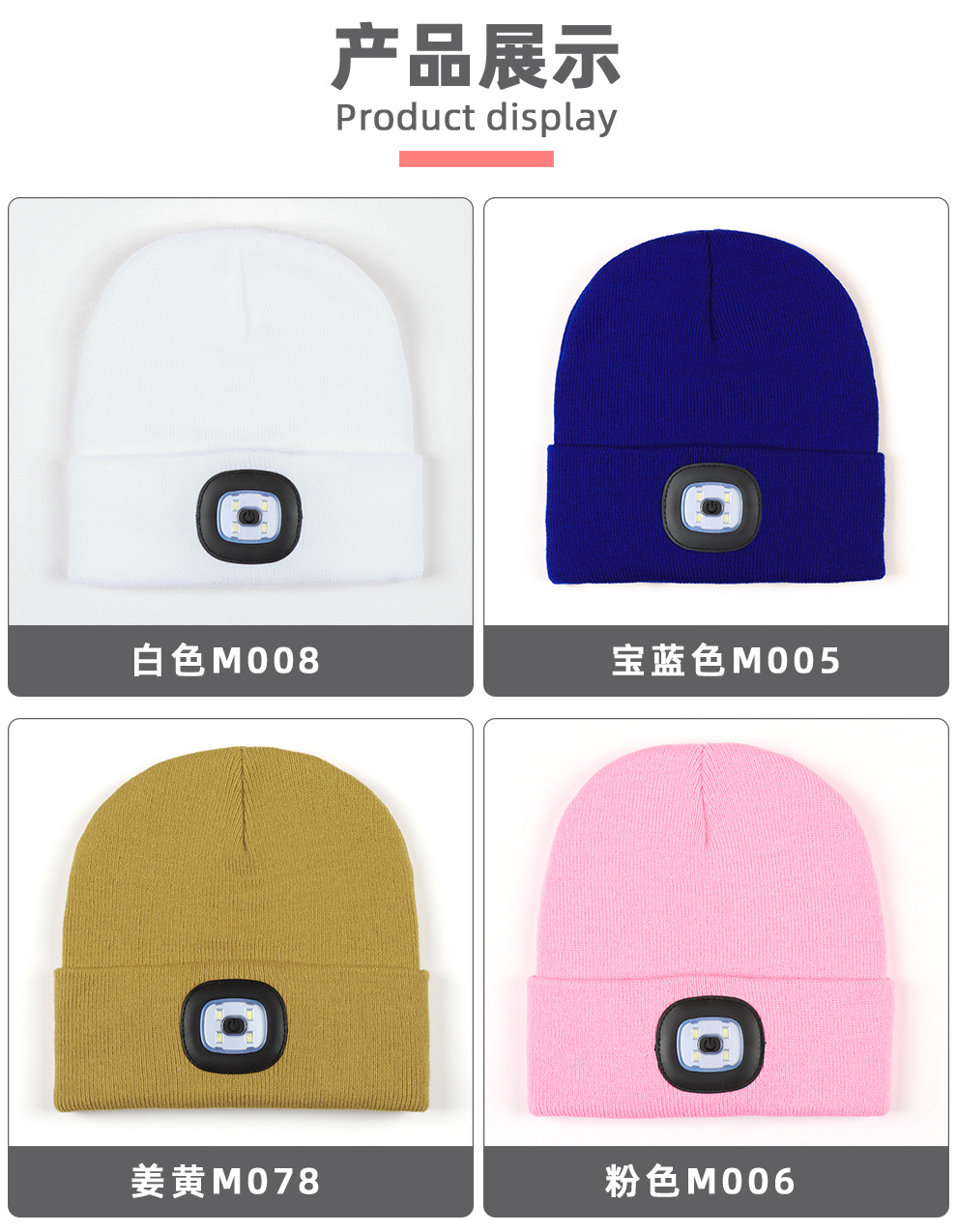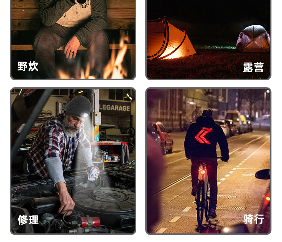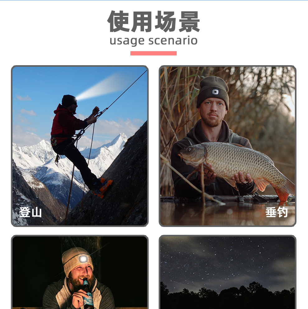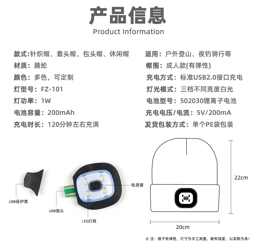 USB充电款LED毛线帽子 LED灯针织帽 秋冬季夜跑带灯发光帽子跨境