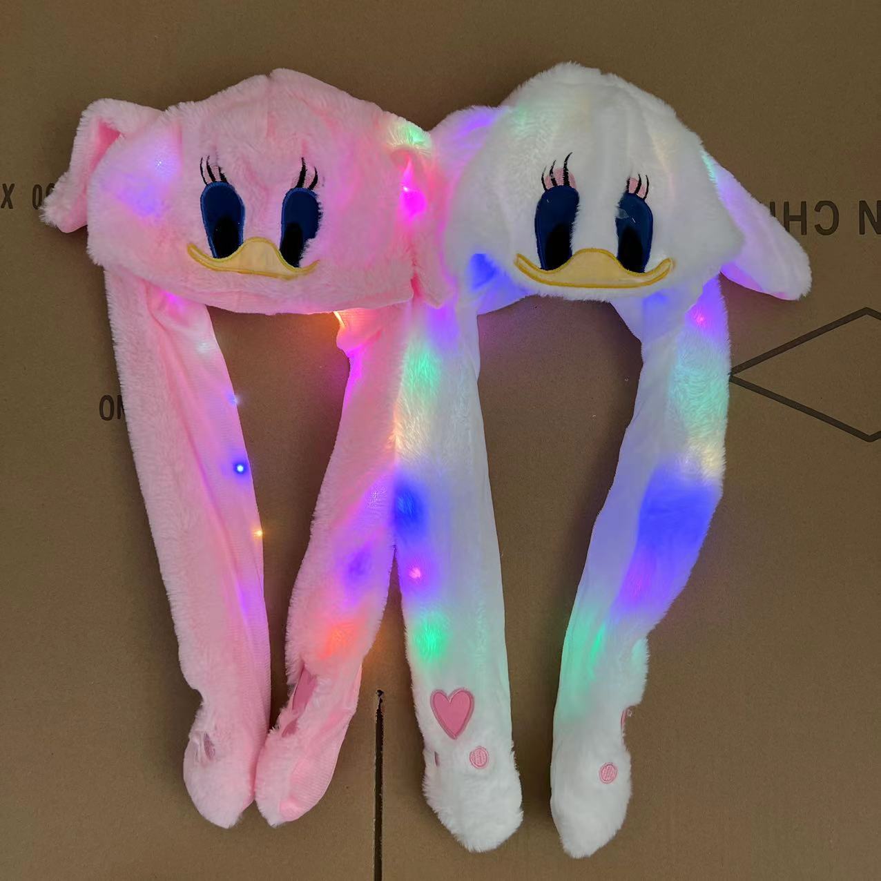 抖音同款兔子帽子亲子款毛绒耳朵会动的帽子卡通亮灯帽长耳发光帽