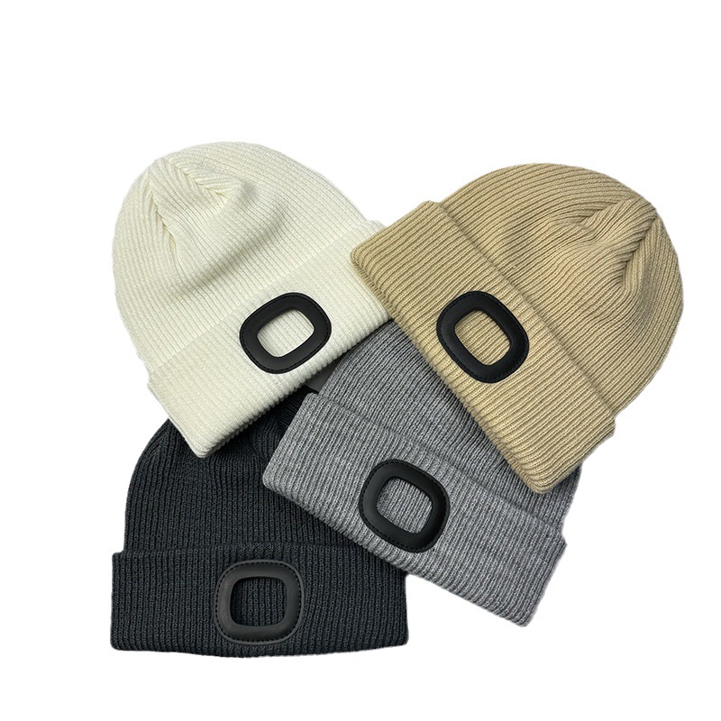 厂家抽针毛线针织帽秋冬季带灯钓鱼帽子LED灯针织帽子可加印ogo
