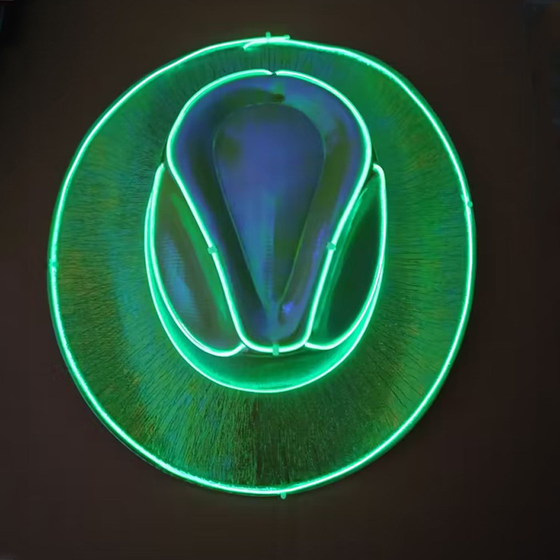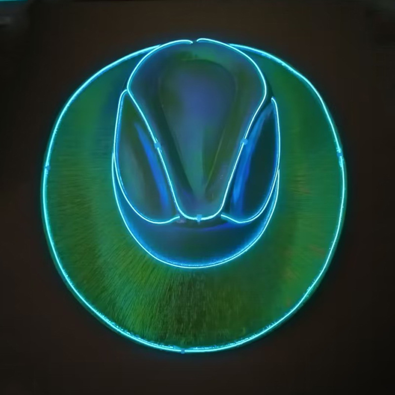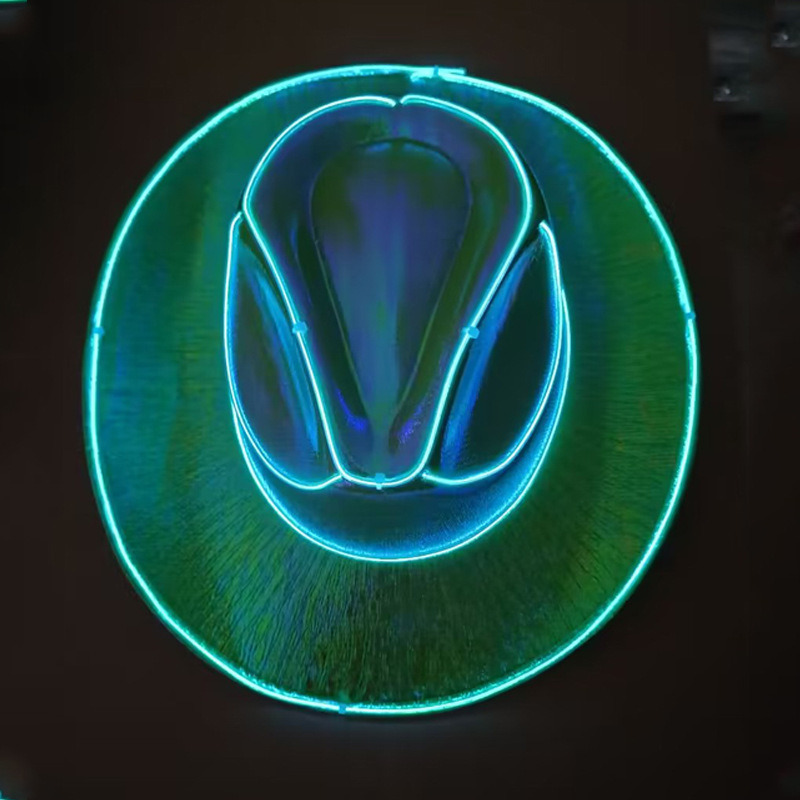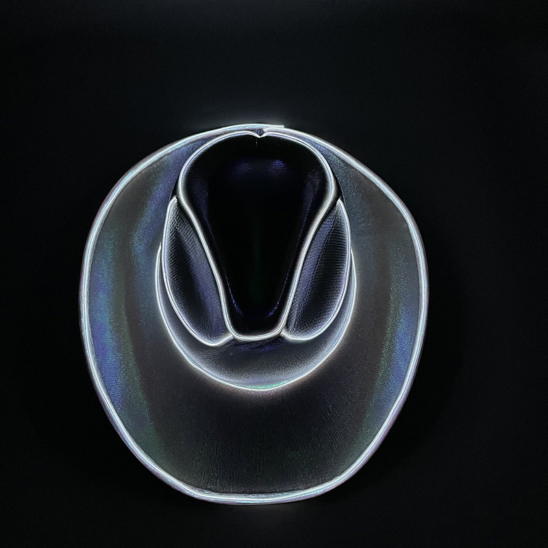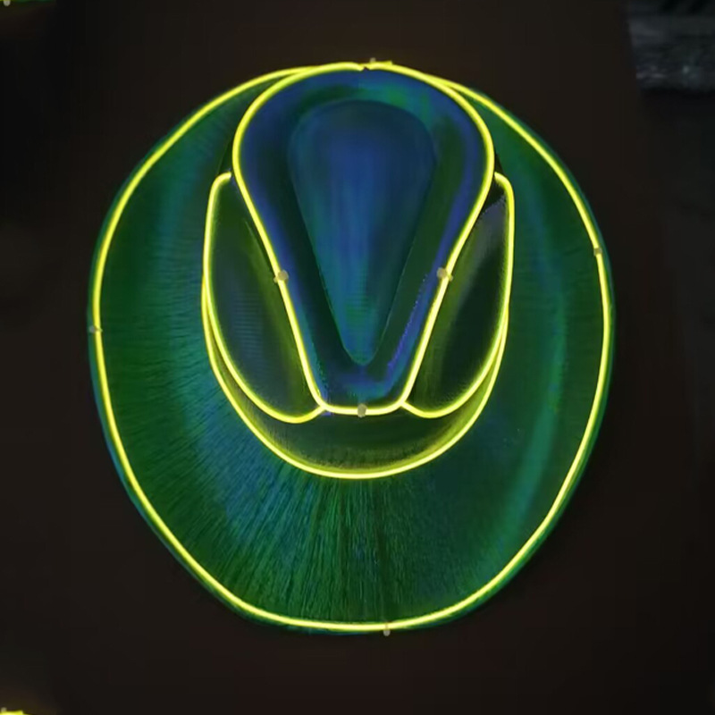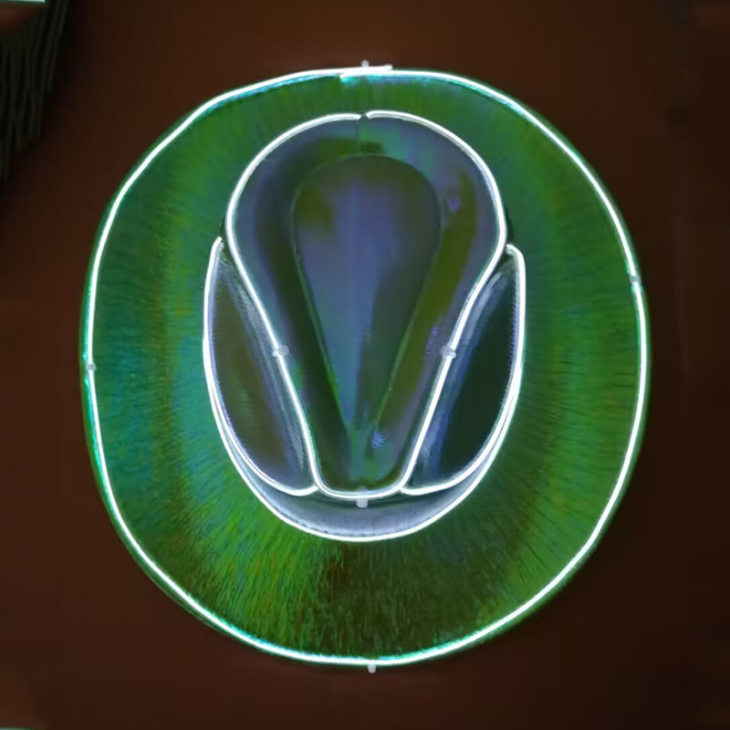 万圣节珠光帽狂欢派对LED无线荧光七彩牛仔发光帽镭射幻彩牛仔帽