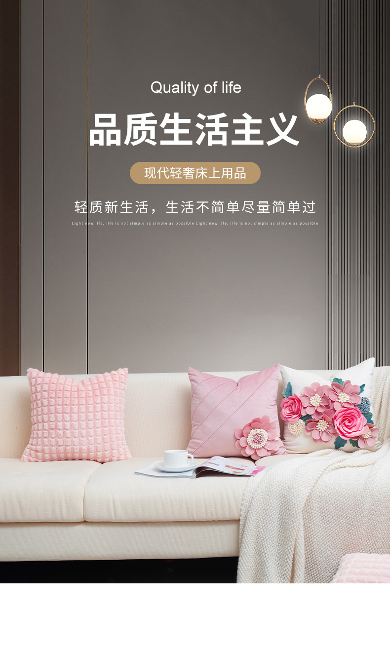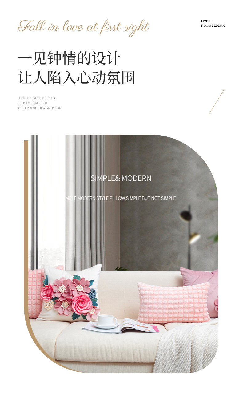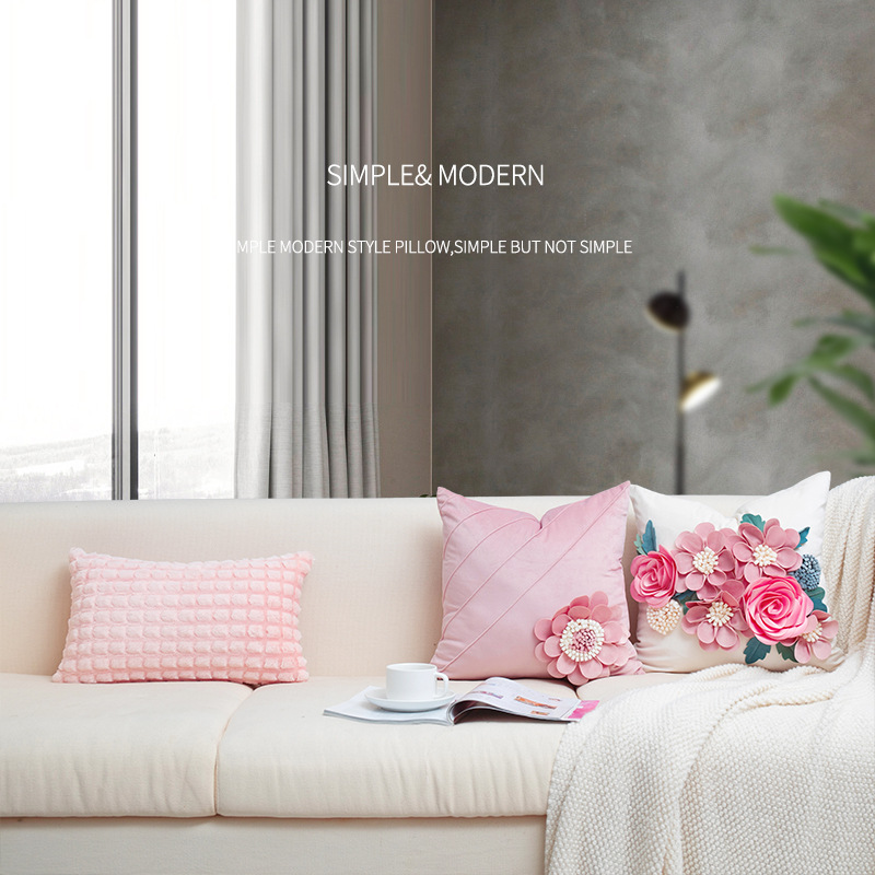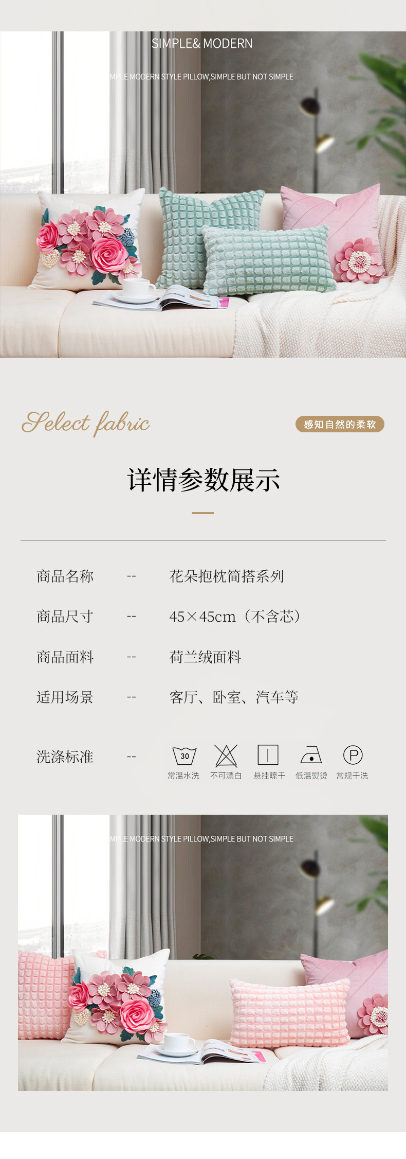 2025新款时尚简约花朵抱枕简搭系列 轻奢风柔软舒适少女粉抱枕套