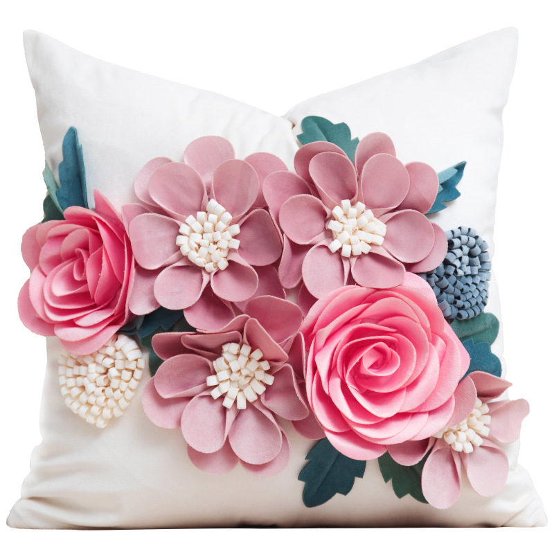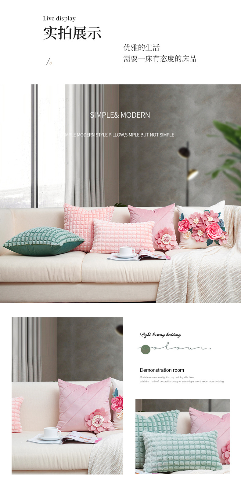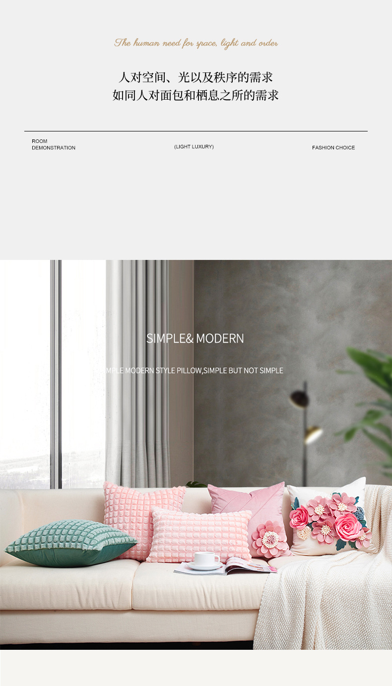2025新款时尚简约花朵抱枕简搭系列 轻奢风柔软舒适少女粉抱枕套