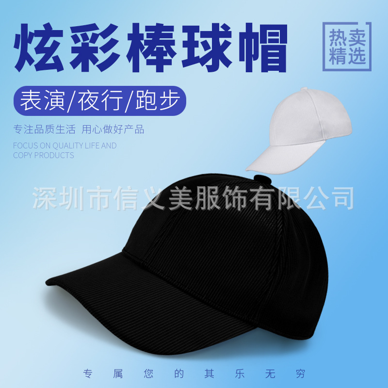 厂家源头LED光纤发光帽子发光情侣帽户外发光鸭舌帽棒球帽表演帽