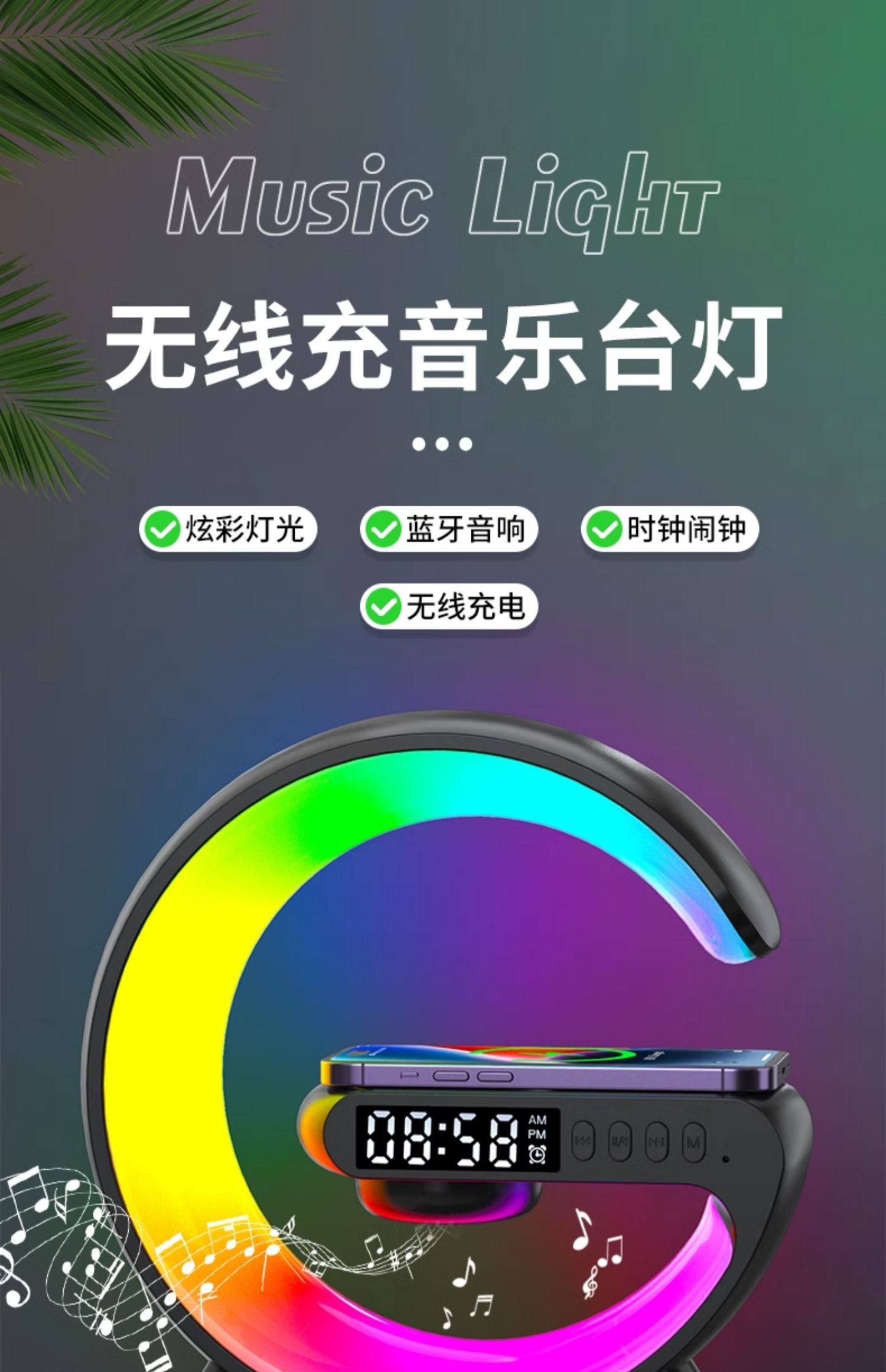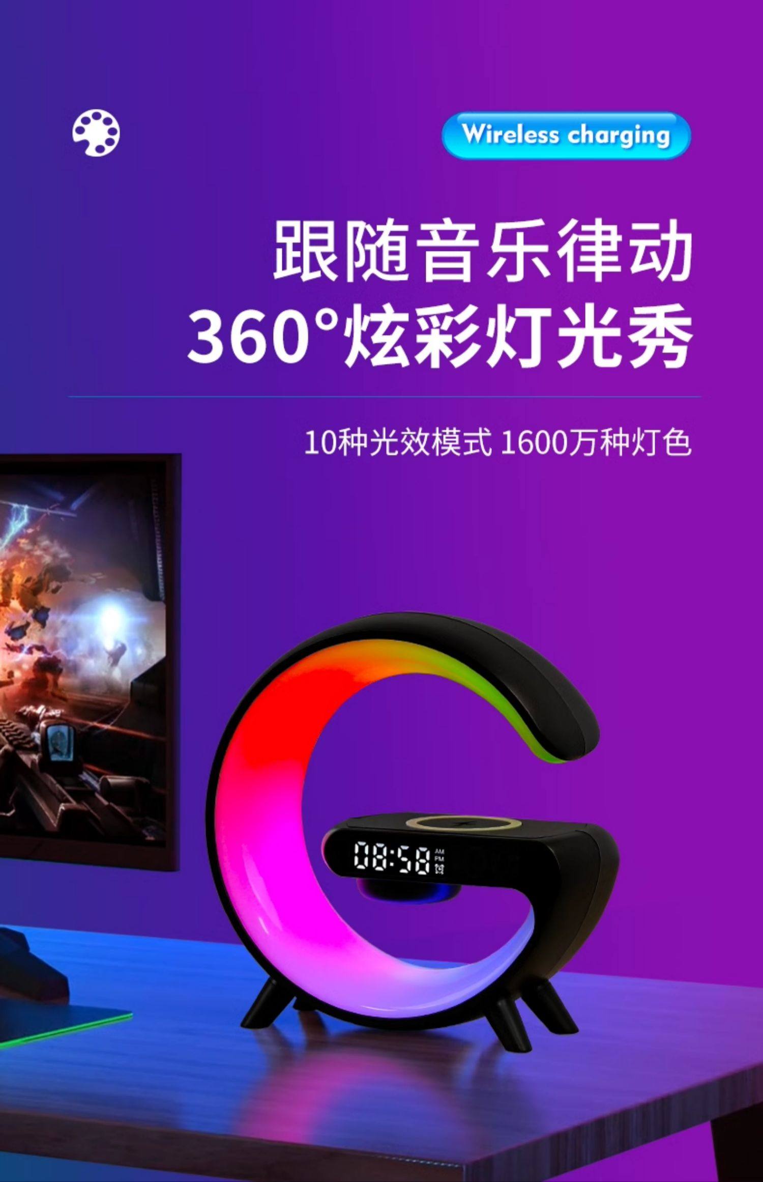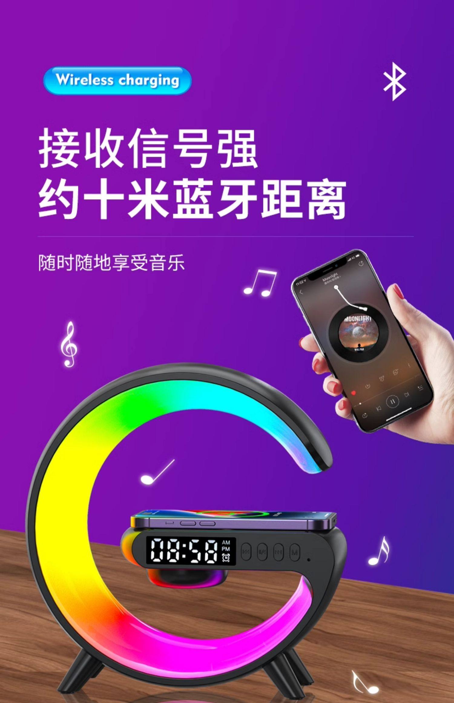 跨境新品G63蓝牙音箱炫彩气氛灯无线充时钟一体机