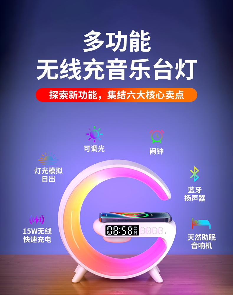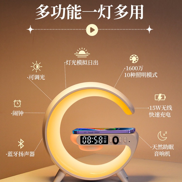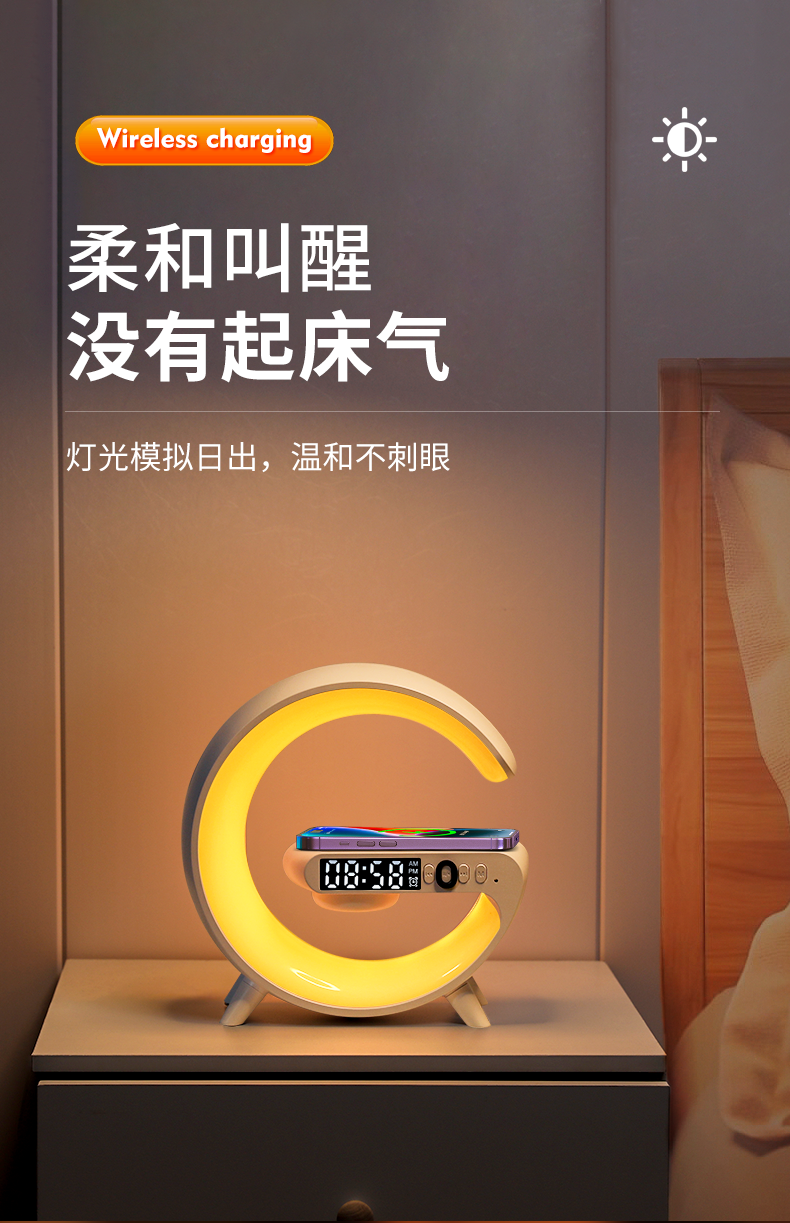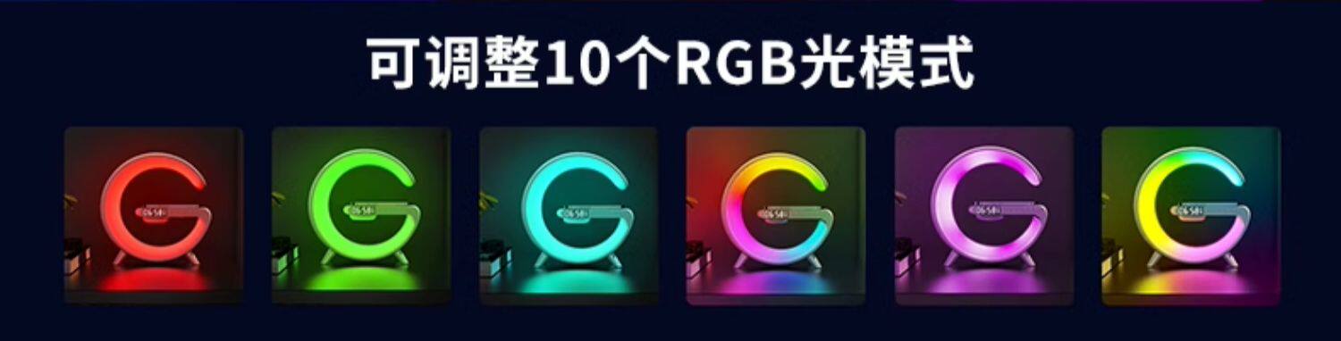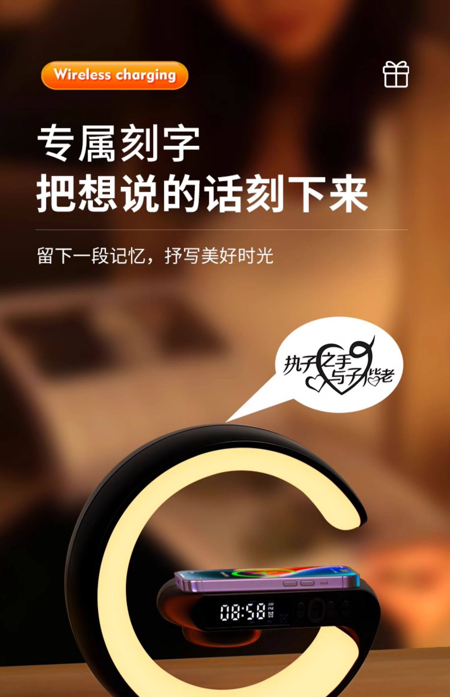 跨境新品G63蓝牙音箱炫彩气氛灯无线充时钟一体机