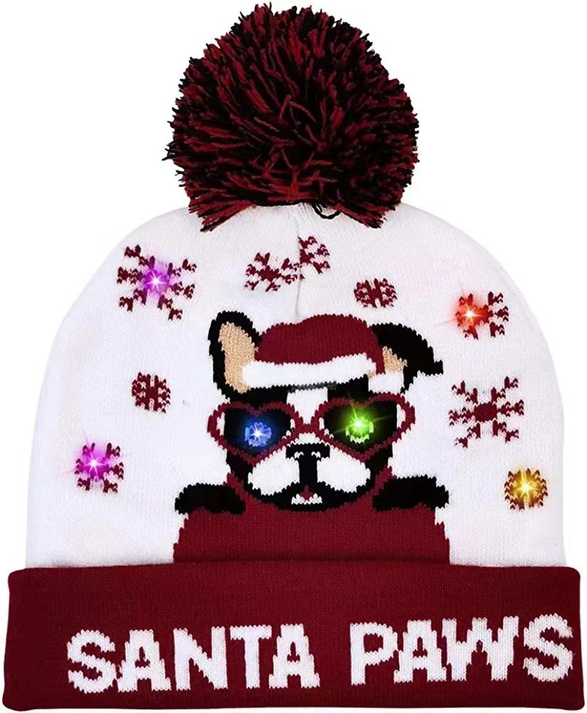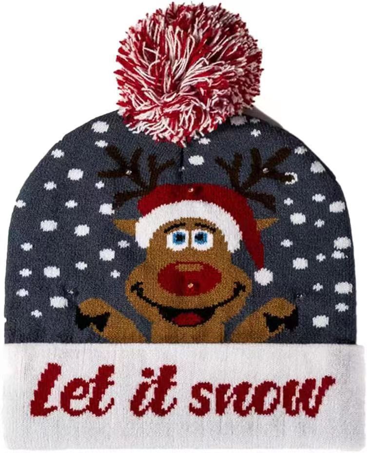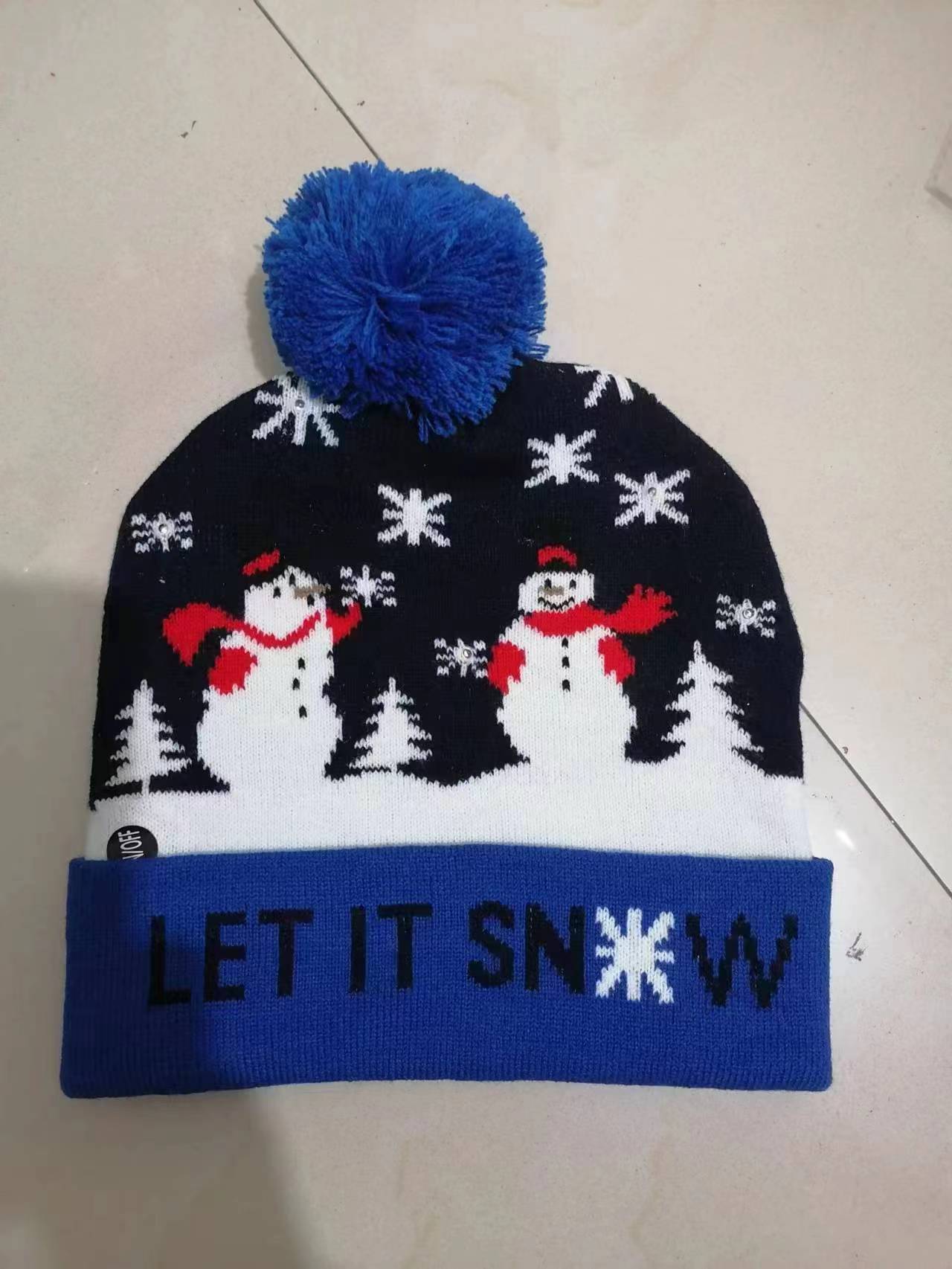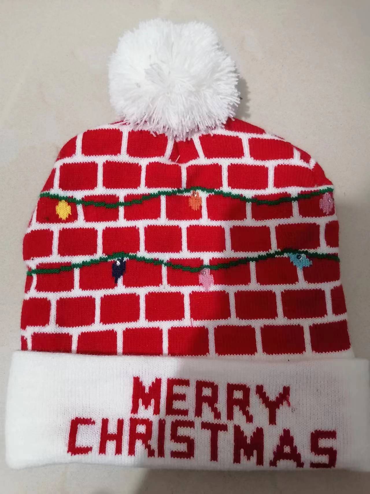 跨境圣诞帽冬款时尚圣诞帽七彩发光保暖成人带球帽圣诞节LED灯针