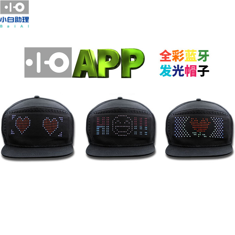 跨境款LED帽子led显示屏app连接蓝牙改字广告宣传万圣节发光帽子
