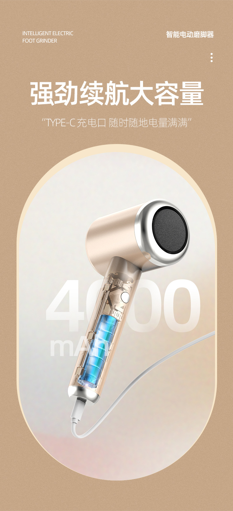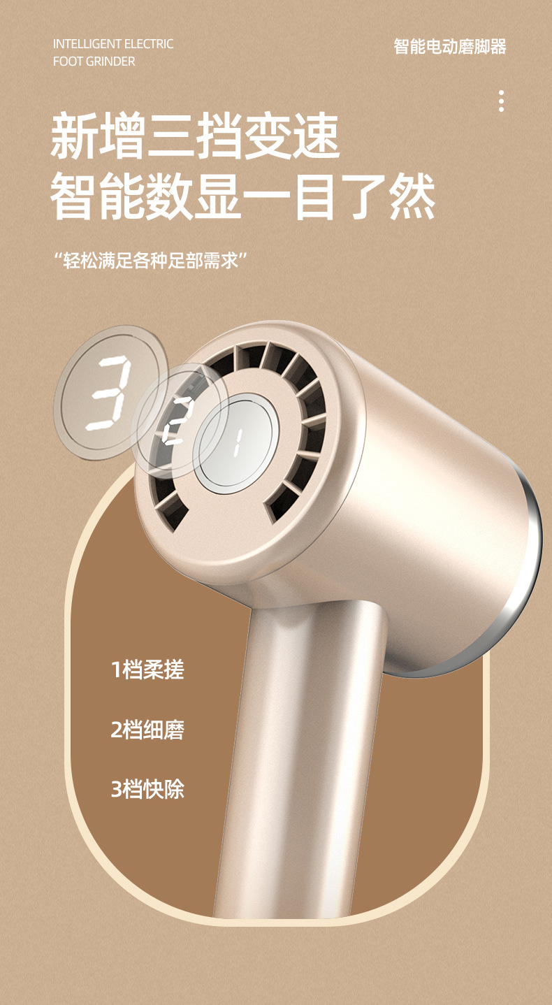 新款数显电动磨脚器家用便携式去死皮修脚器充电式修老茧