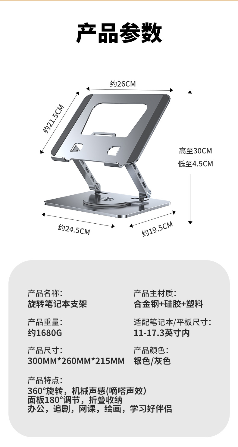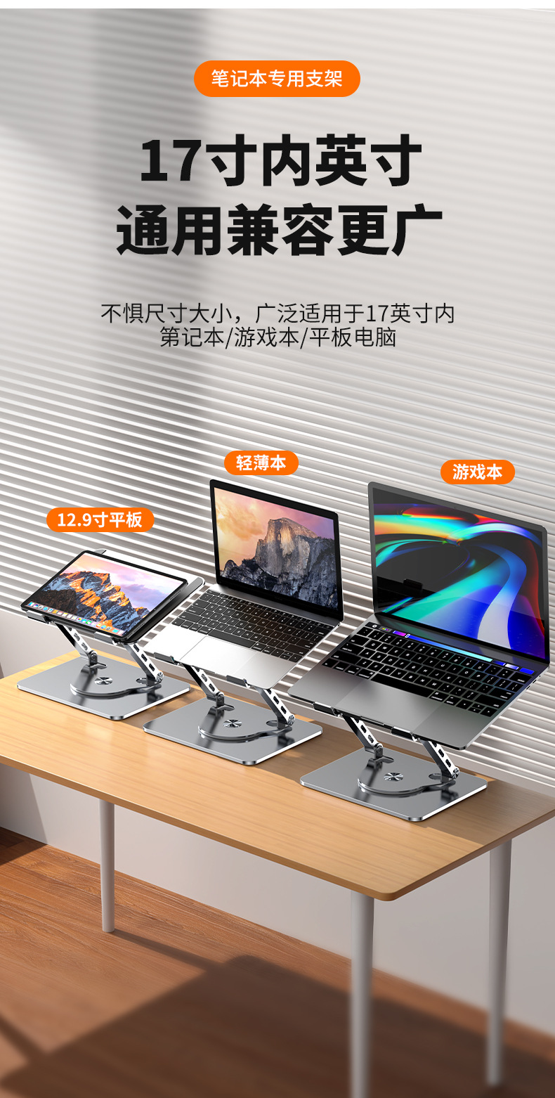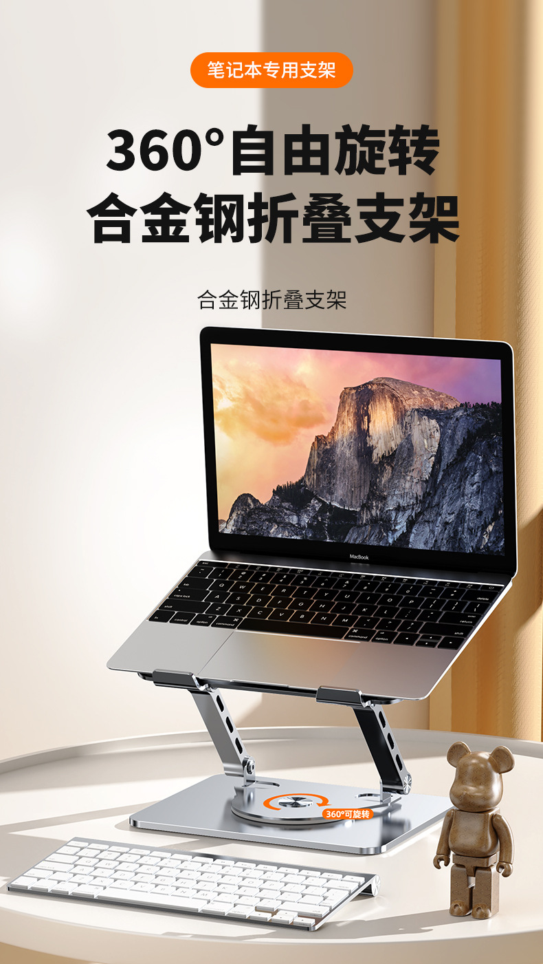 笔记本电脑支架跨境新品360度旋转可折叠收纳桌面金属散热架