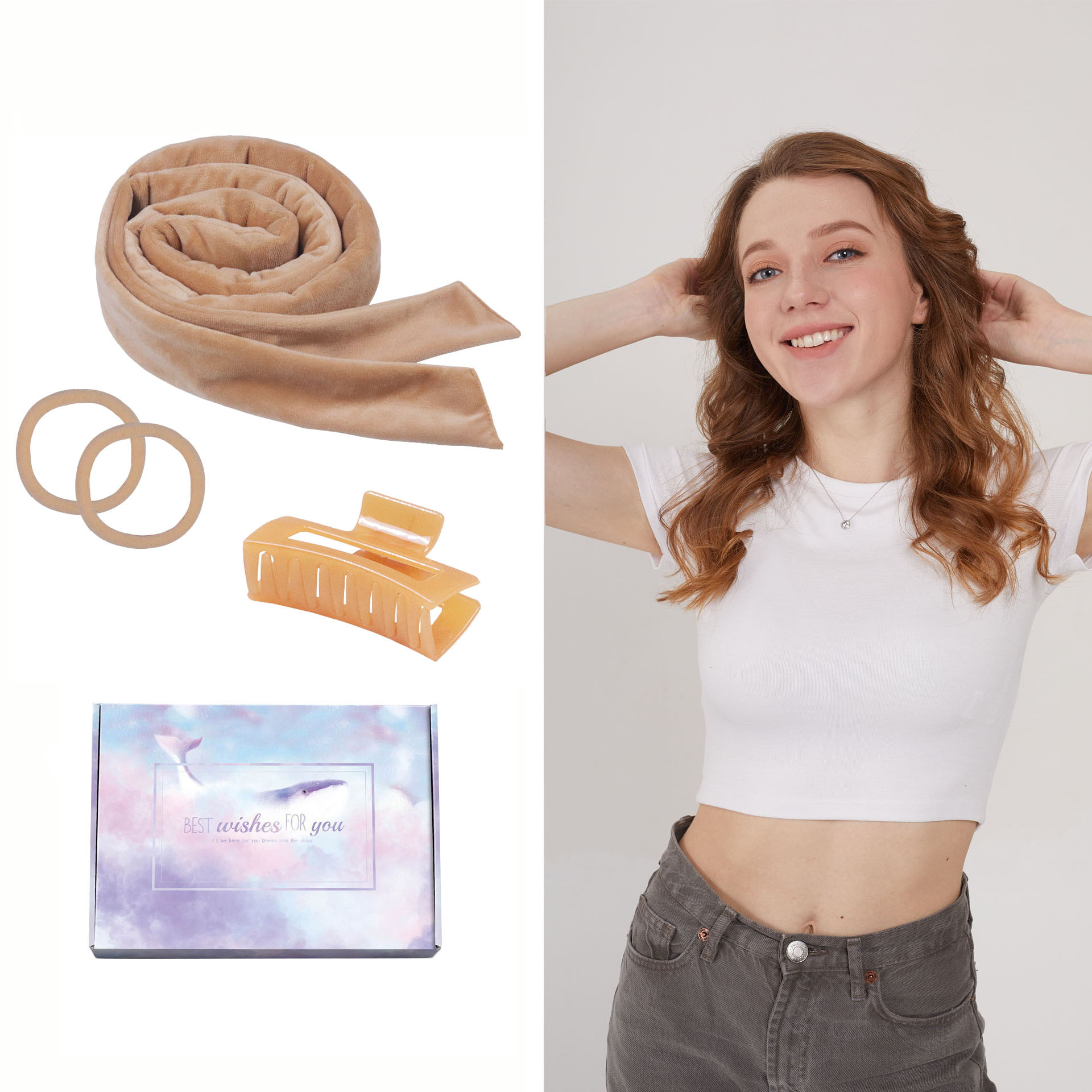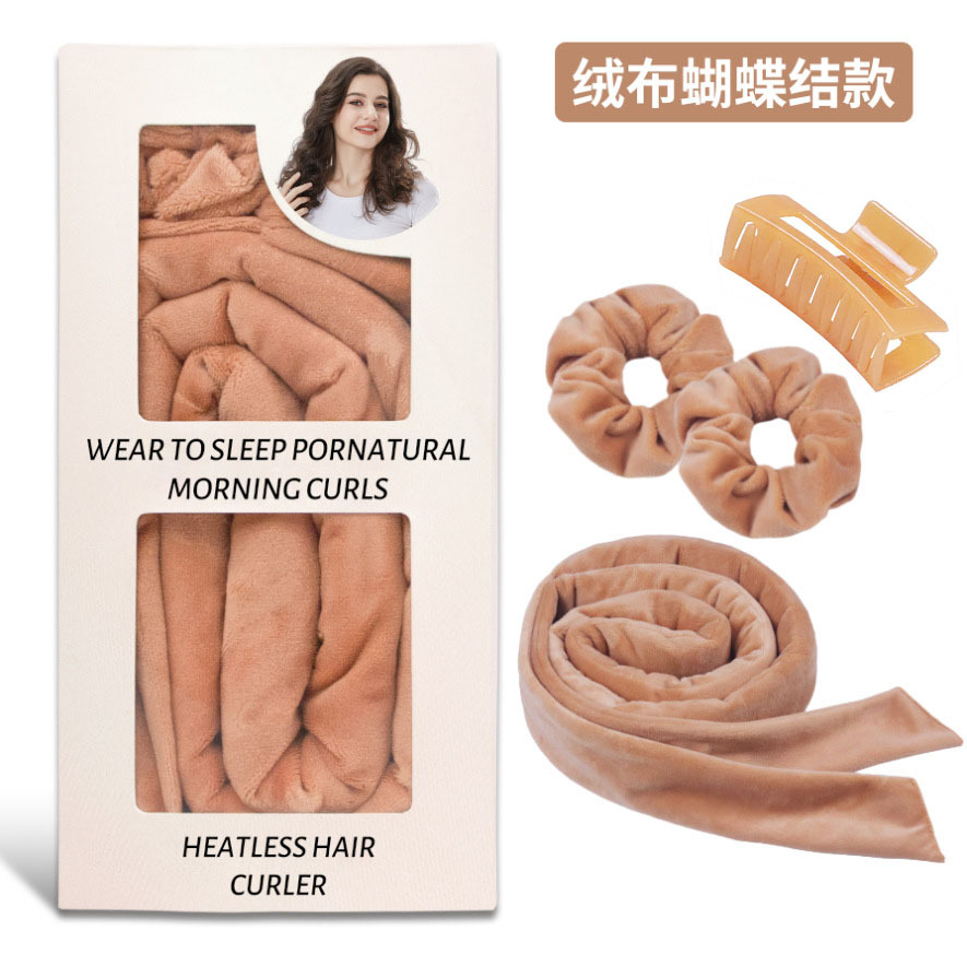 亚马逊蝴蝶结懒人无热卷发棒豹纹睡眠卷发神器大波浪丝绵盘发器
