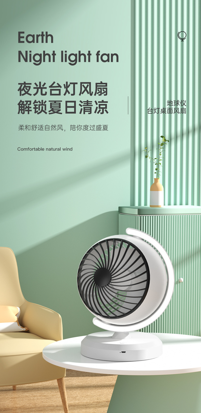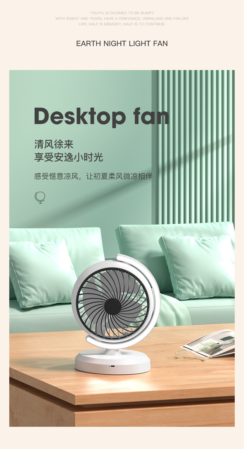 新款多功能桌面灯光风扇USB家用办公室宿舍地球仪台式空气循环扇