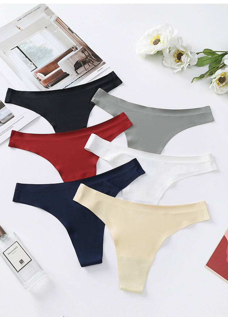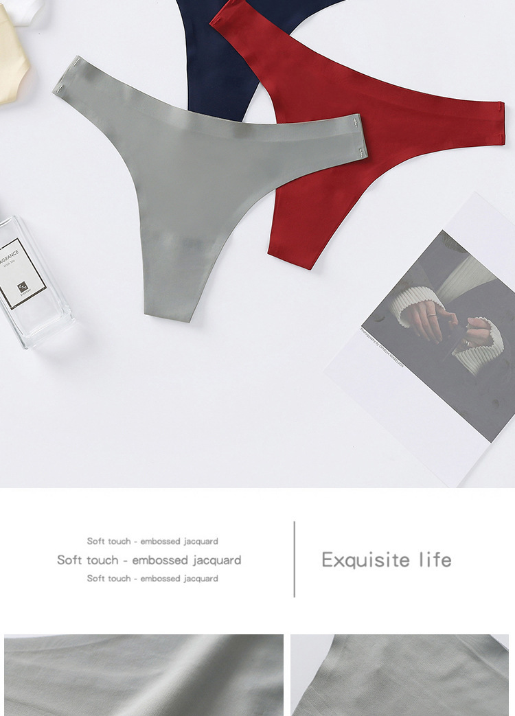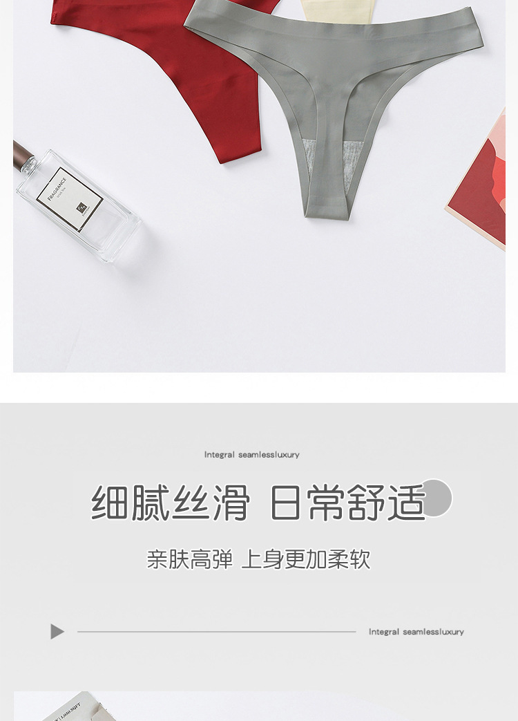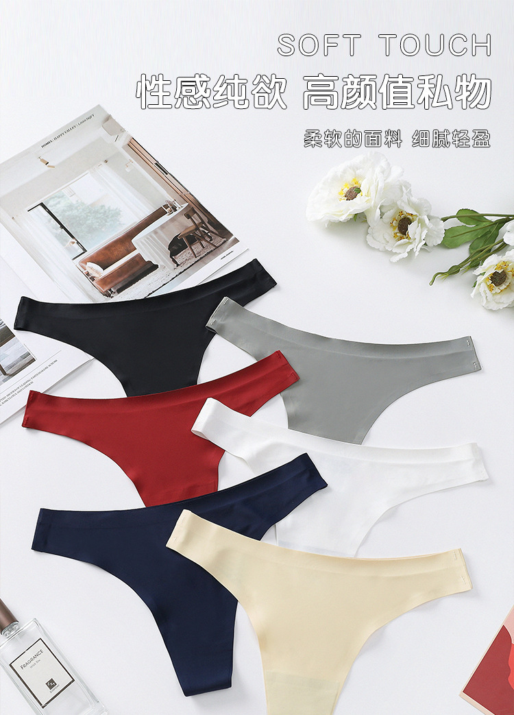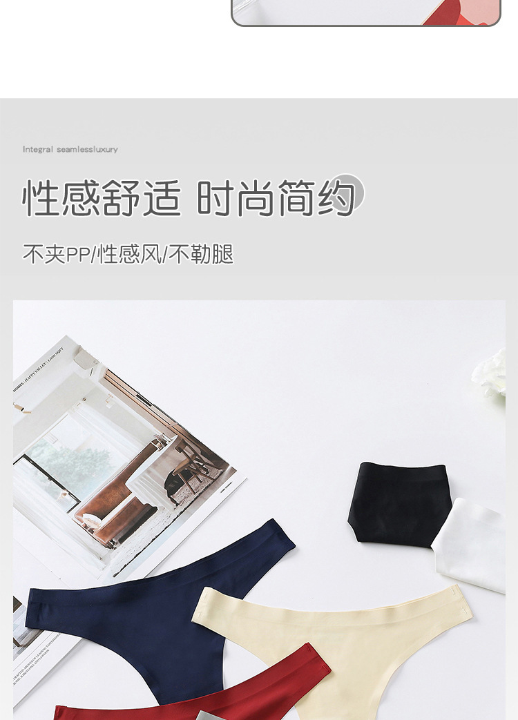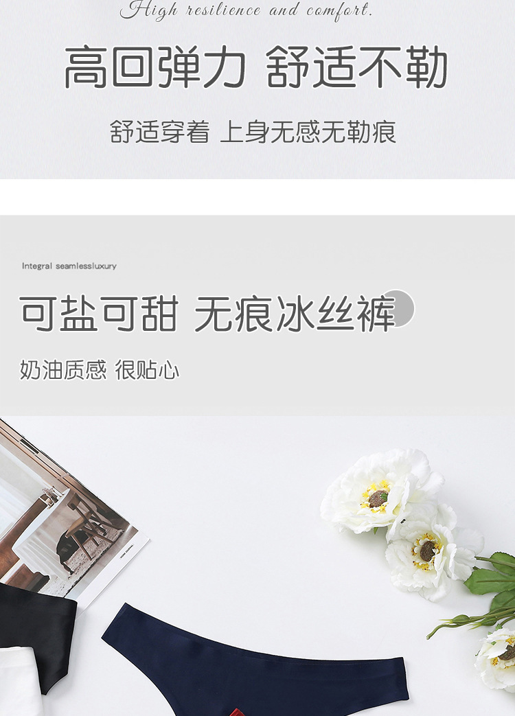 外贸女式内裤性感情趣透明冰丝低腰一片式无痕女士三角裤丁字裤