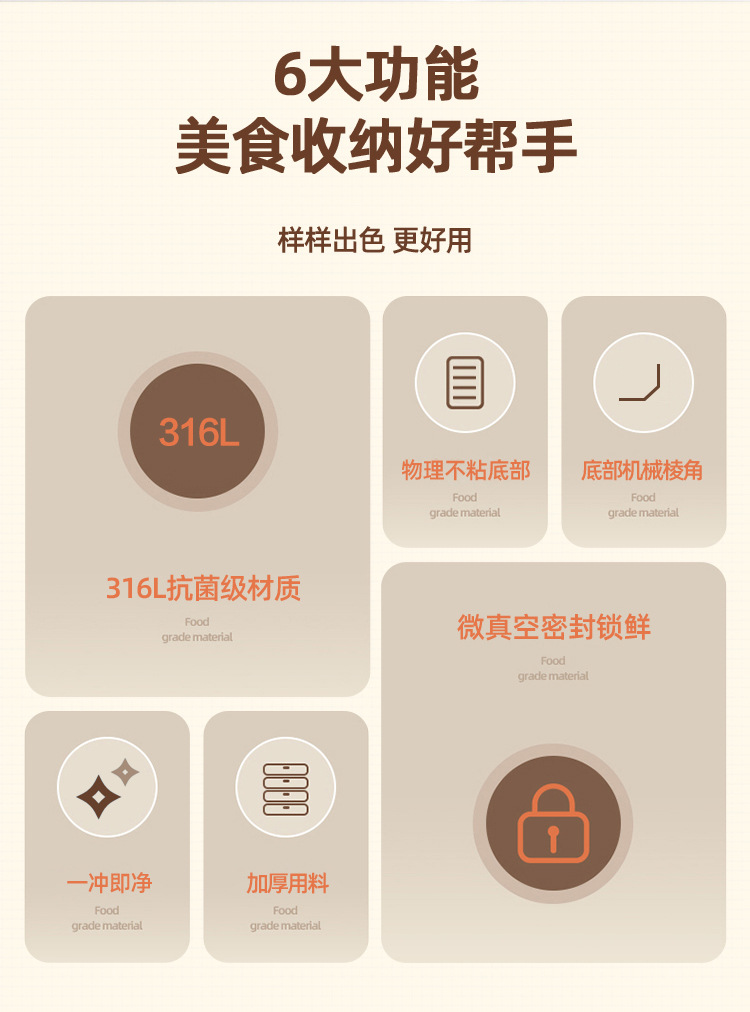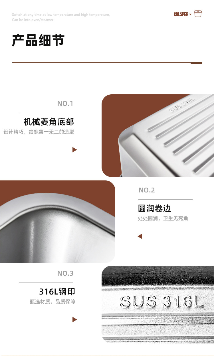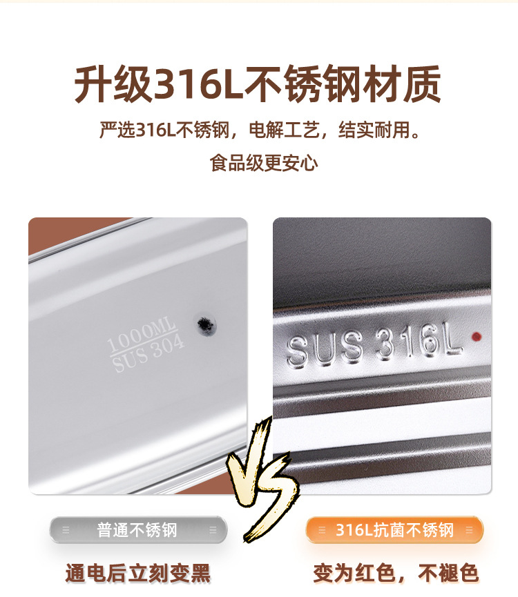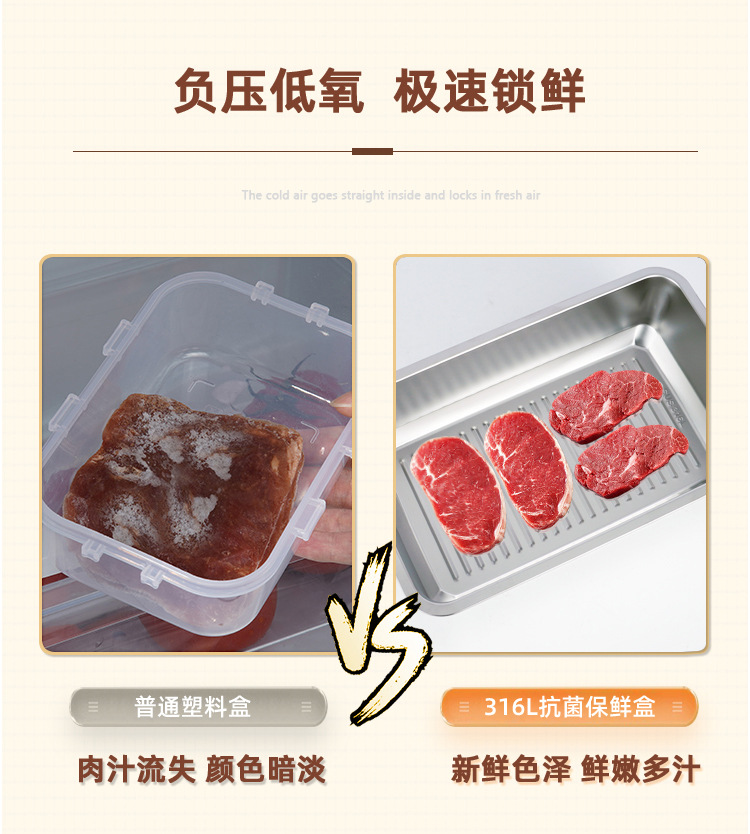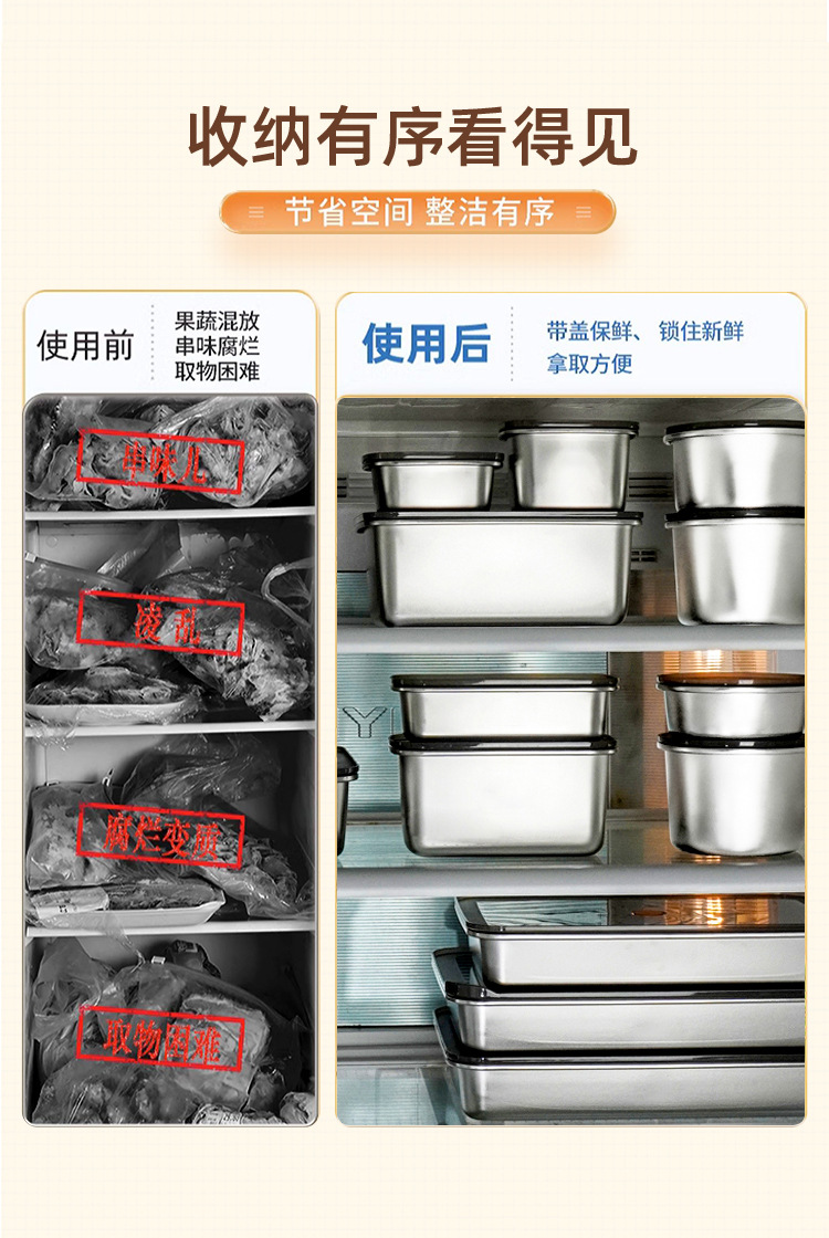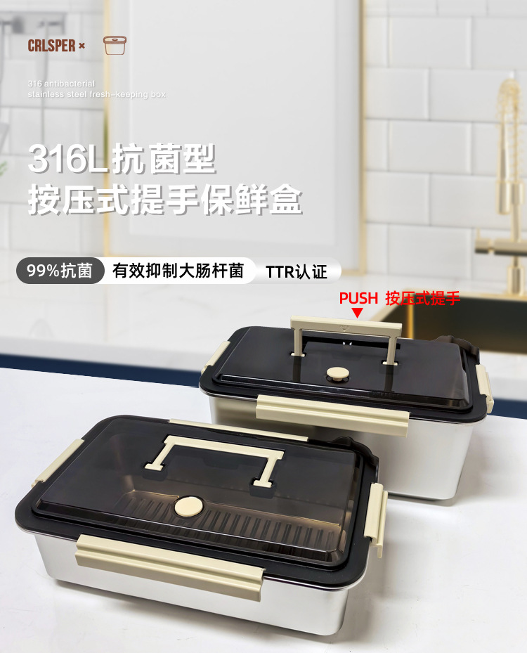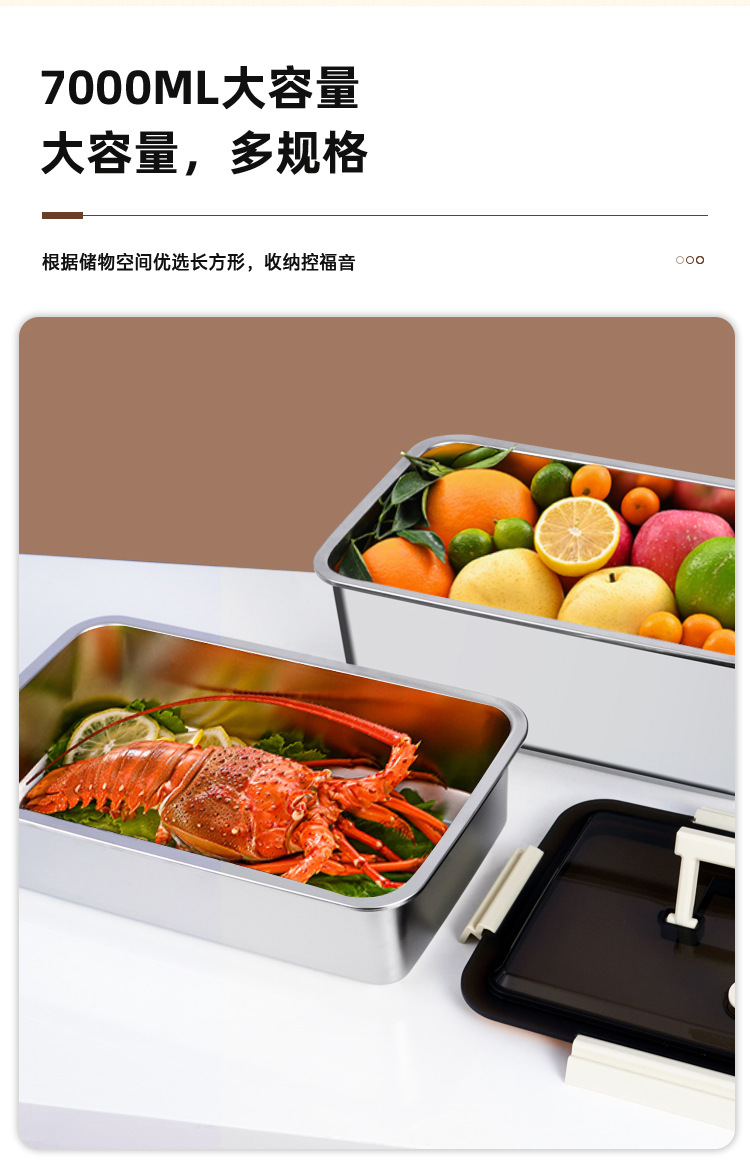 316L不锈钢保鲜盒大容量带提手密封厨房冰箱便携收纳盒户外野餐