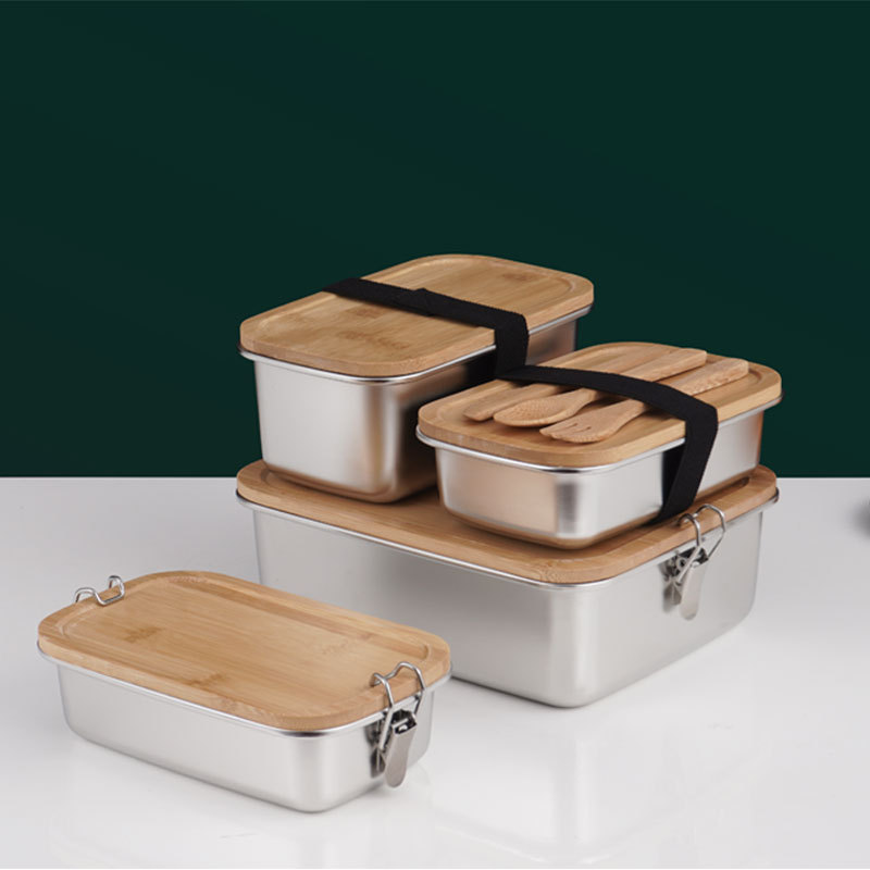 304不锈钢食品级双扣保鲜盒日式竹盖便当盒上班族学生食堂打饭盒