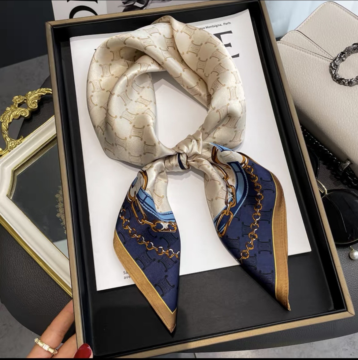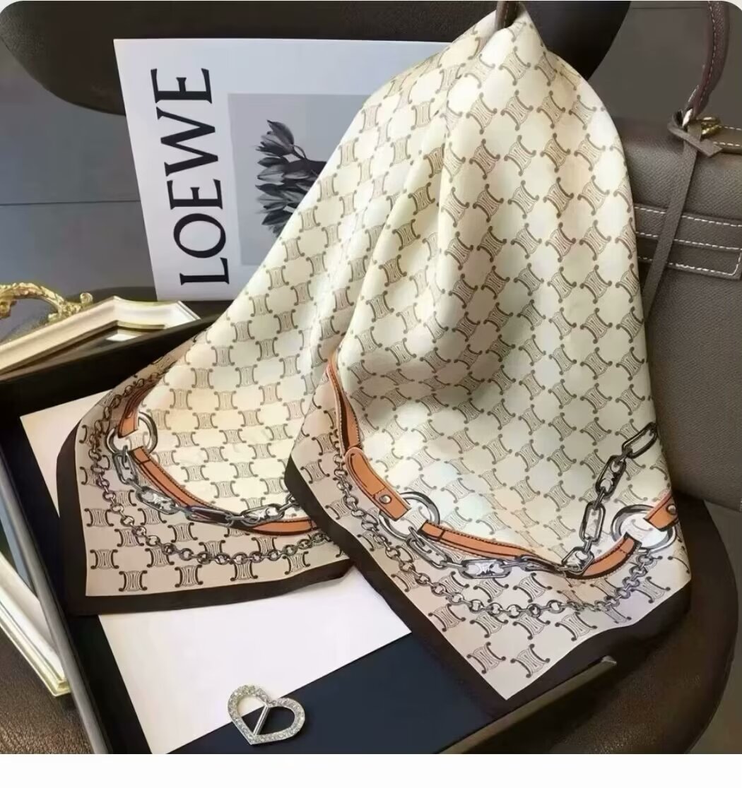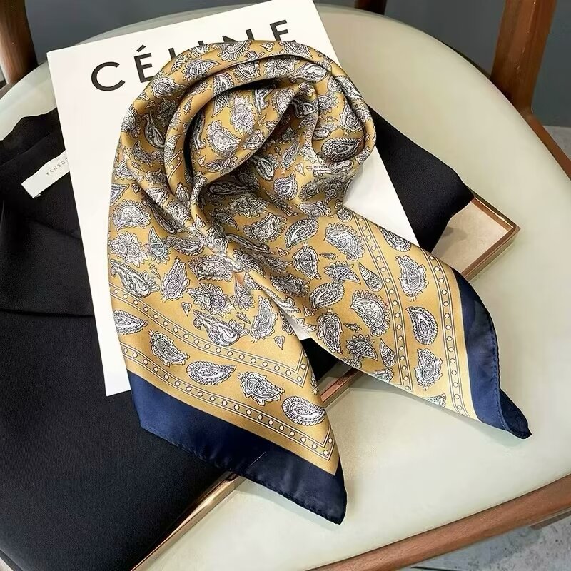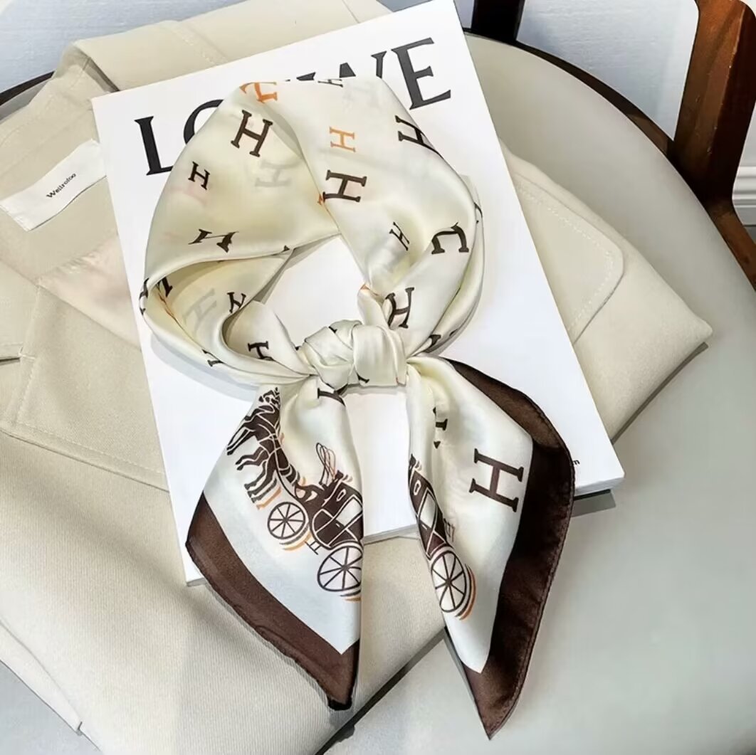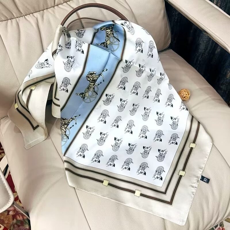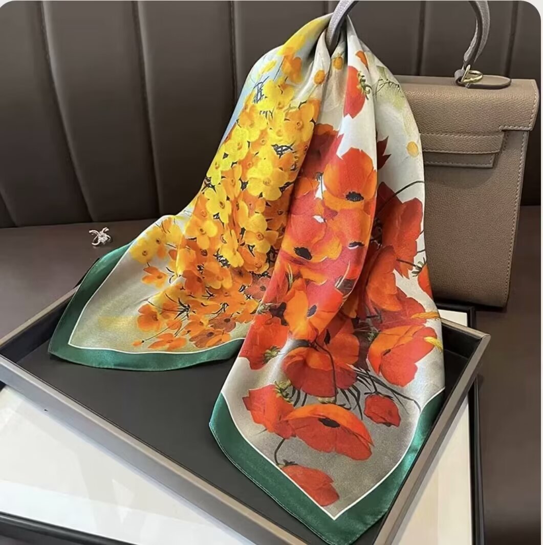 韩版甜美绿色花丛蝴蝶仿真丝丝巾女春夏季百搭气质领巾70cm方巾