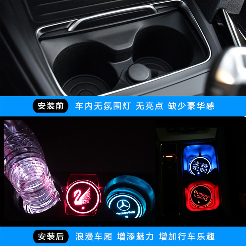 汽车七彩发光水杯垫LED车内饰呼吸夜光感应中控车载防滑垫氛围灯