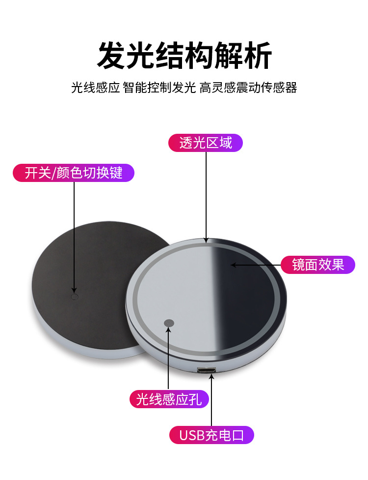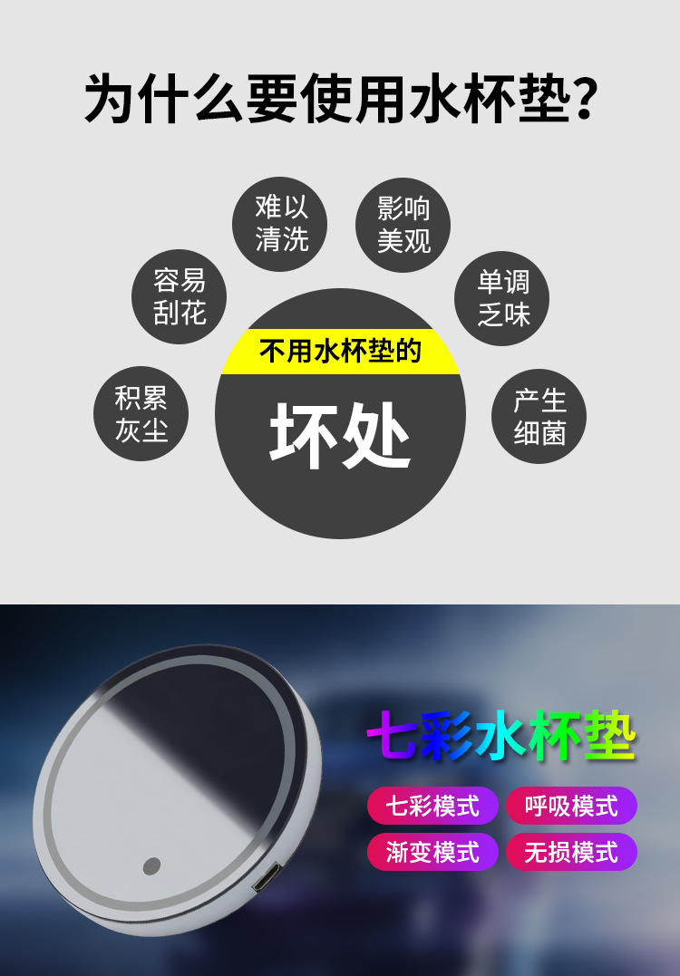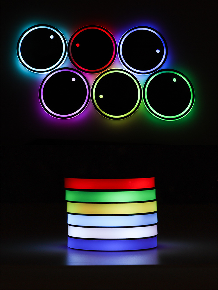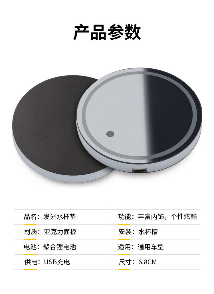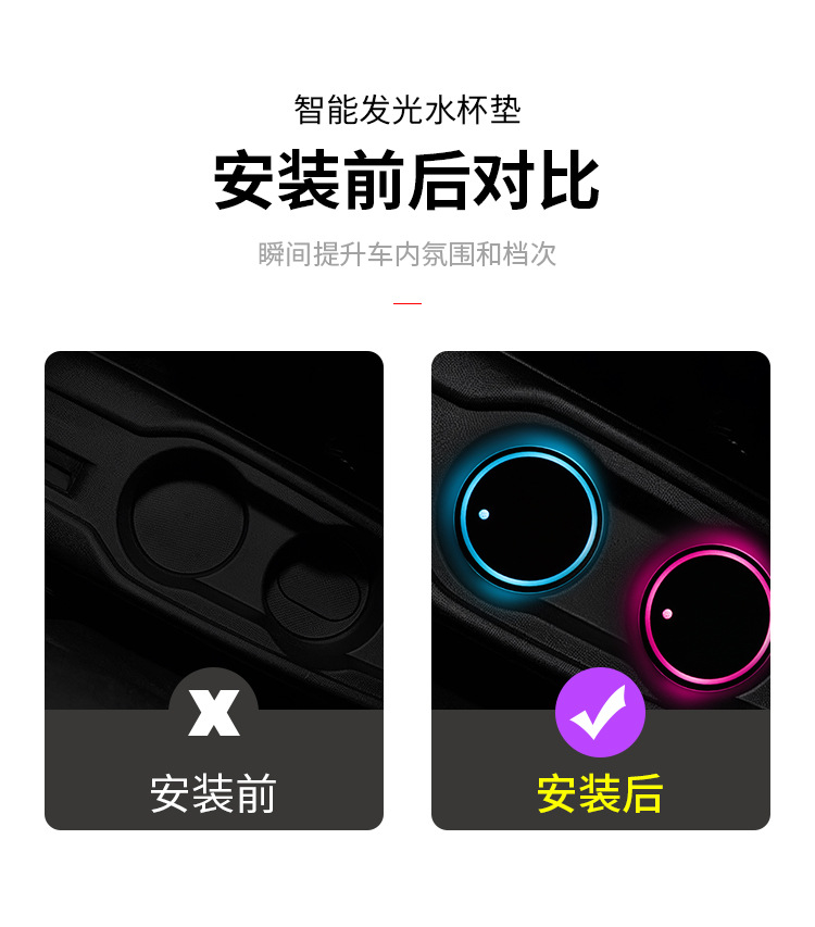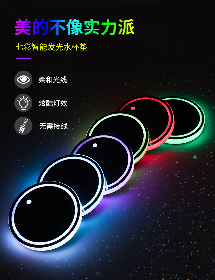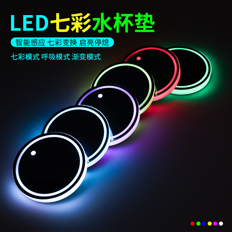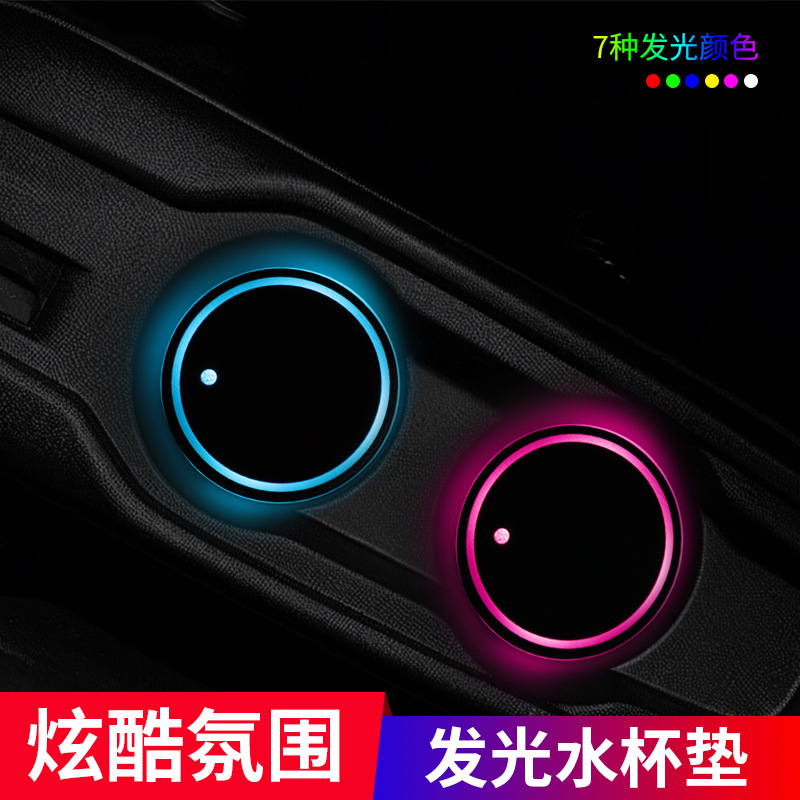 汽车发光水杯垫内饰防滑垫杯垫七彩LED夜光车载自动感应装饰氛围