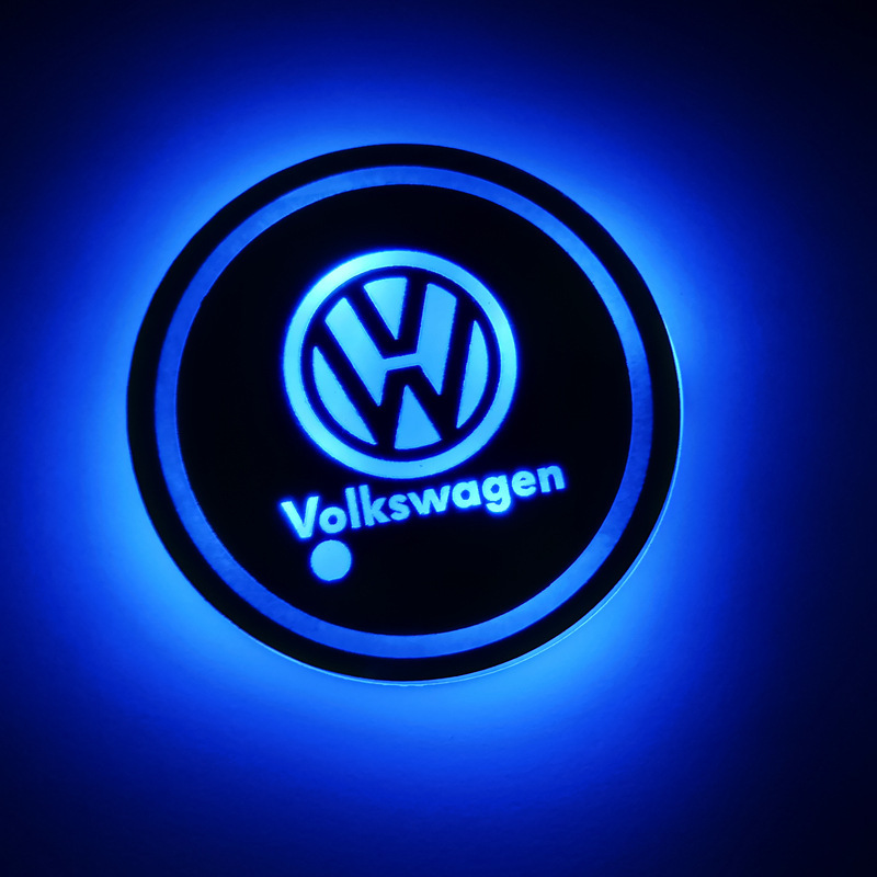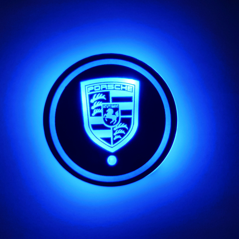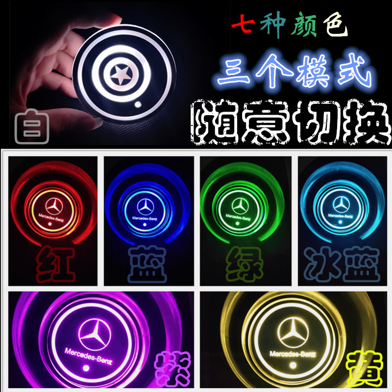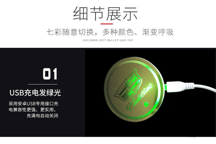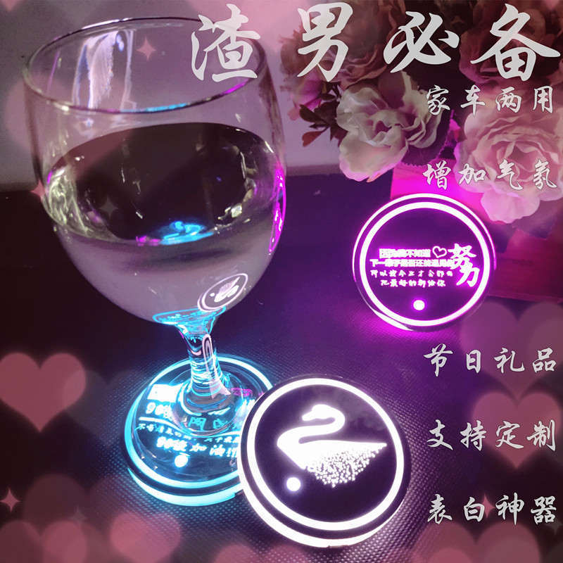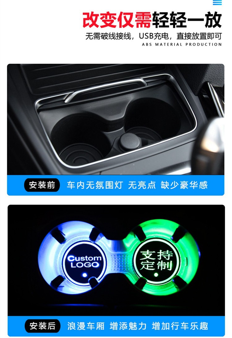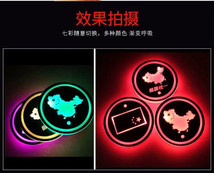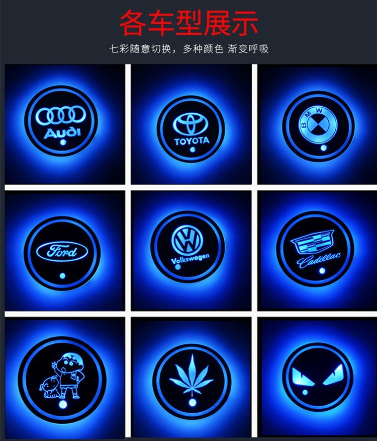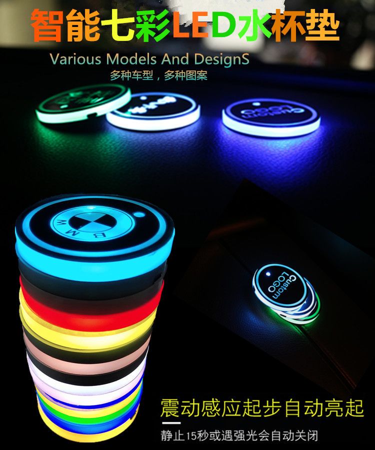 汽车LED发光水杯垫 七彩呼吸水杯灯车载杯垫氛围灯太阳能防滑杯垫