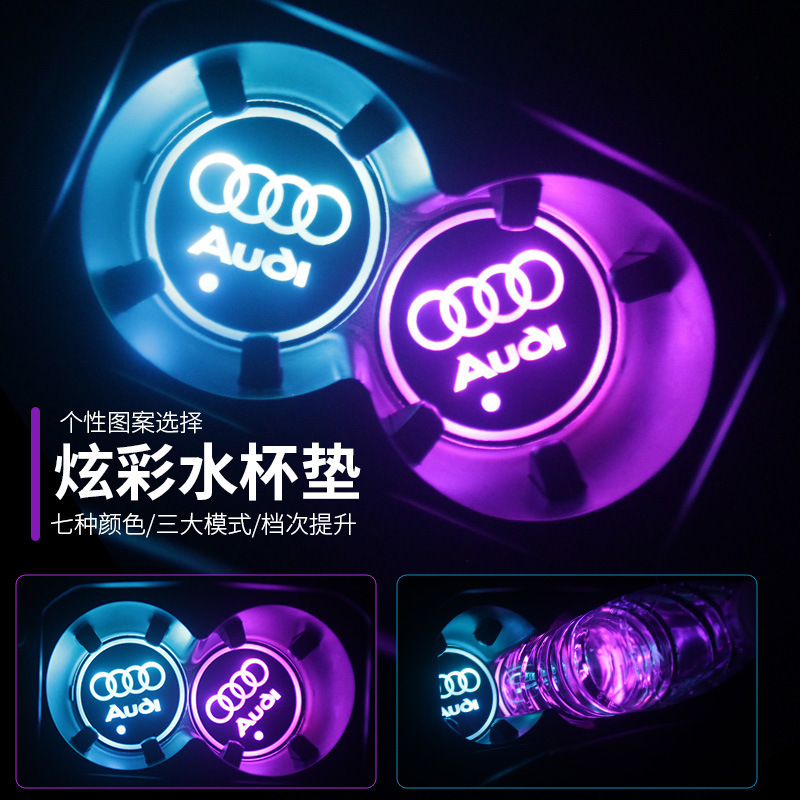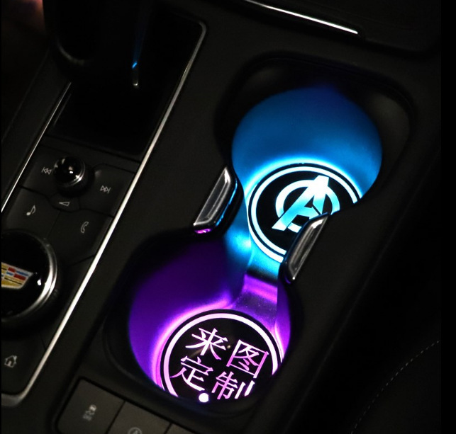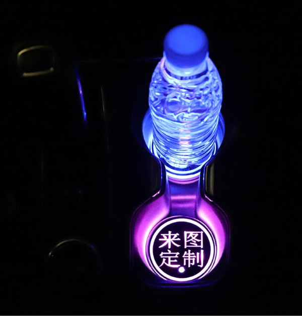 汽车LED发光水杯垫 图案可改 水杯槽垫 车载氛围灯 七彩内置电池