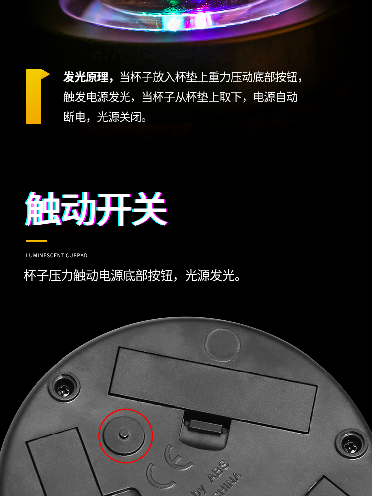 led发光杯垫 酒吧鸡尾酒发光底座灯 酒杯垫底灯光发光调酒底座灯