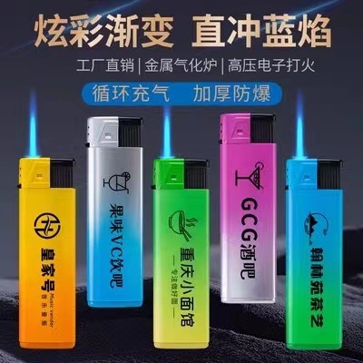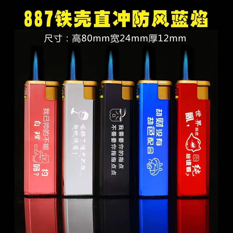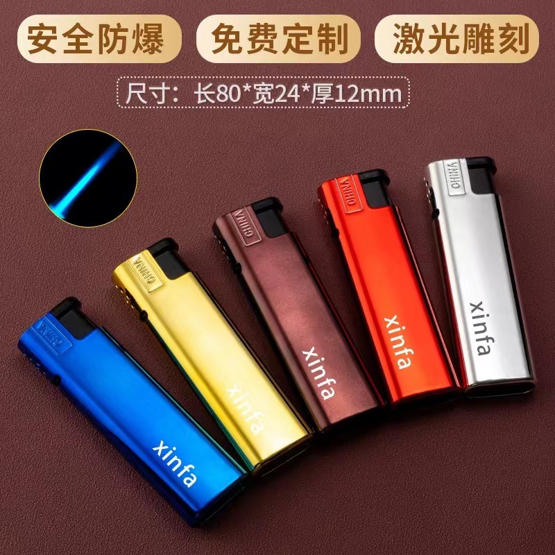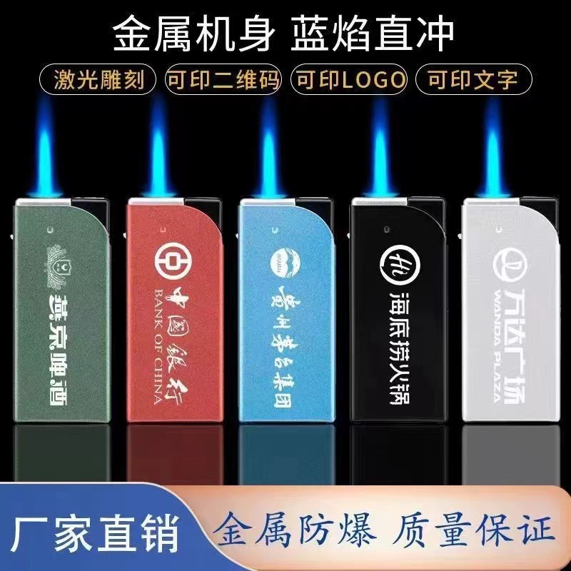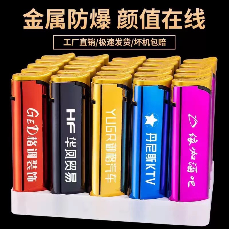 一次性高档金属直冲防风打火机激光雕刻定 制广告加厚充气防爆耐