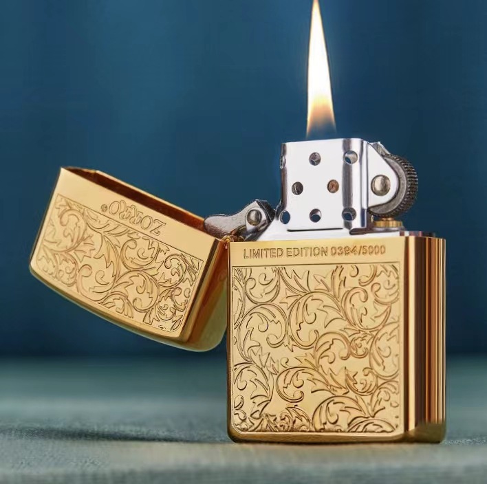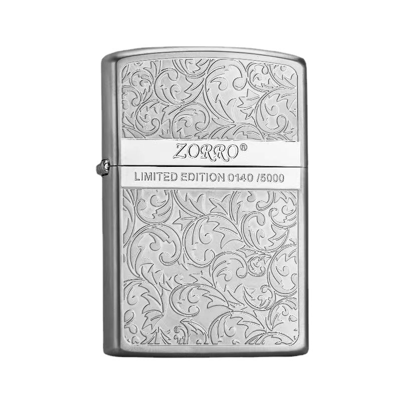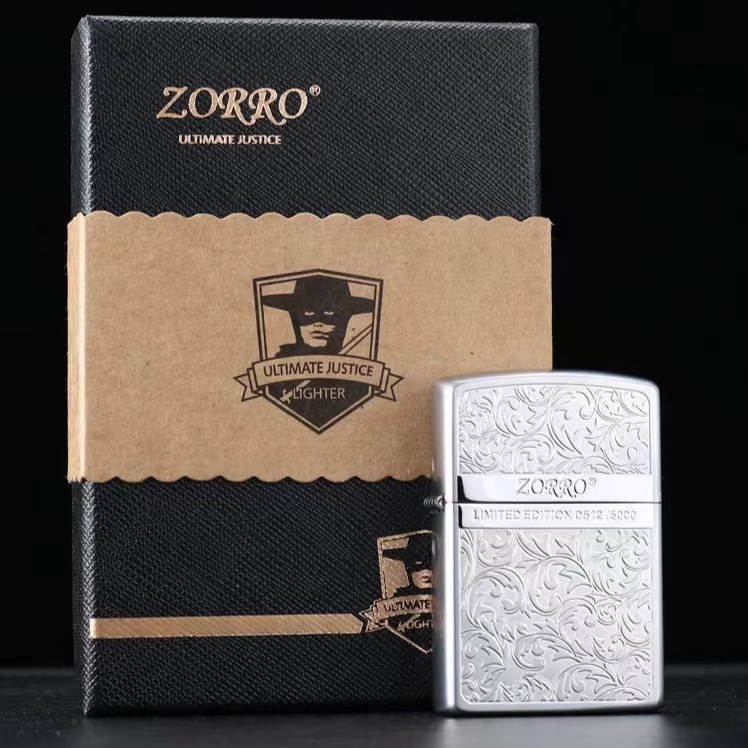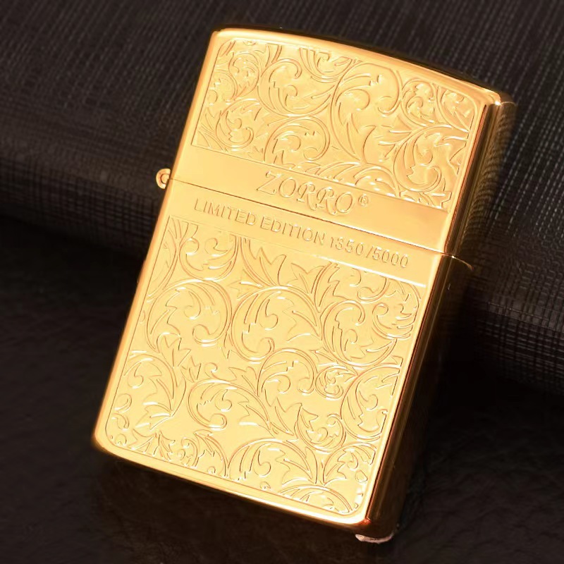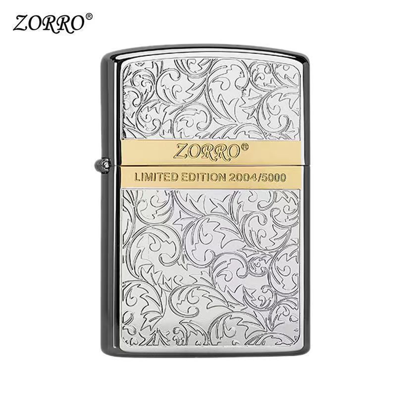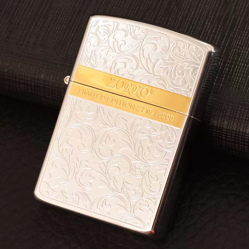 佐罗煤油打火机Z92067分色唐草双面雕刻白钢内胆砂轮火机一件代发
