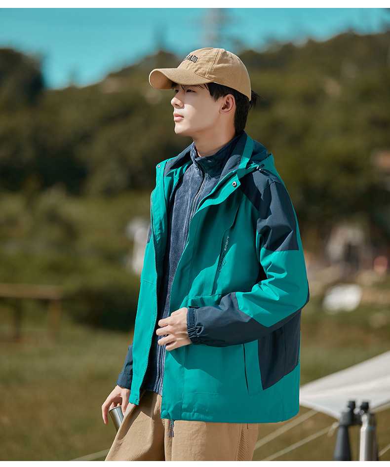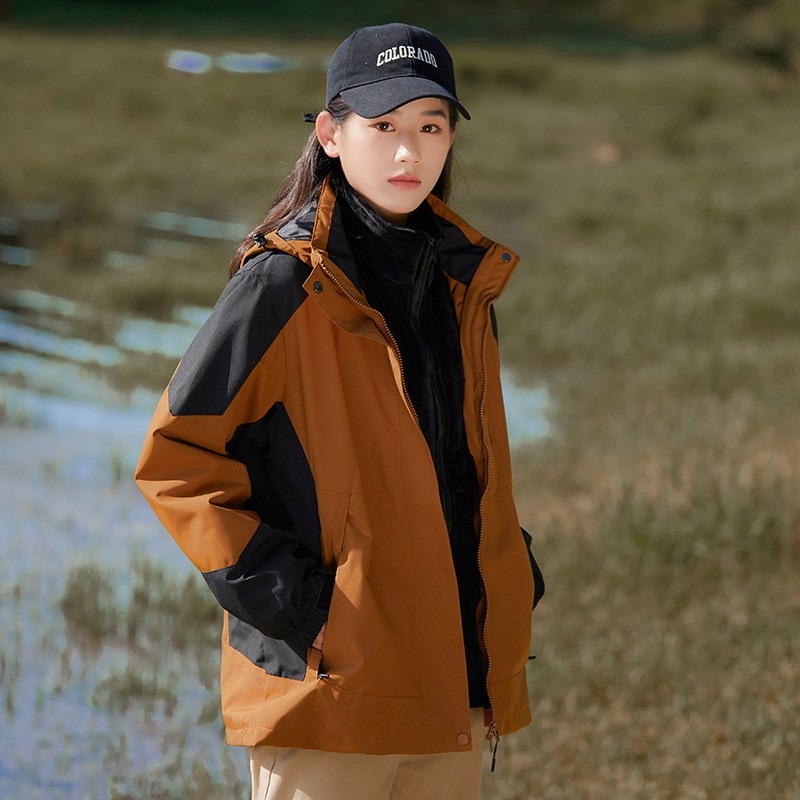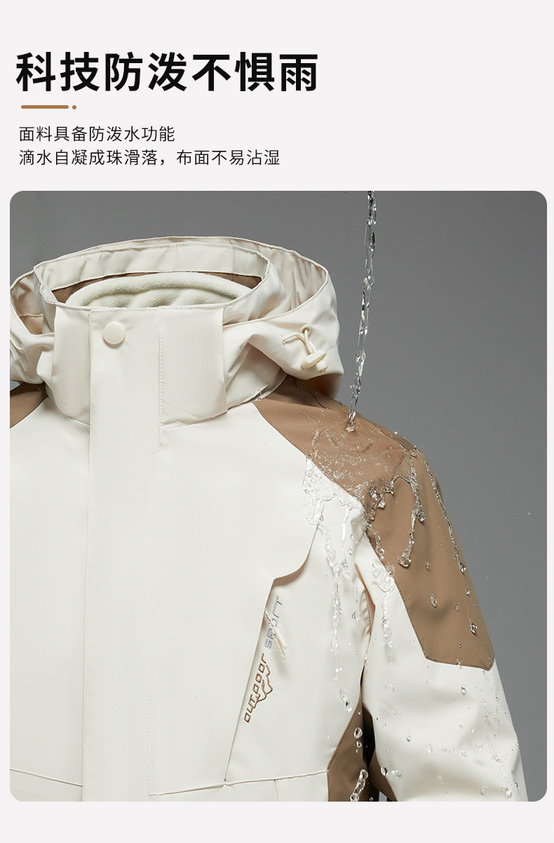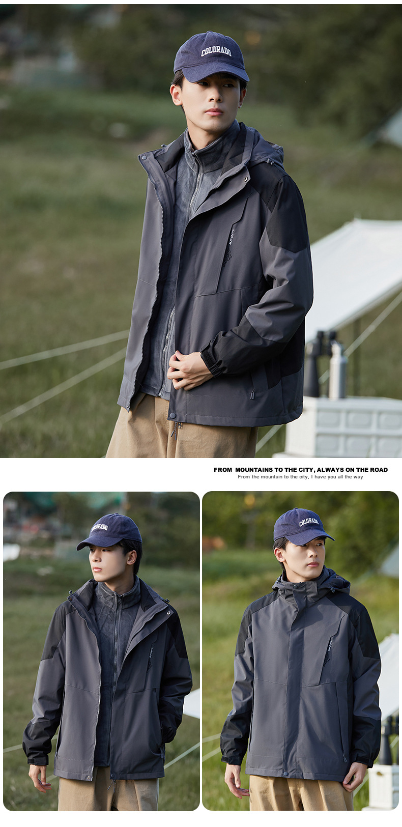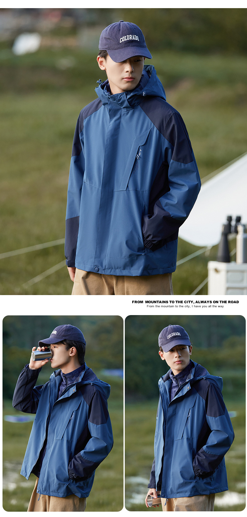 秋冬户外时尚运动情侣冲锋衣男女拼色可脱卸帽防水防风透气登山服