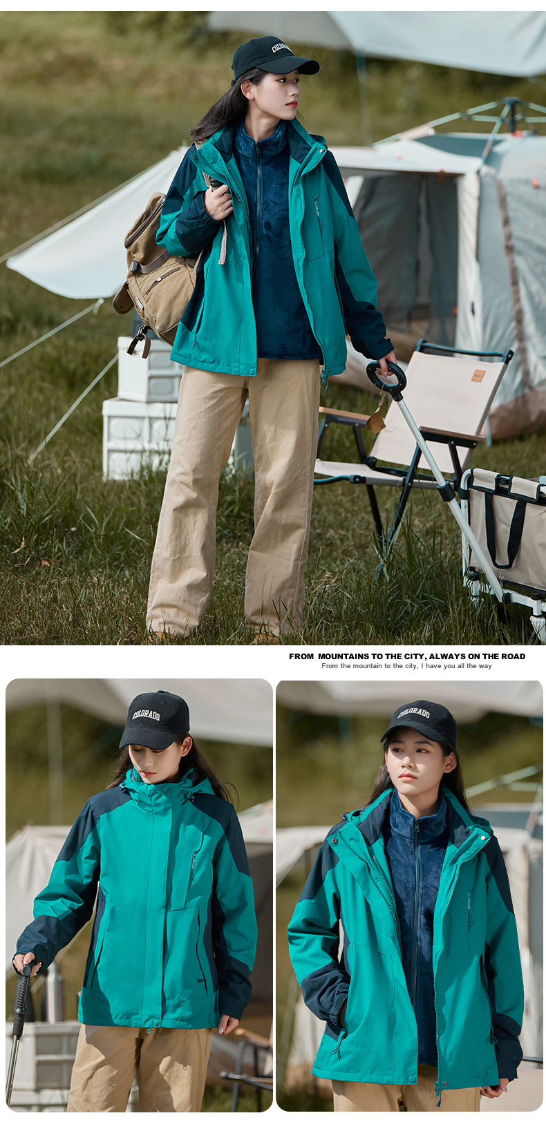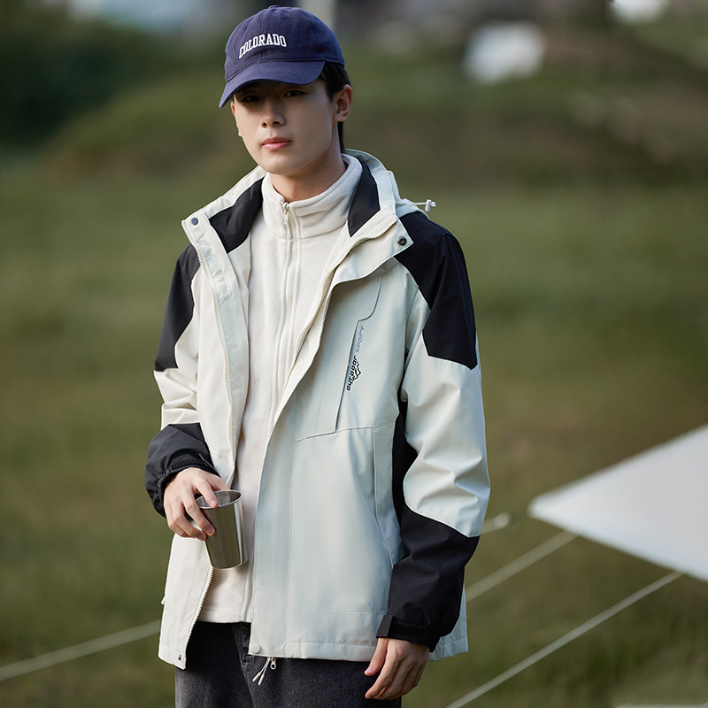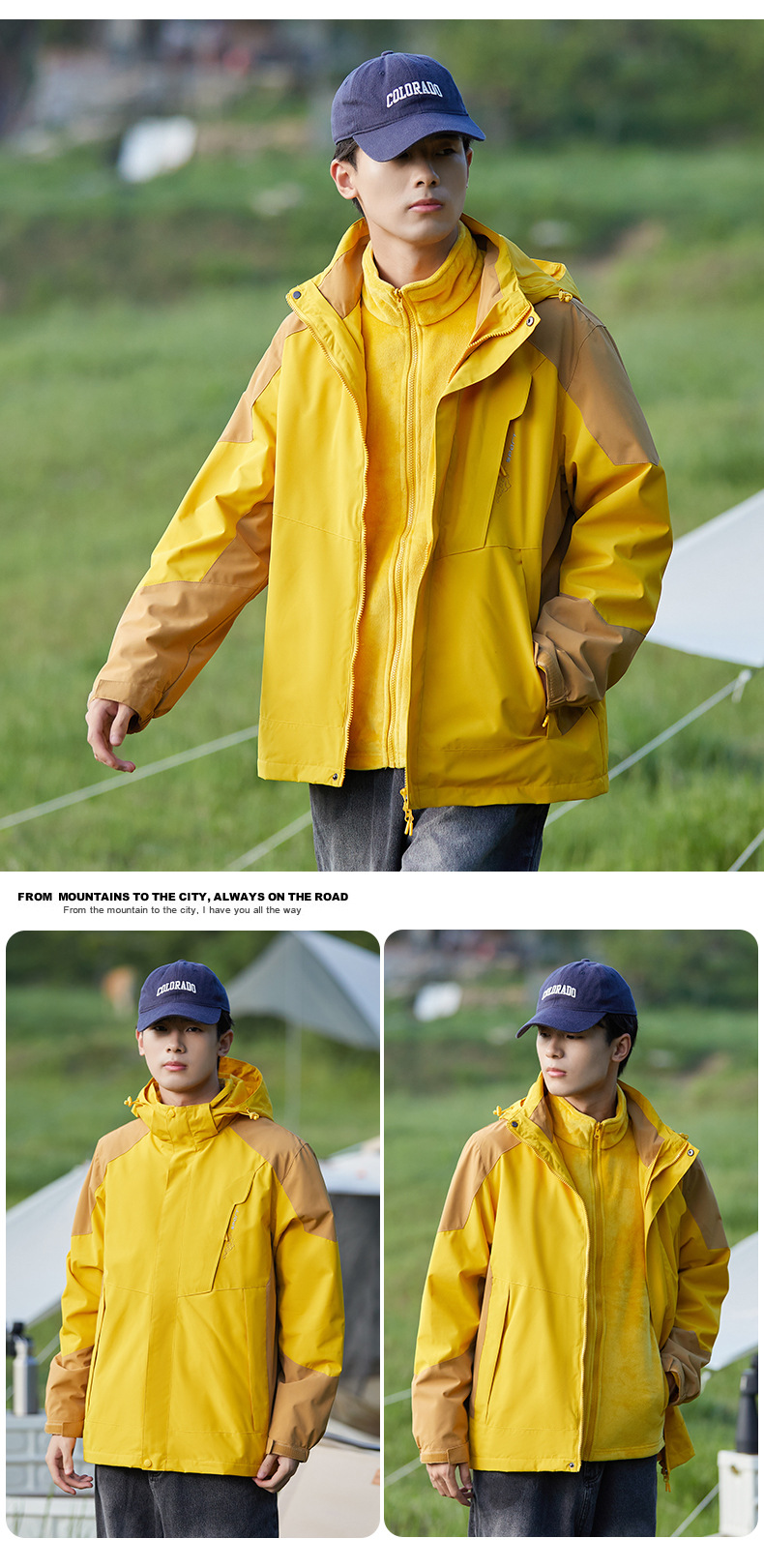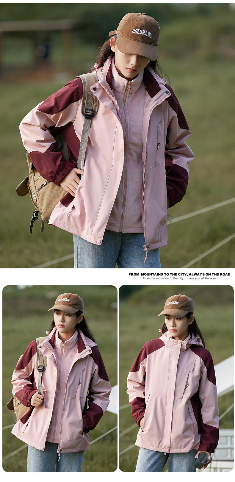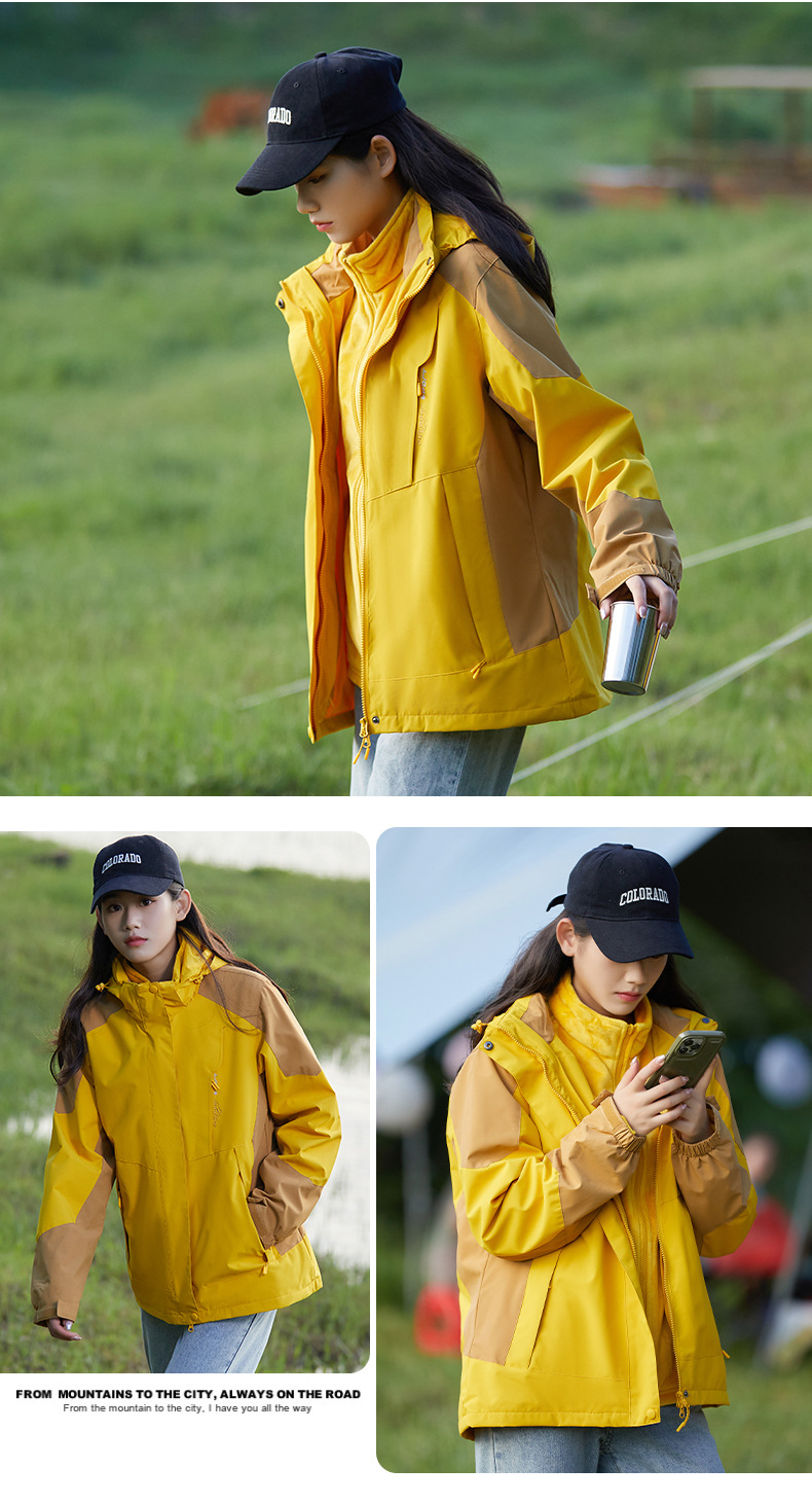 秋冬户外时尚运动情侣冲锋衣男女拼色可脱卸帽防水防风透气登山服