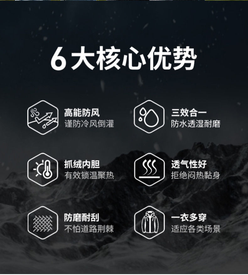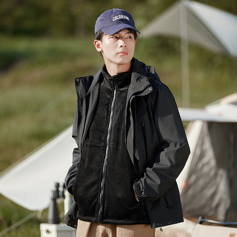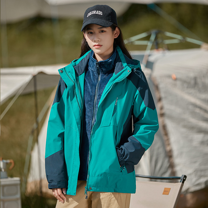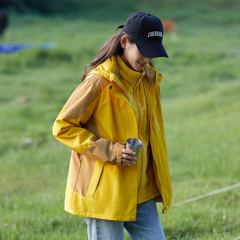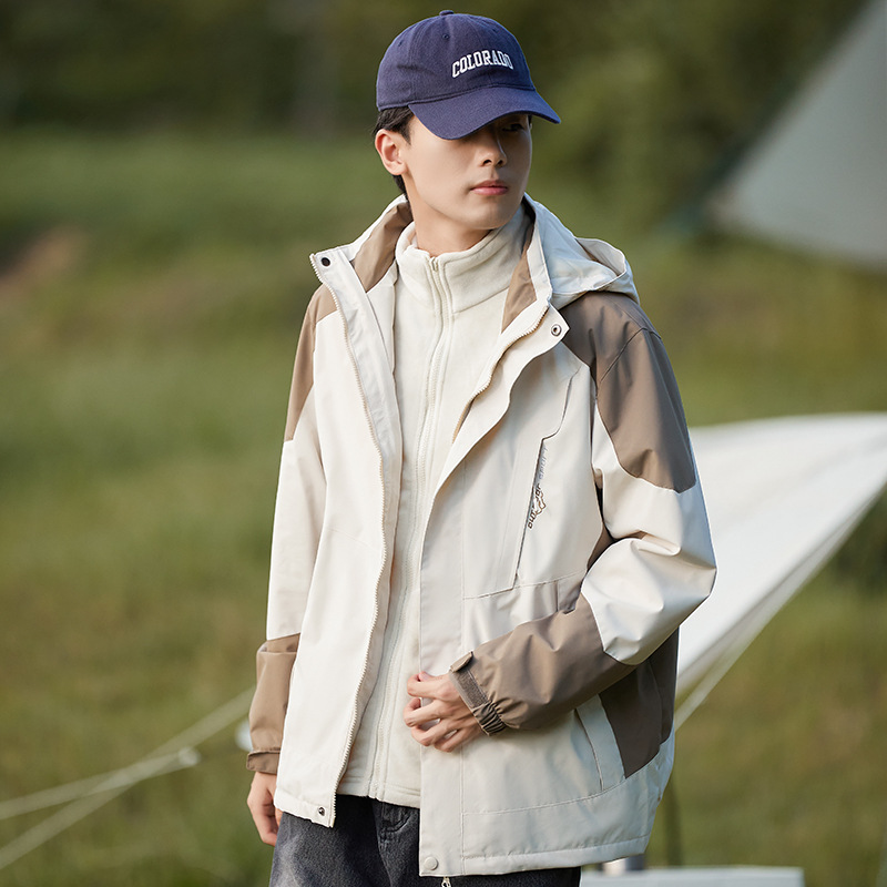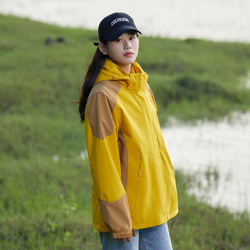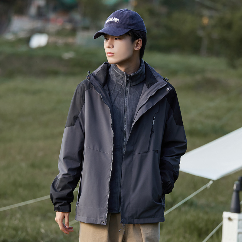 秋冬户外时尚运动情侣冲锋衣男女拼色可脱卸帽防水防风透气登山服