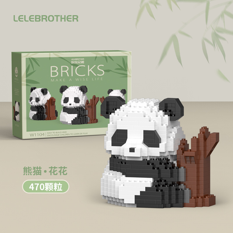 【包邮】兼容乐高熊猫花花积木微颗粒拼装玩具益智摆件男女孩礼物