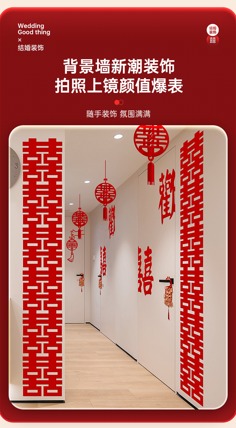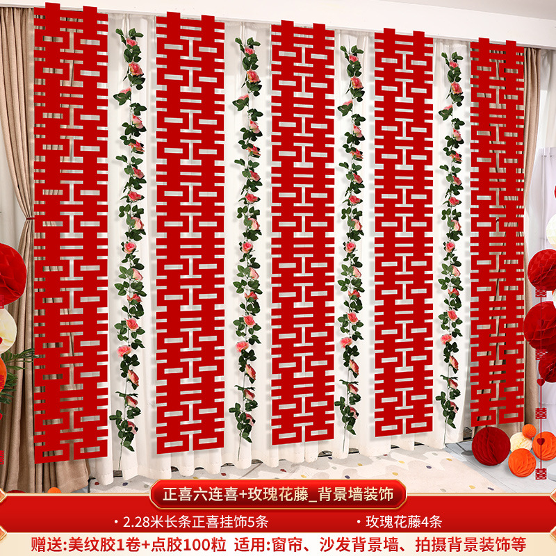 长条喜字批发结婚专用婚房布置套装囍字挂饰婚礼客厅背景连喜装饰